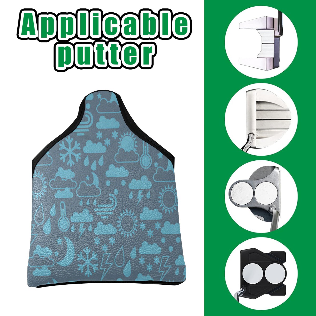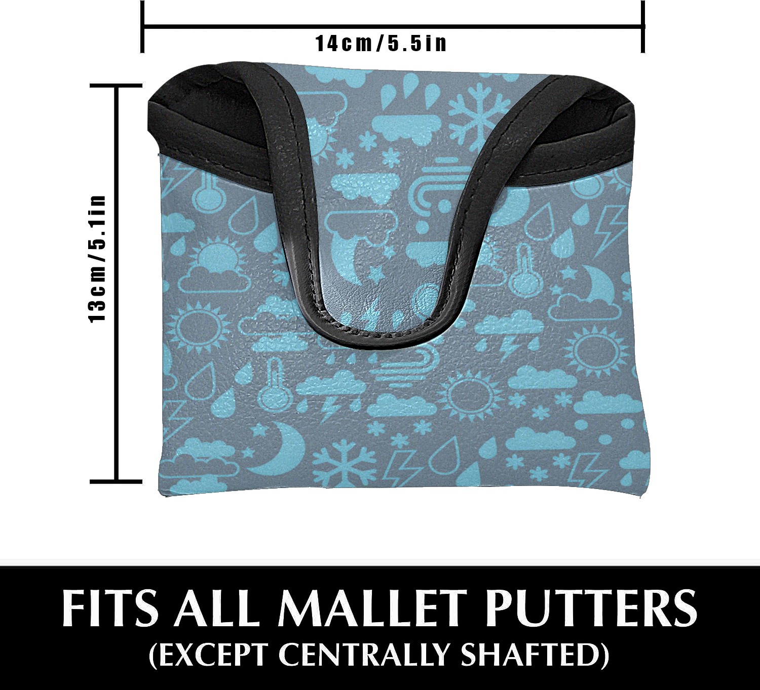Small Mallet Putter Cover, PU Leather and Waterproof Mallet Putter Cover, Golf Club Protective Case Fits for All Brand Putter Golf Clubs for Men Women Weather Icons