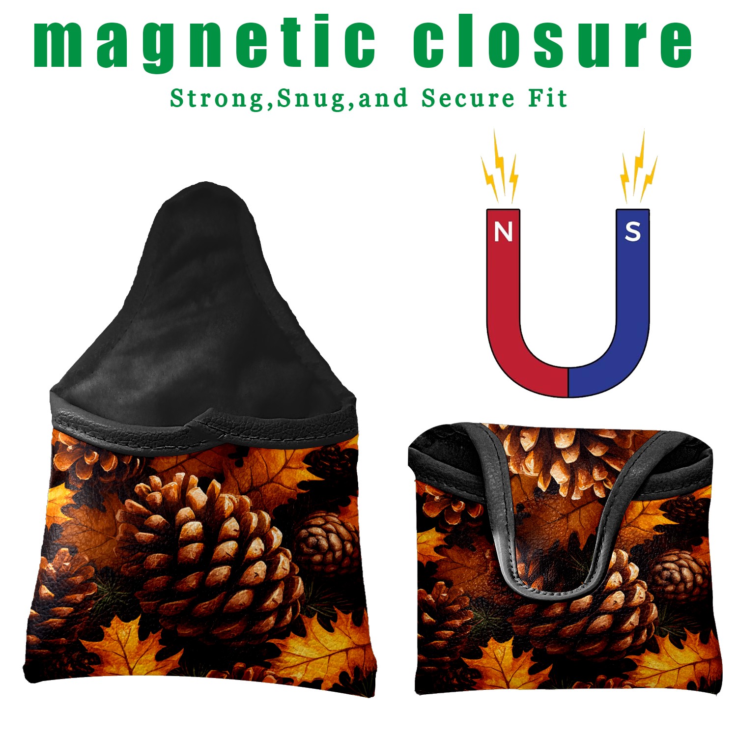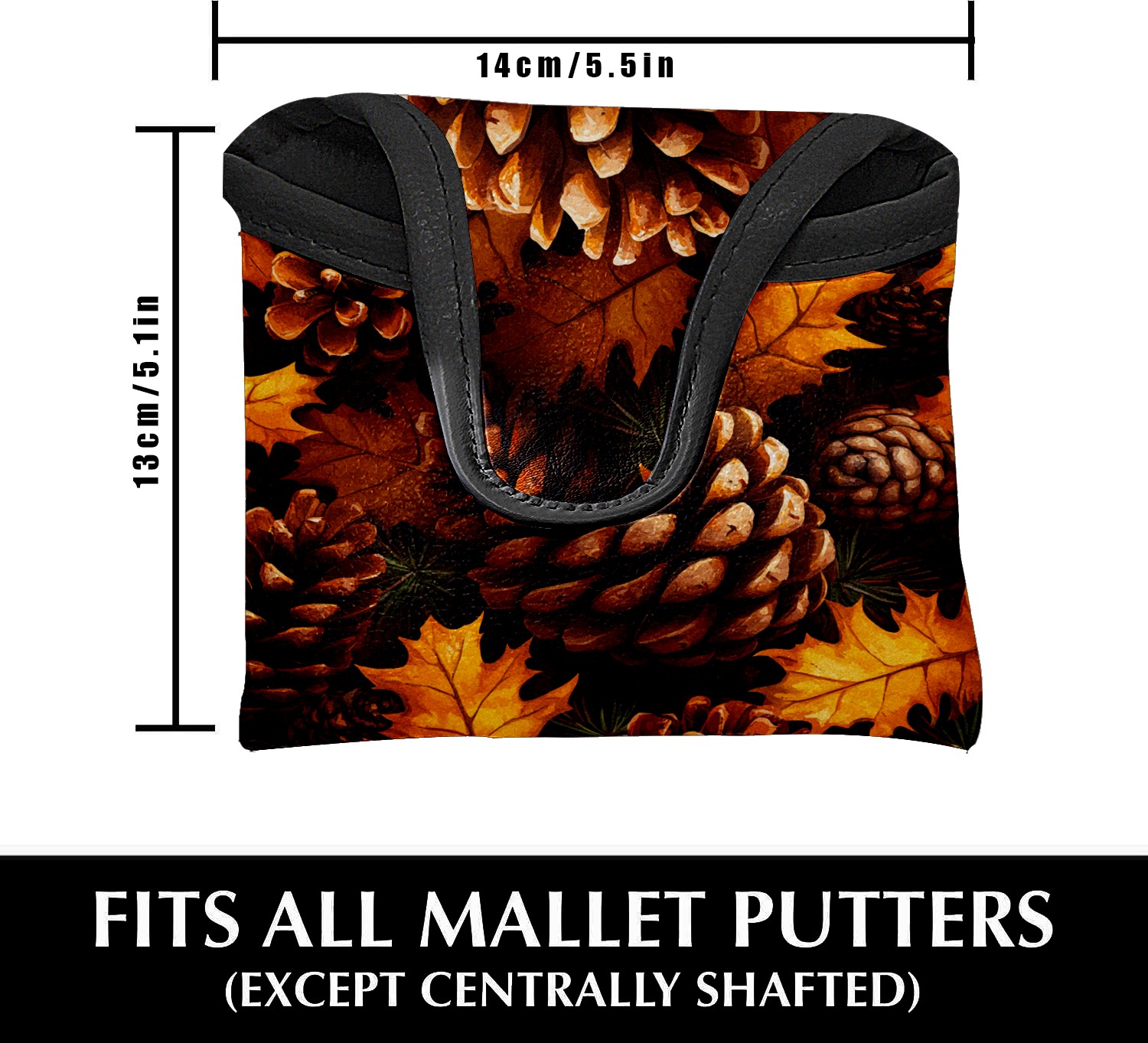 Mallet Putter Cover Magnetic Premium PU Leather Golf Putter Headcover with Plush Lining, Mallet Putter Headcover for Men & Women Golf Club Covers (Autumn Pine Cones)