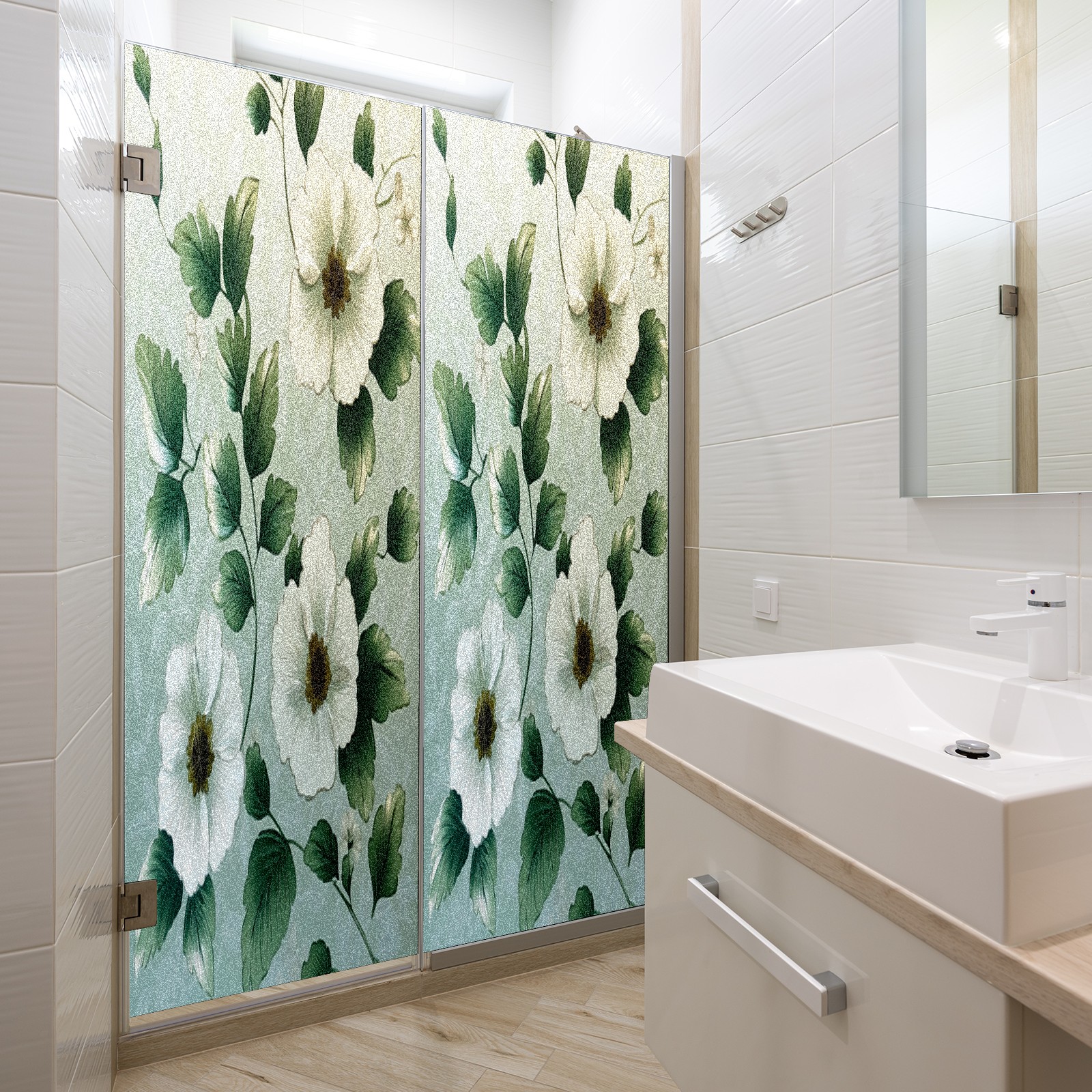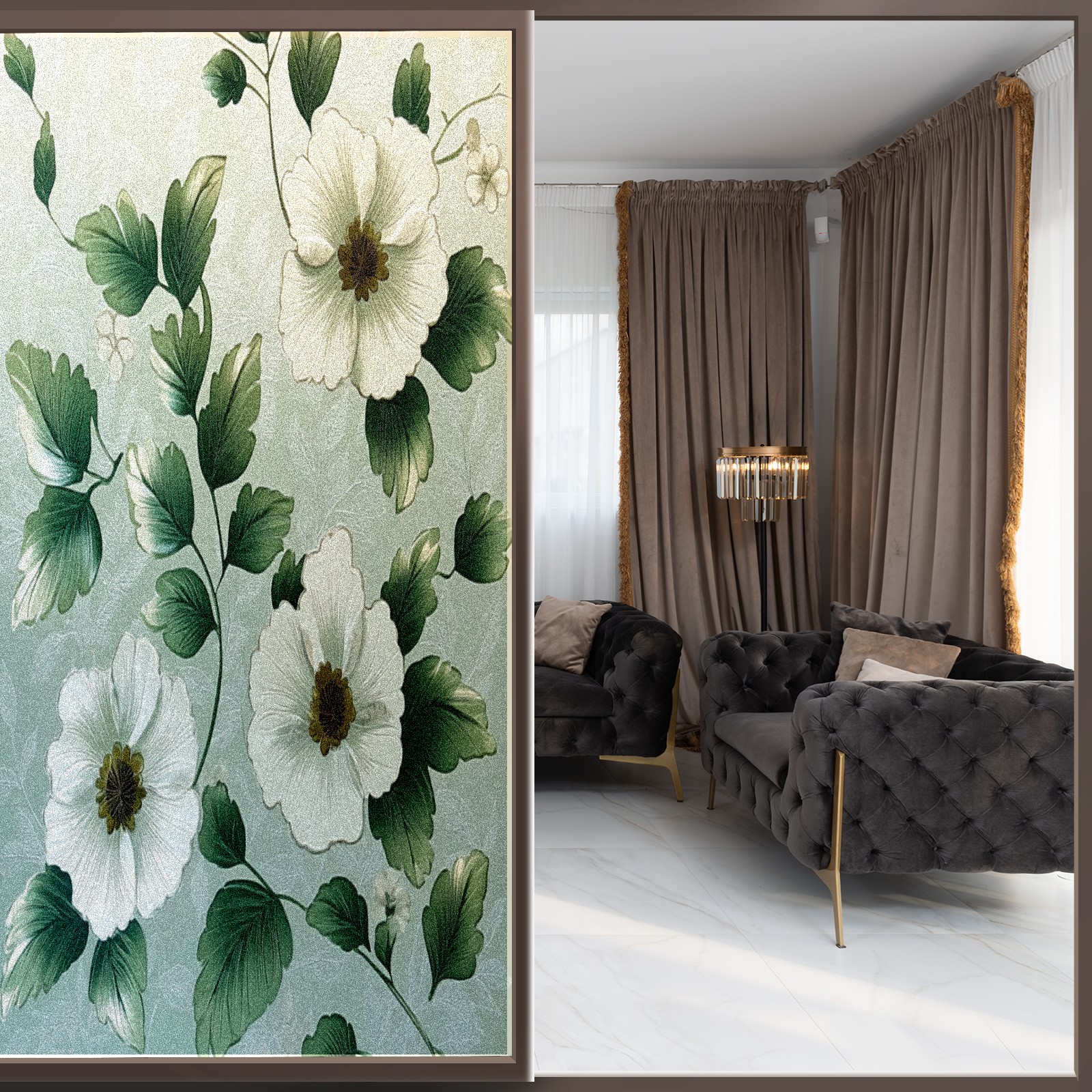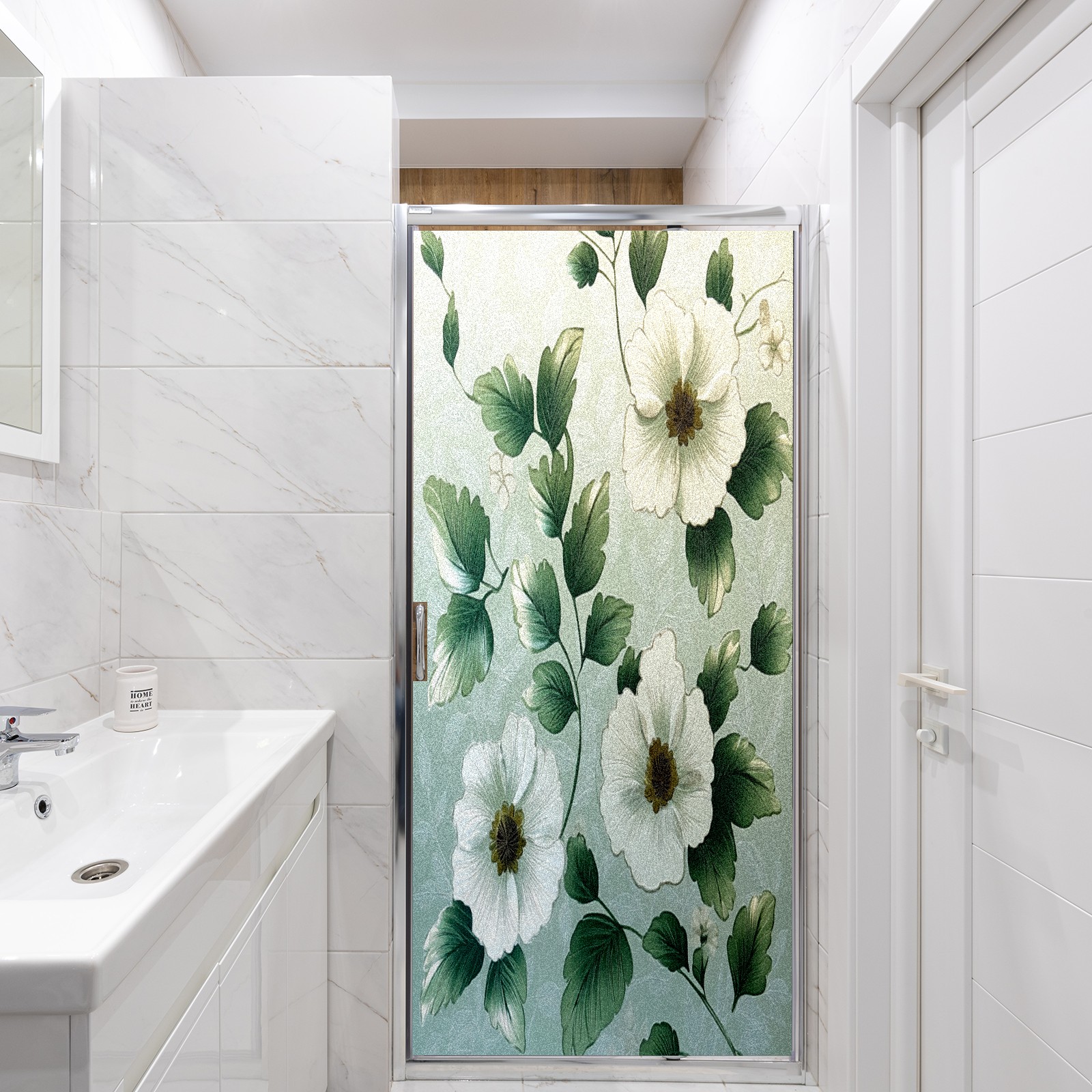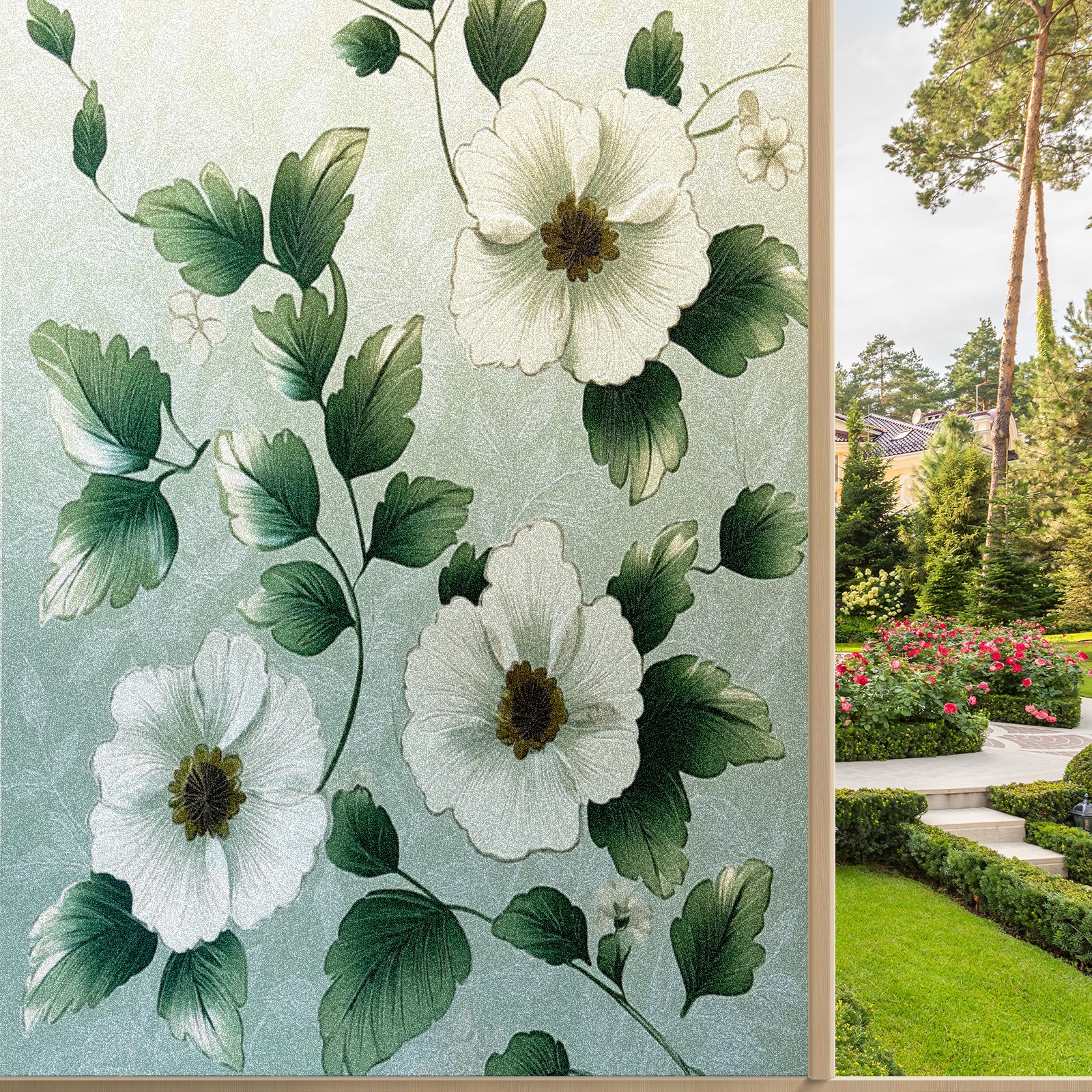 Matte Privacy Window Film | Static Cling, One-Way Glass Insulation Film, UV Blocking & Heat Insulating | Non-Adhesive, Removable for Home, Office & BathroomFlower Glass