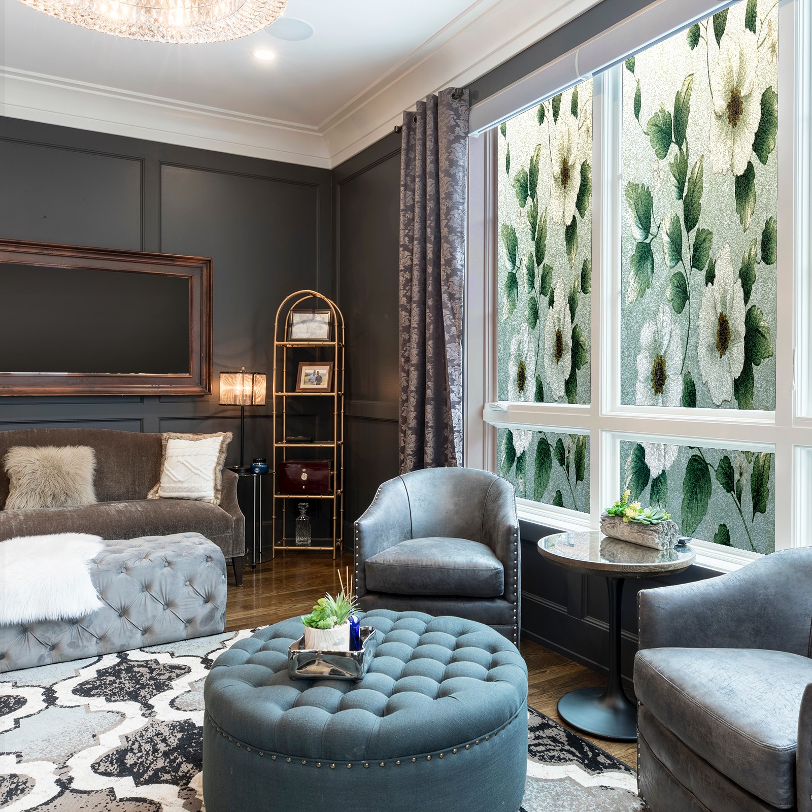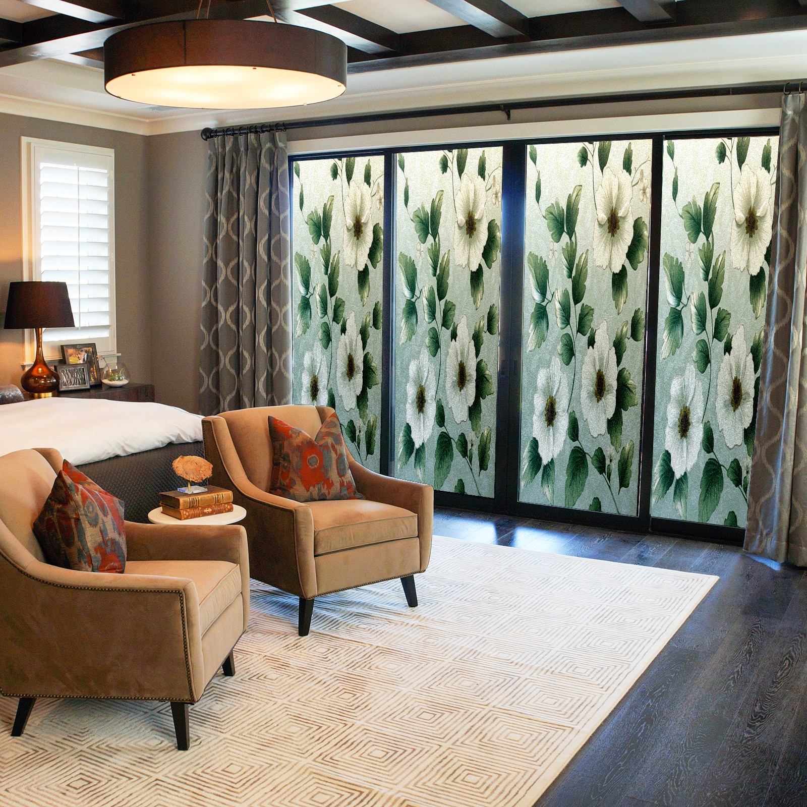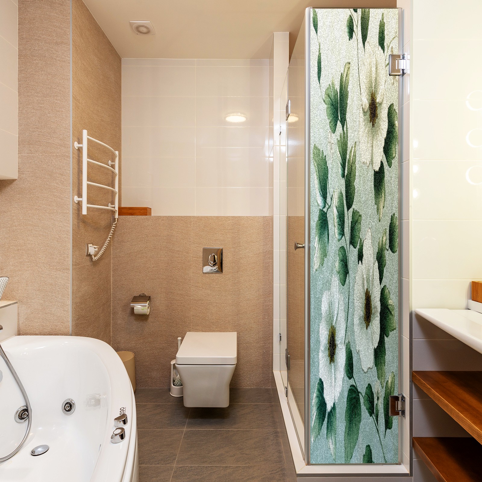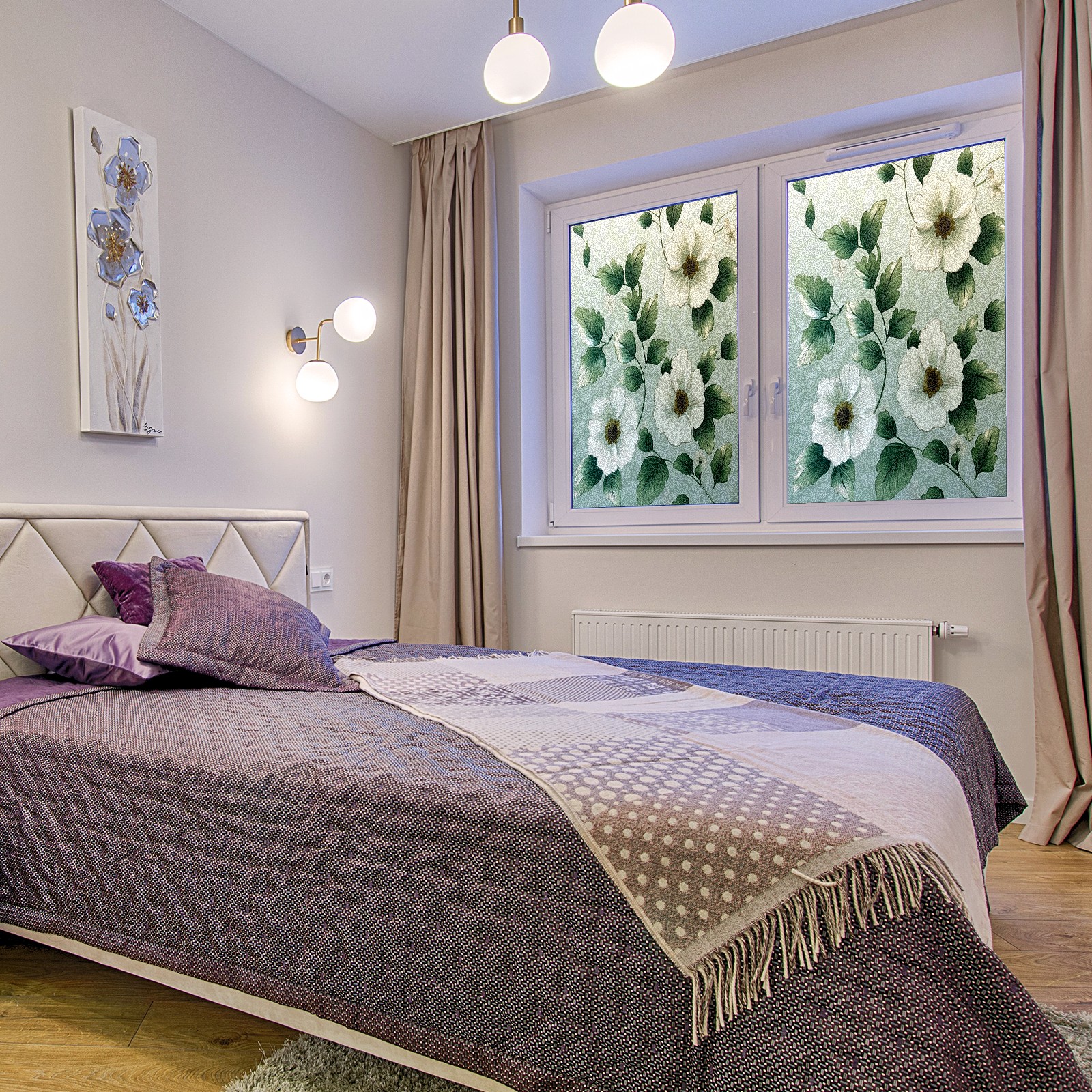 Matte Privacy Window Film | Static Cling, One-Way Glass Insulation Film, UV Blocking & Heat Insulating | Non-Adhesive, Removable for Home, Office & BathroomFlower Glass