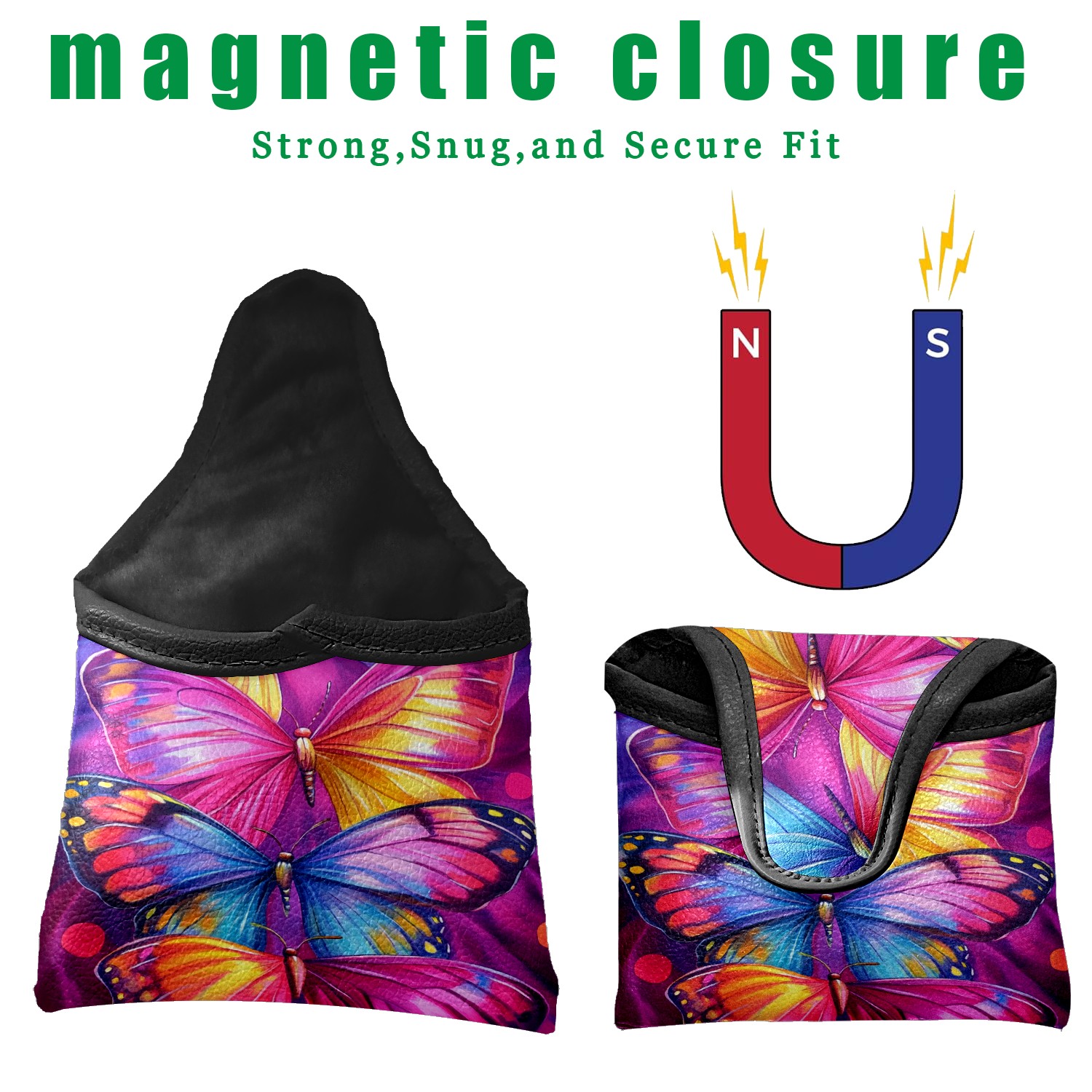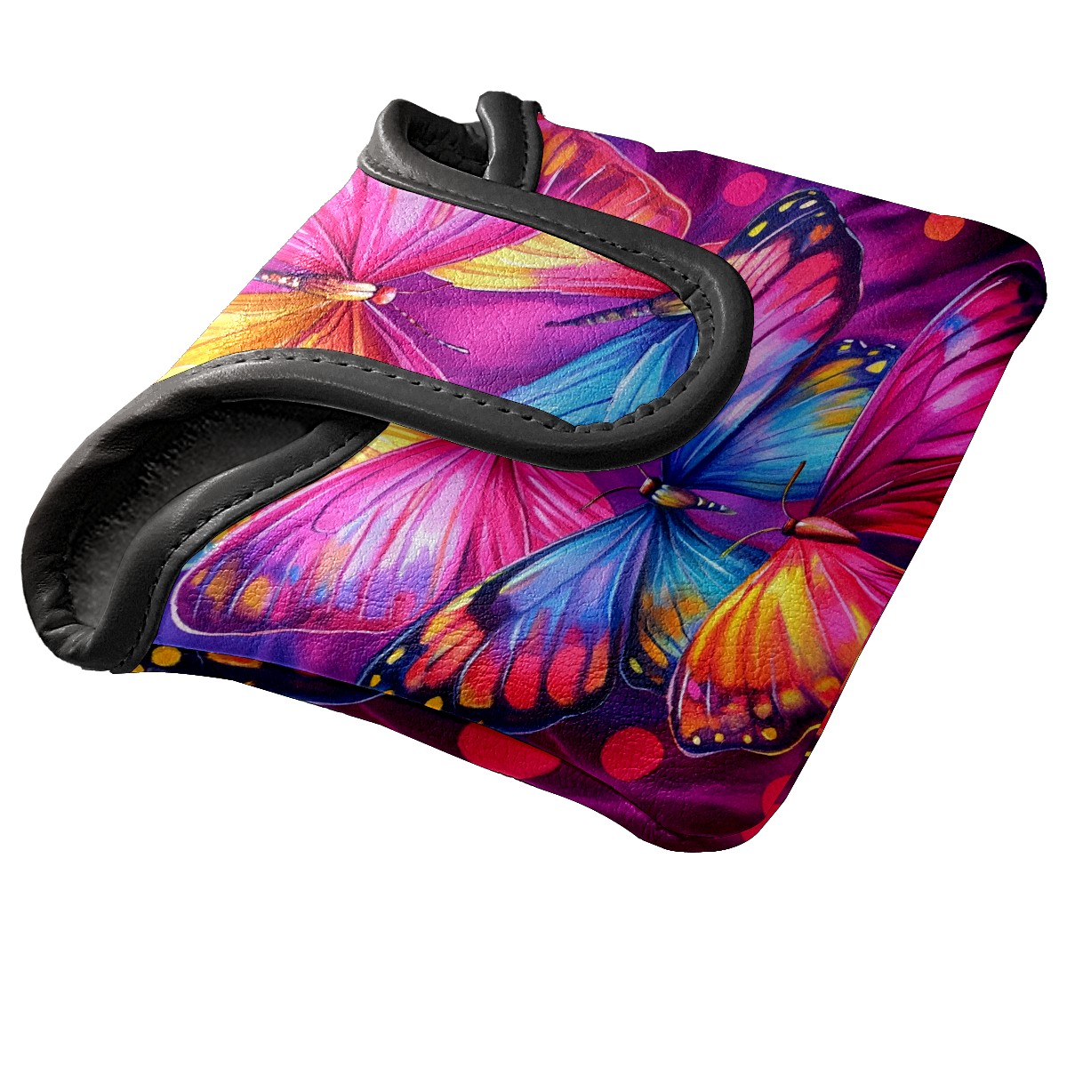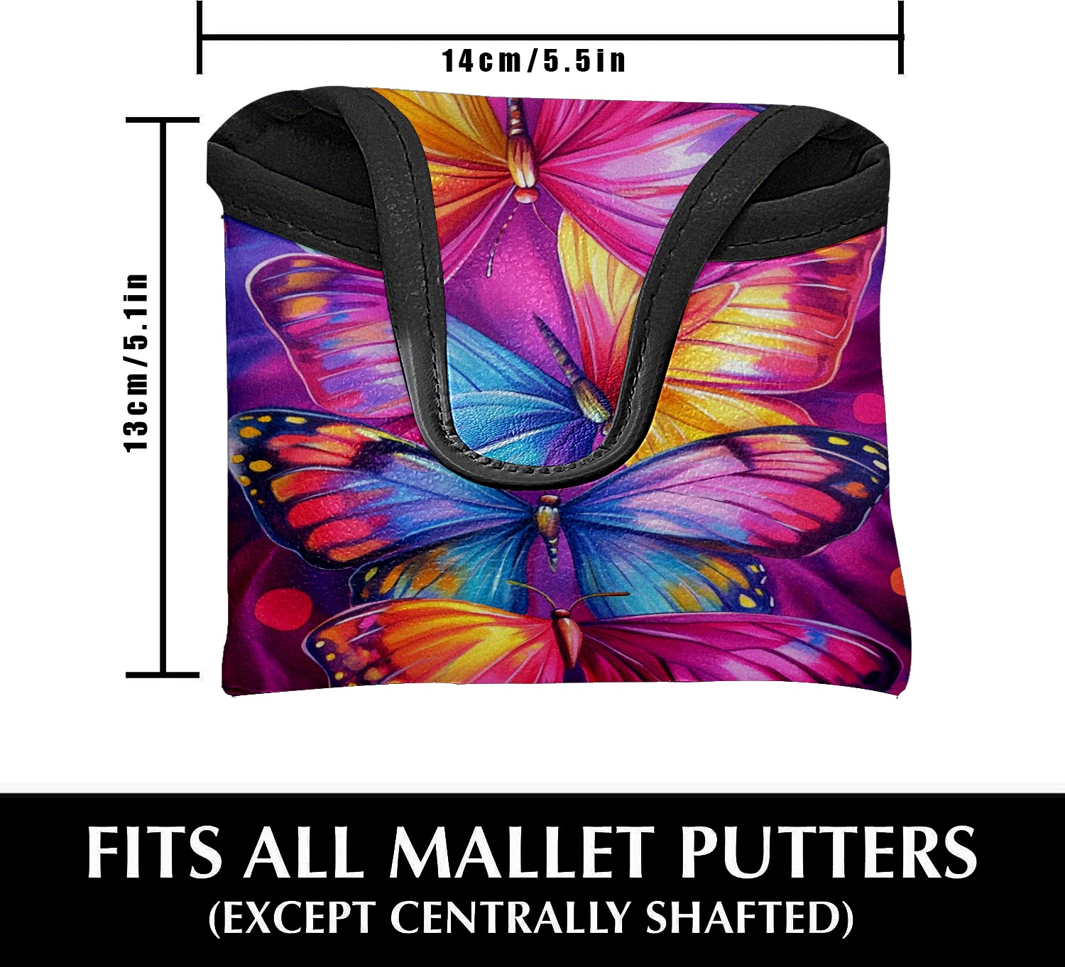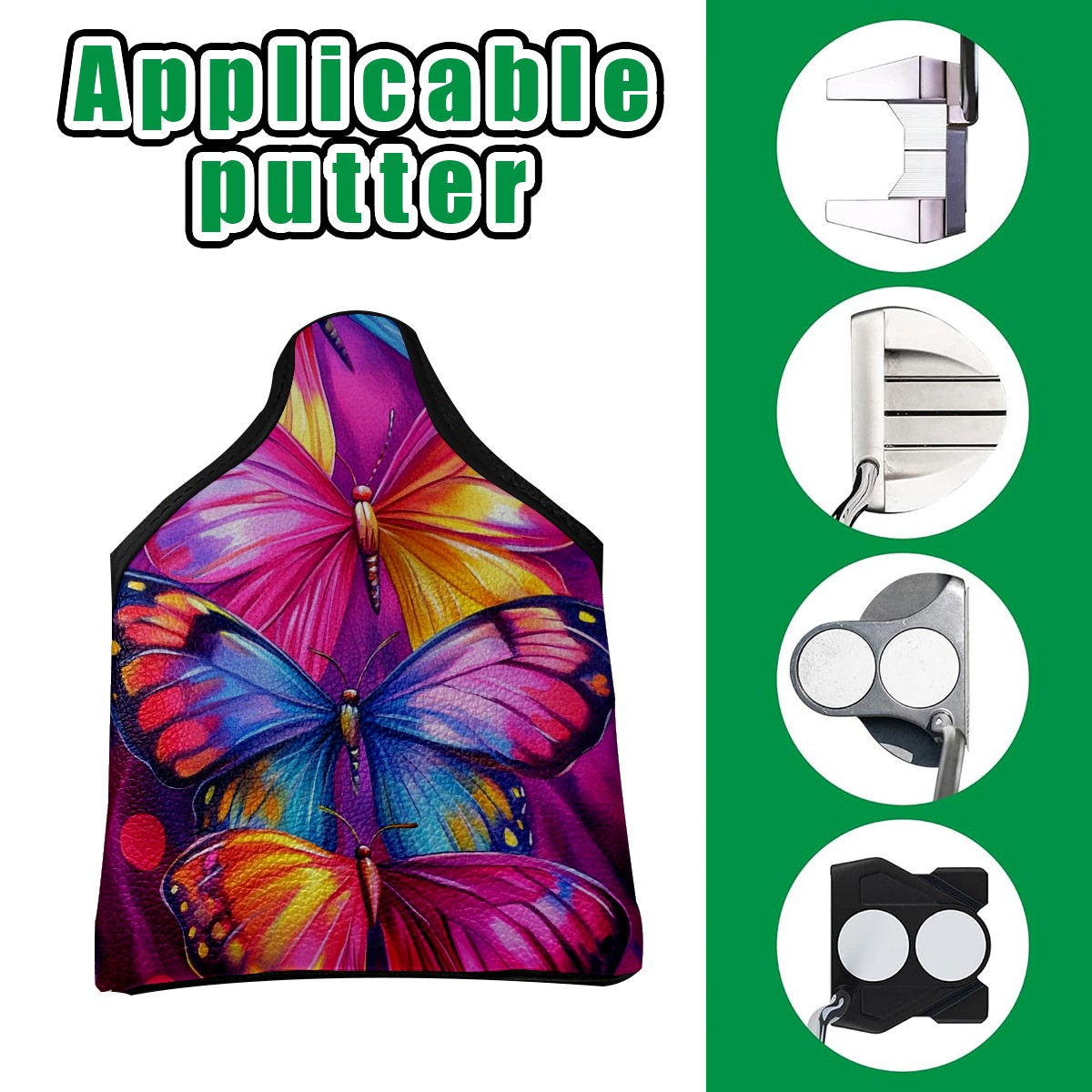 Mallet Putter Cover Magnetic Premium PU Leather Golf Putter Headcover with Plush Lining, Mallet Putter Headcover for Men & Women Golf Club Covers (Watercolor Colorful Butterflies)