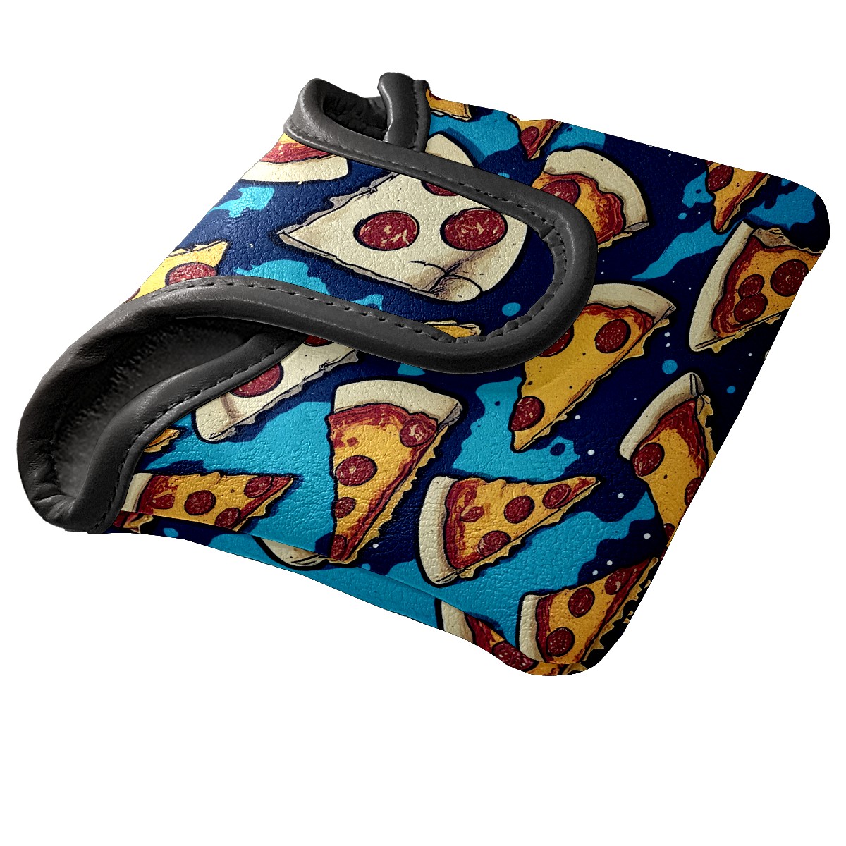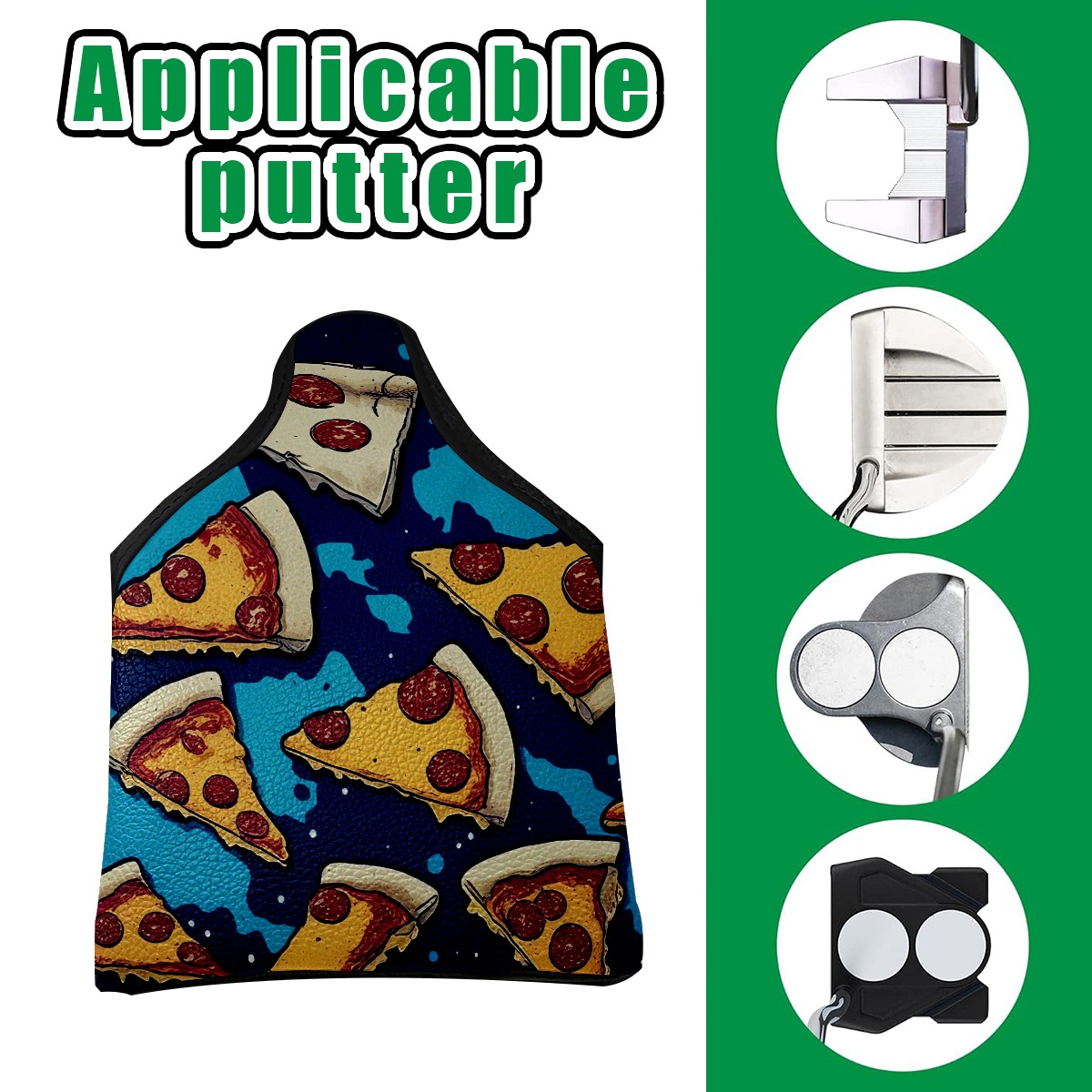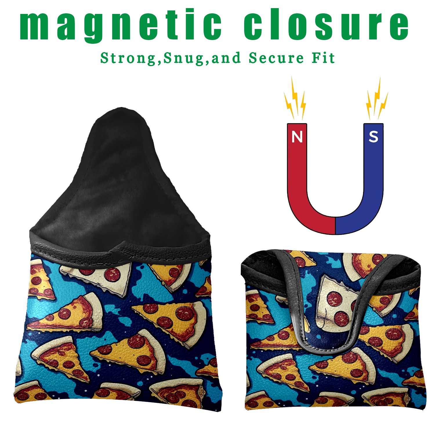 Mallet Putter Cover Magnetic Premium PU Leather Golf Putter Headcover with Plush Lining, Mallet Putter Headcover for Men & Women Golf Club Covers (Pizza Slices Blue)