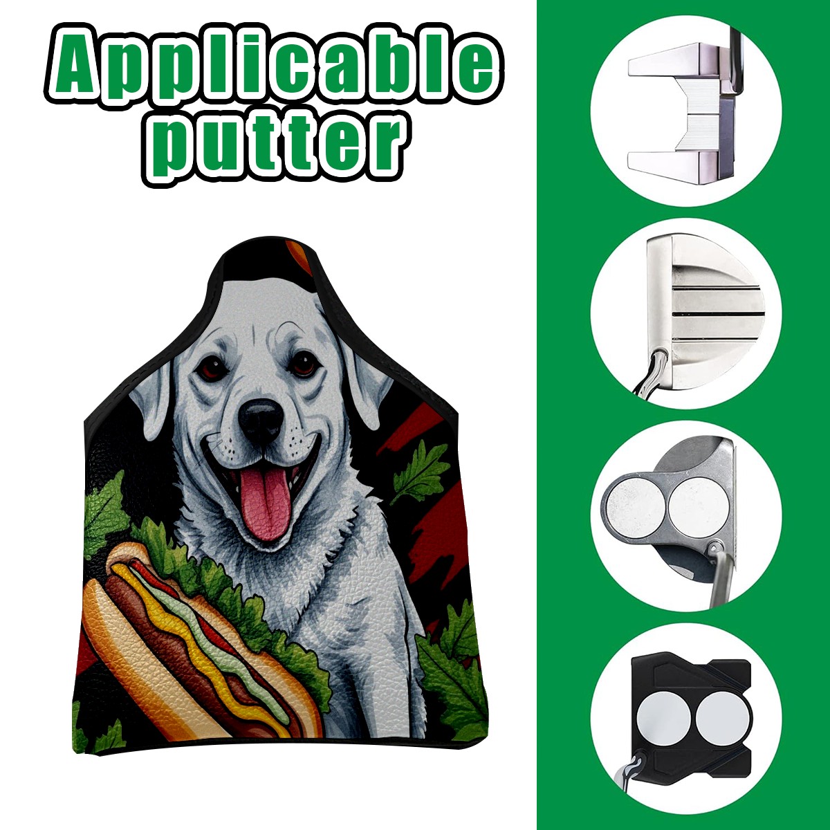 Mallet Putter Cover Magnetic Premium PU Leather Golf Putter Headcover with Plush Lining, Mallet Putter Headcover for Men & Women Golf Club Covers (Cute Dog)