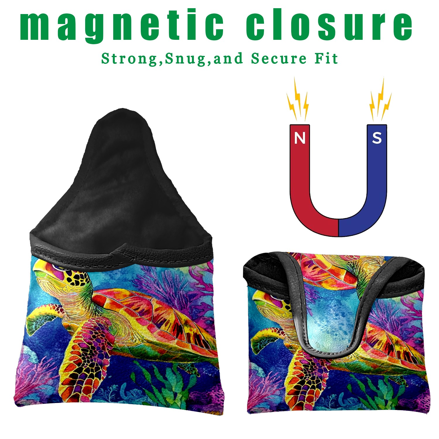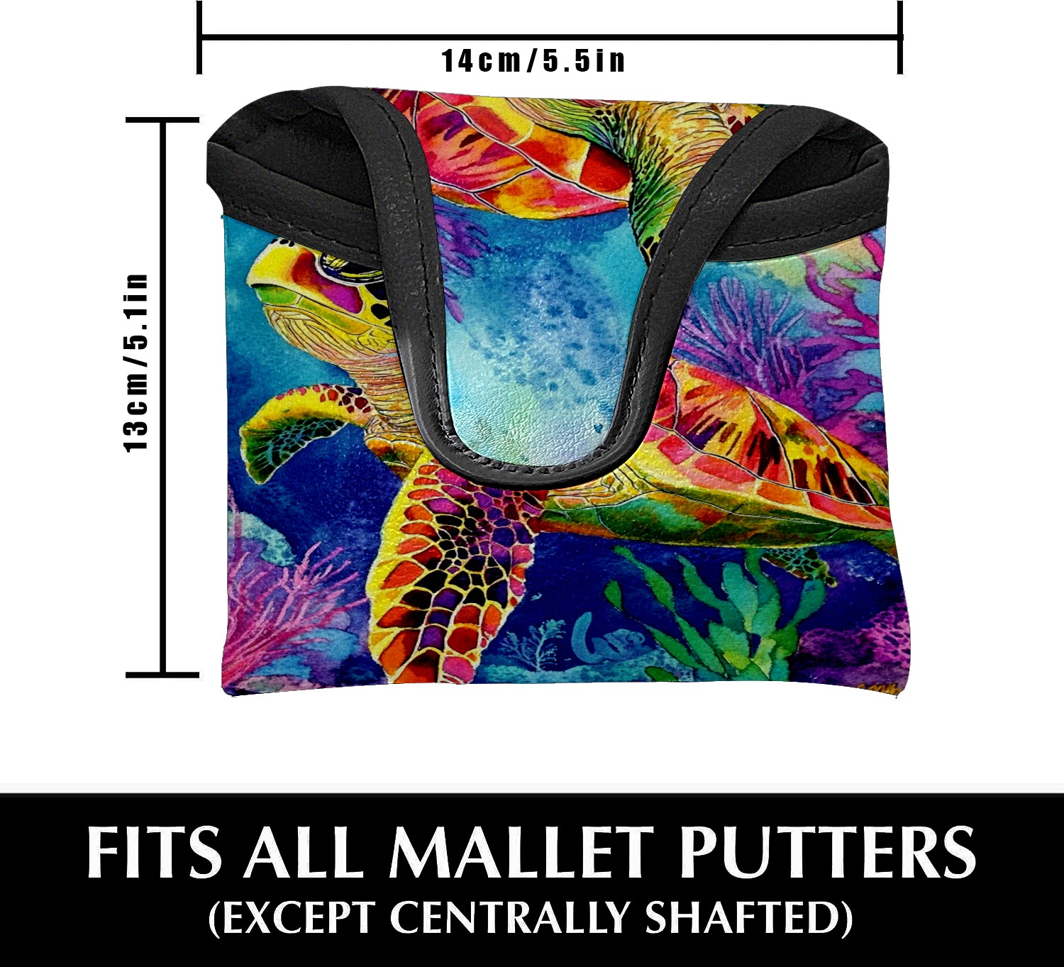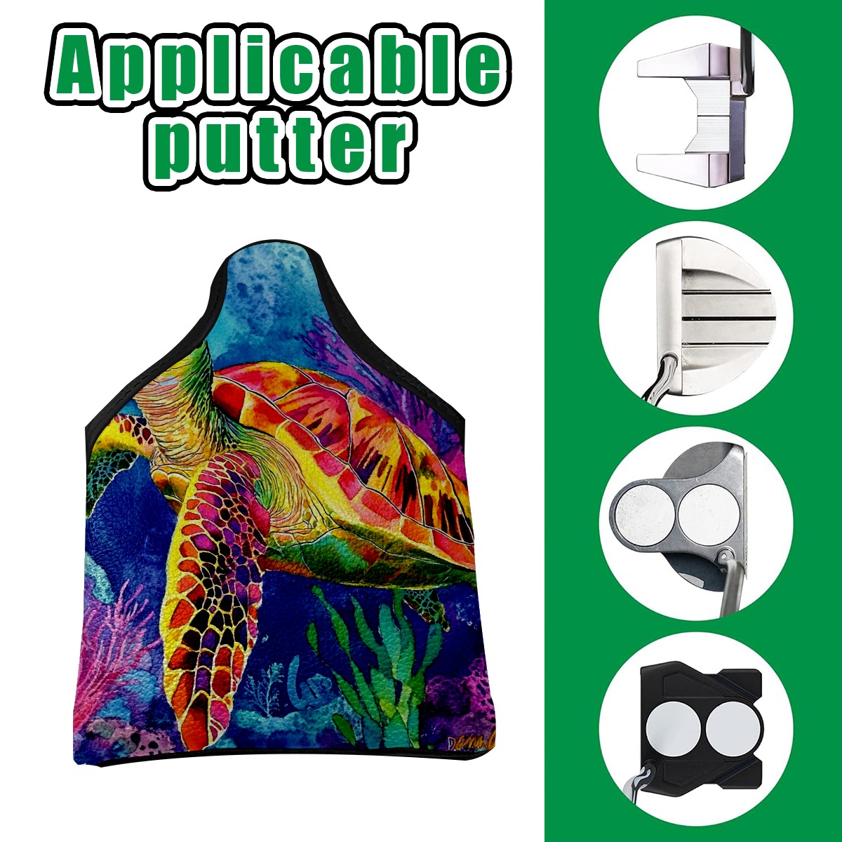 Mallet Putter Cover Magnetic Premium PU Leather Golf Putter Headcover with Plush Lining, Mallet Putter Headcover for Men & Women Golf Club Covers (Colorful Sea Turtle)