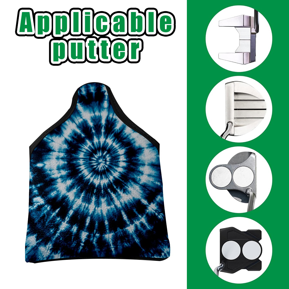 Mallet Putter Cover Magnetic Premium PU Leather Golf Putter Headcover with Plush Lining, Mallet Putter Headcover for Men & Women Golf Club Covers (Tie Dye Indigo)