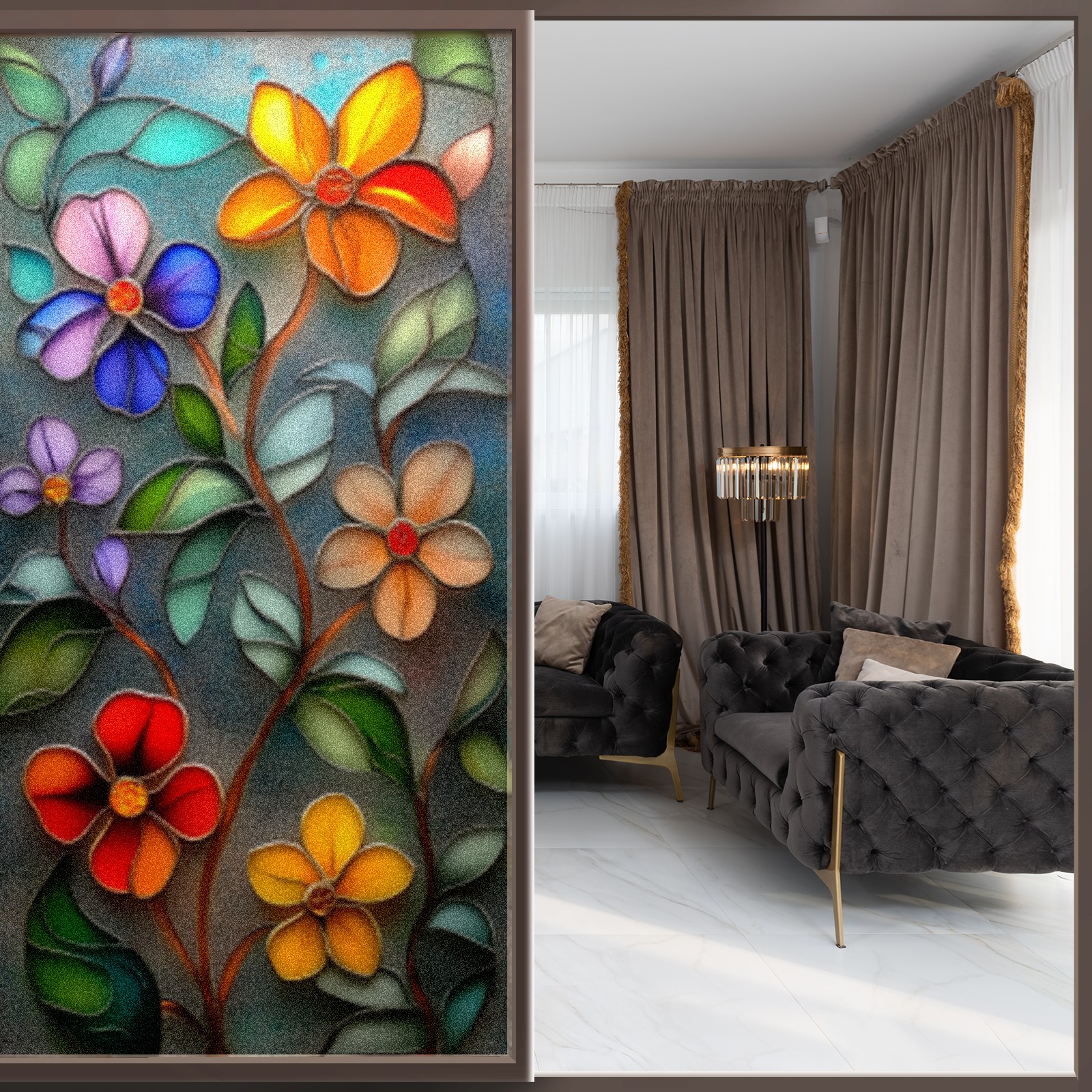 <p>Our film is made of food-grade PET material, safe and odorless, mother and baby families can rest assured that the use of explosion-proof impact resistance more peace of mind. High-definition full-sheet printing, delicate pattern does not fade, easy to enhance the tone of the home, suitable for a variety of decorative styles. Single-sided frosted design, effective protection of privacy, clear view during the day, night anti-peeping without embarrassment. Electrostatic adsorption installation, glue-free without leaving marks, can be repeatedly adjusted for use. It can also block ultraviolet rays, sunscreen insulation, protect furniture from fading, energy saving and more comfortable!&nbsp;&nbsp;</p>