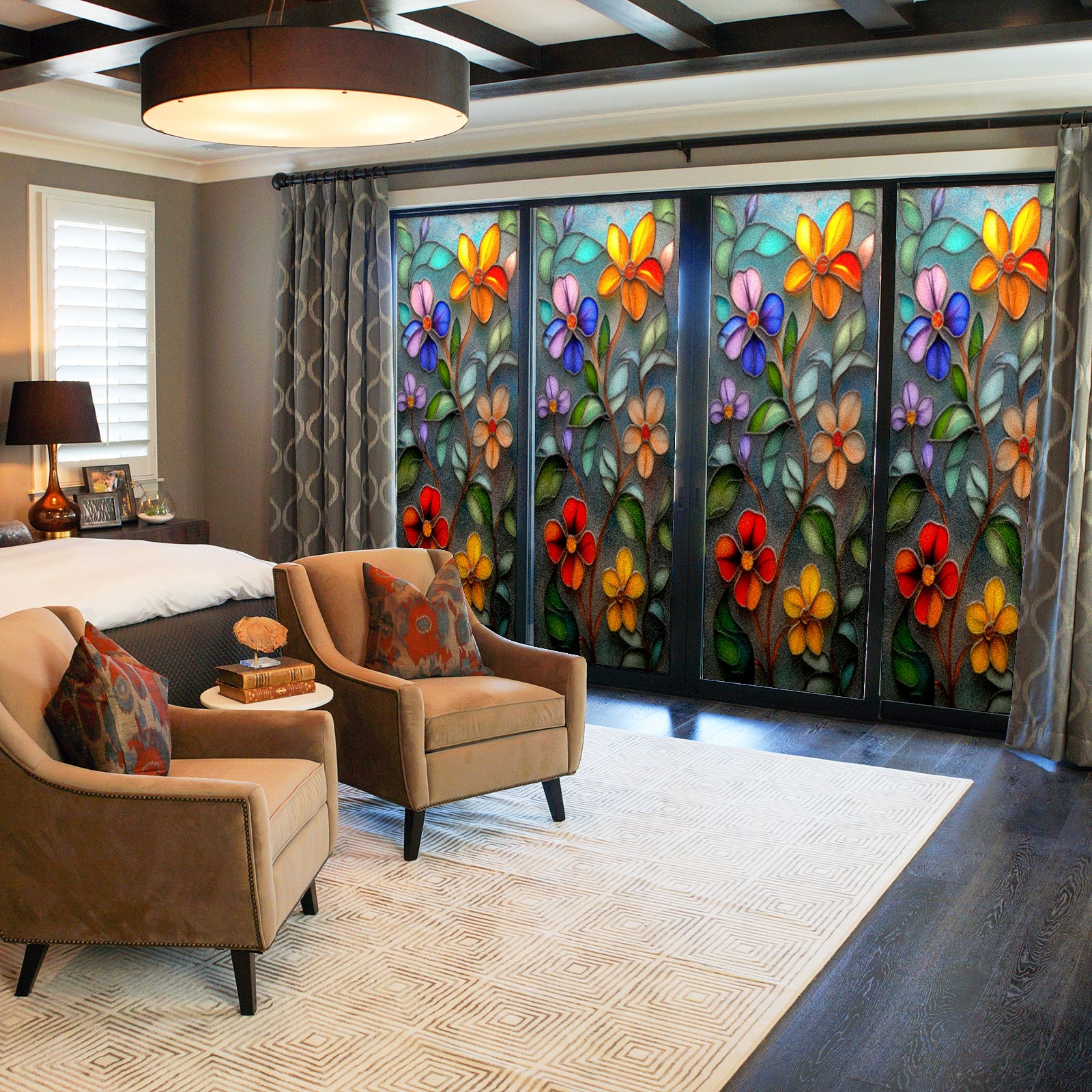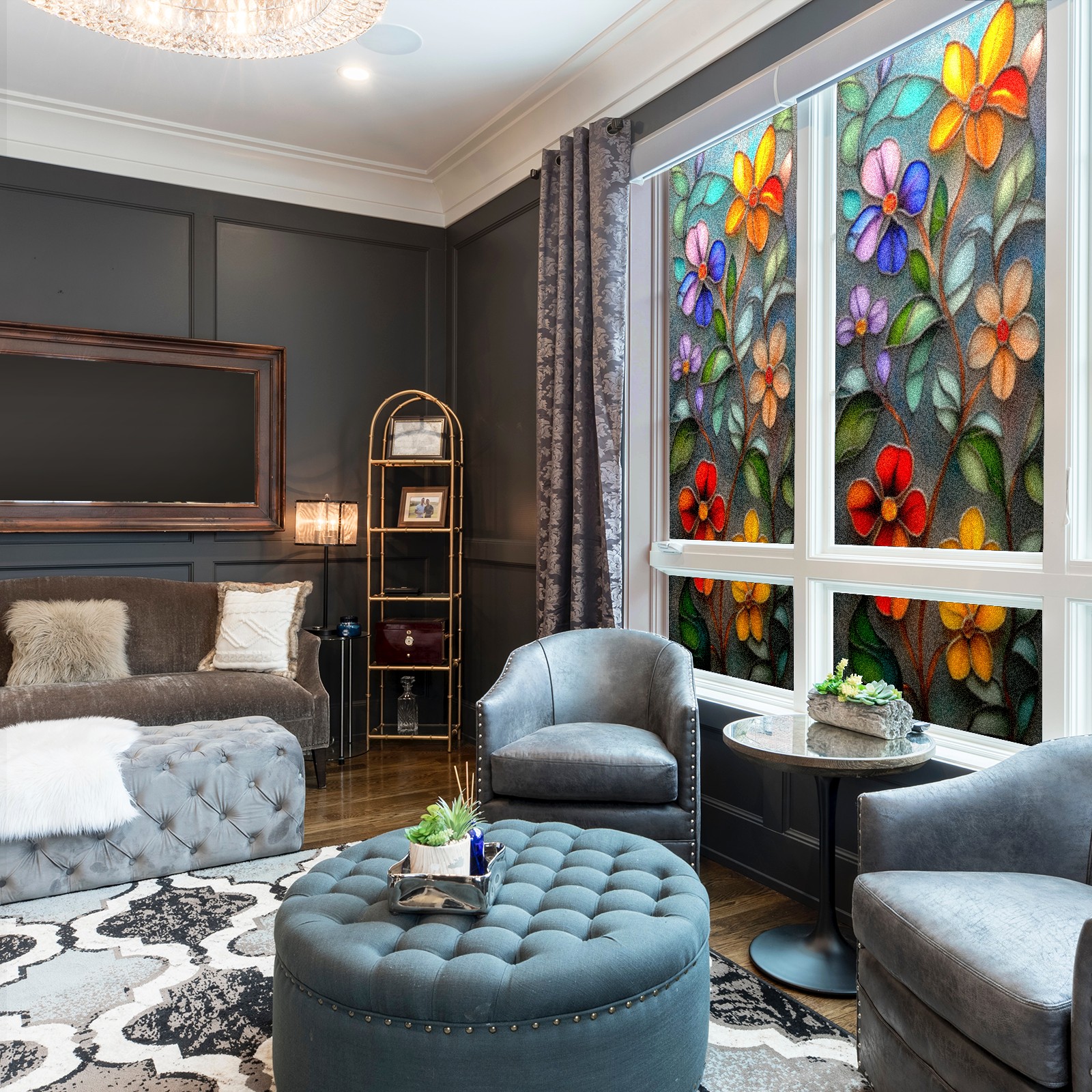• <p>Our film is made of food-grade PET material, safe and odorless, mother and baby families can rest assured that the use of explosion-proof impact resistance more peace of mind. High-definition full-sheet printing, delicate pattern does not fade, easy to enhance the tone of the home, suitable for a variety of decorative styles. Single-sided frosted design, effective protection of privacy, clear view during the day, night anti-peeping without embarrassment. Electrostatic adsorption installation, glue-free without leaving marks, can be repeatedly adjusted for use. It can also block ultraviolet rays, sunscreen insulation, protect furniture from fading, energy saving and more comfortable!&nbsp;&nbsp;</p>