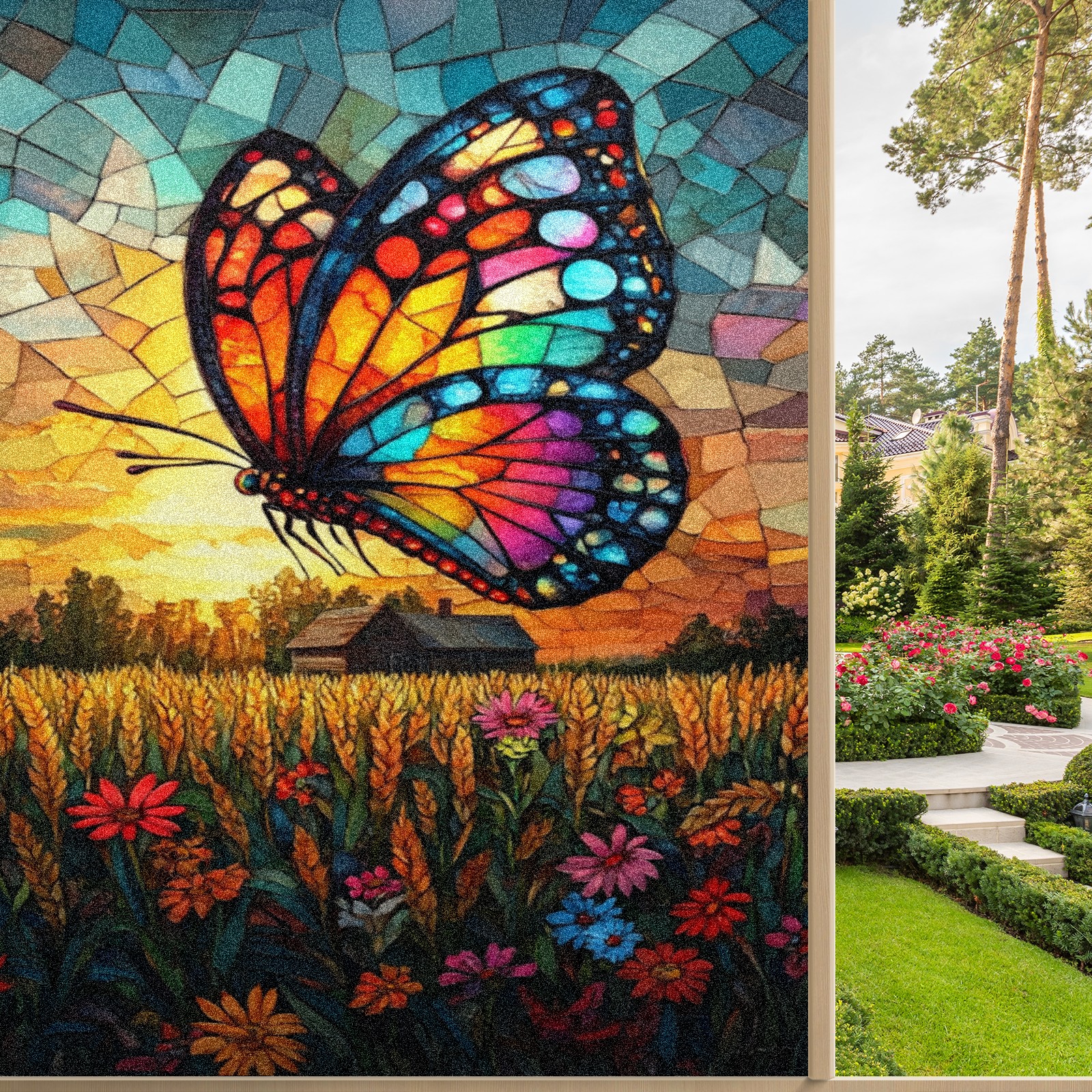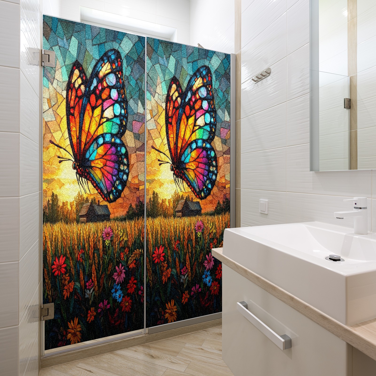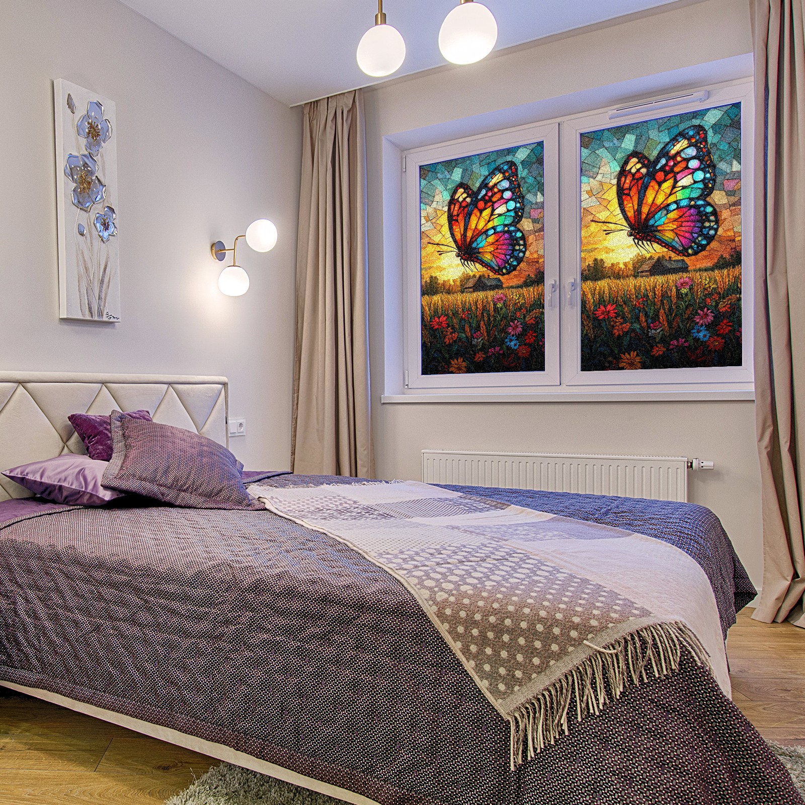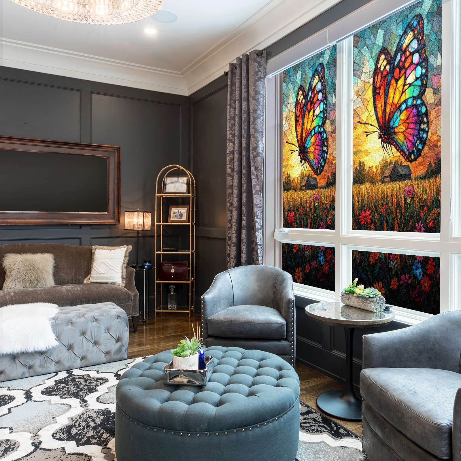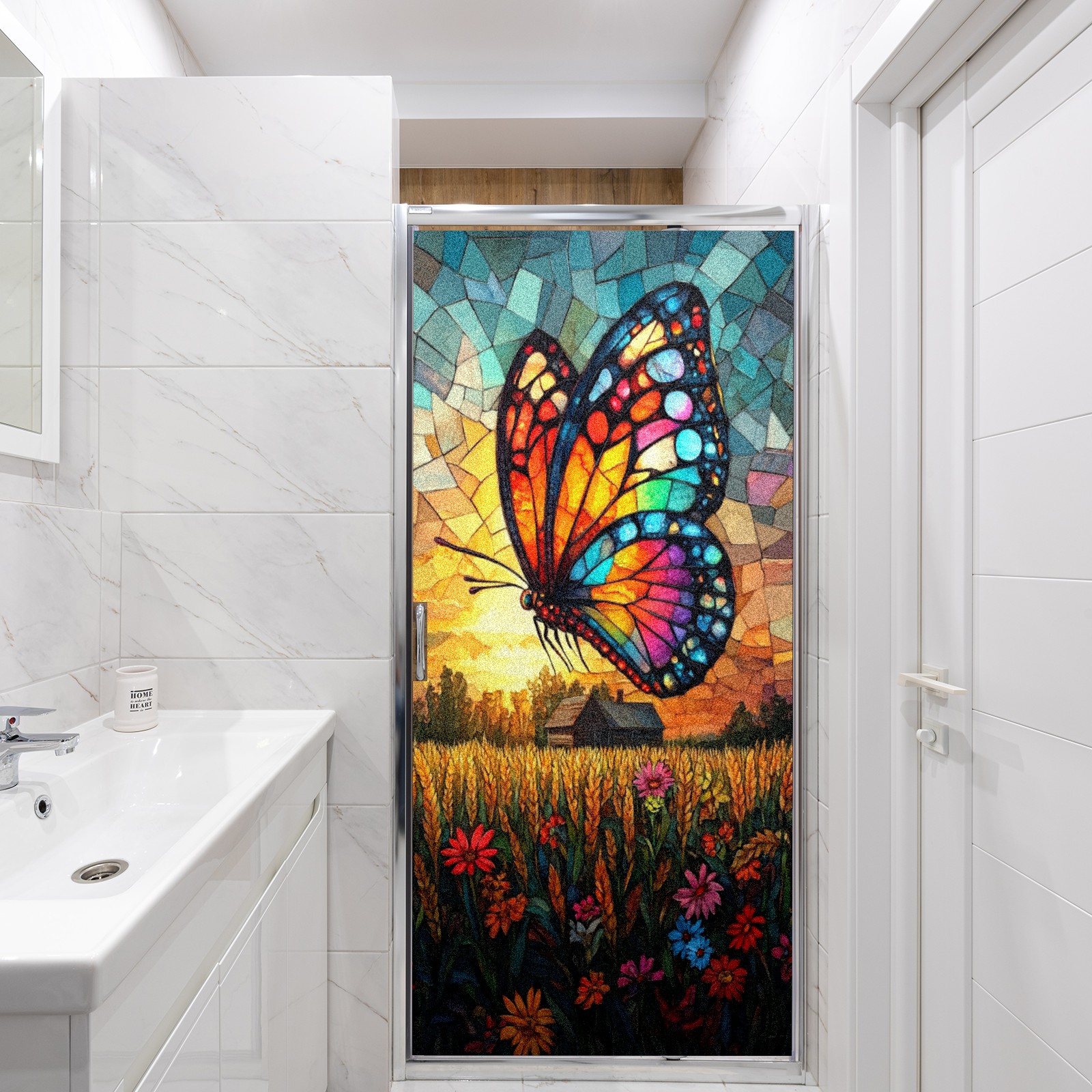 Matte Privacy Window Film | Static Cling, One-Way Glass Insulation Film, UV Blocking & Heat Insulating | Non-Adhesive, Removable for Home, Office & BathroomButterfly