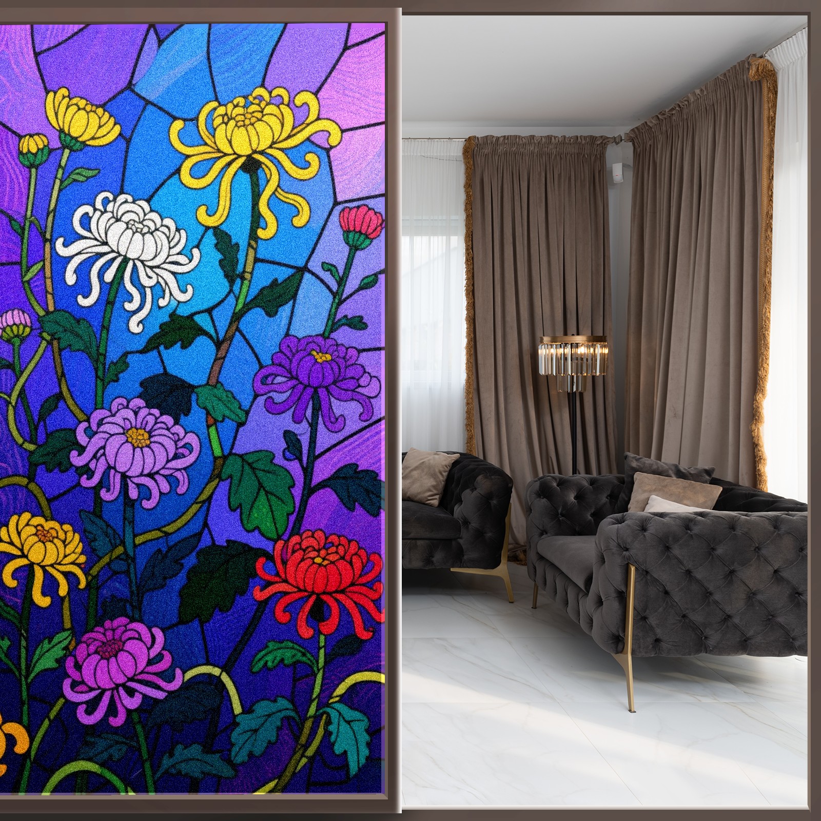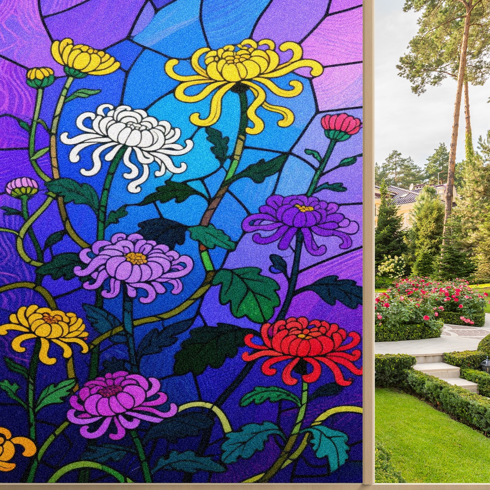 <p>Our film is made of food-grade PET material, safe and odorless, mother and baby families can rest assured that the use of explosion-proof impact resistance more peace of mind. High-definition full-sheet printing, delicate pattern does not fade, easy to enhance the tone of the home, suitable for a variety of decorative styles. Single-sided frosted design, effective protection of privacy, clear view during the day, night anti-peeping without embarrassment. Electrostatic adsorption installation, glue-free without leaving marks, can be repeatedly adjusted for use. It can also block ultraviolet rays, sunscreen insulation, protect furniture from fading, energy saving and more comfortable!&nbsp;&nbsp;</p>