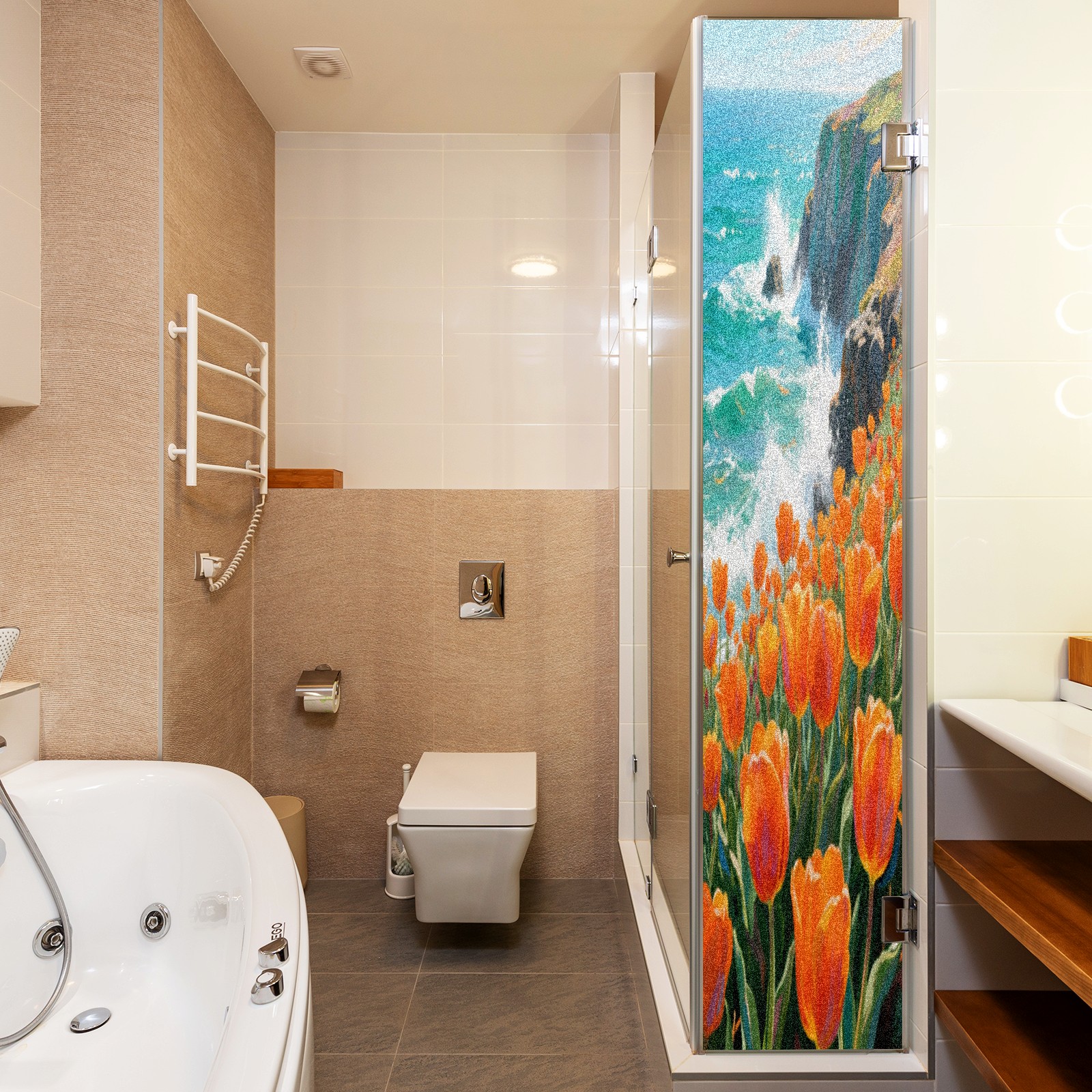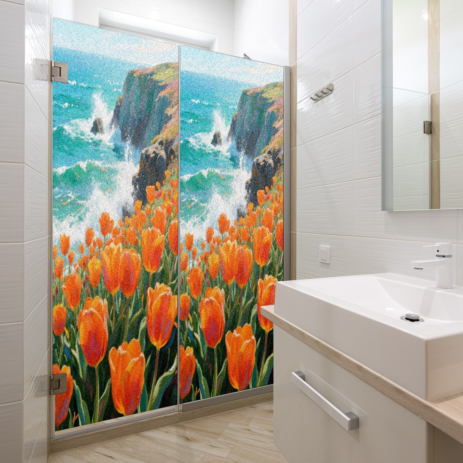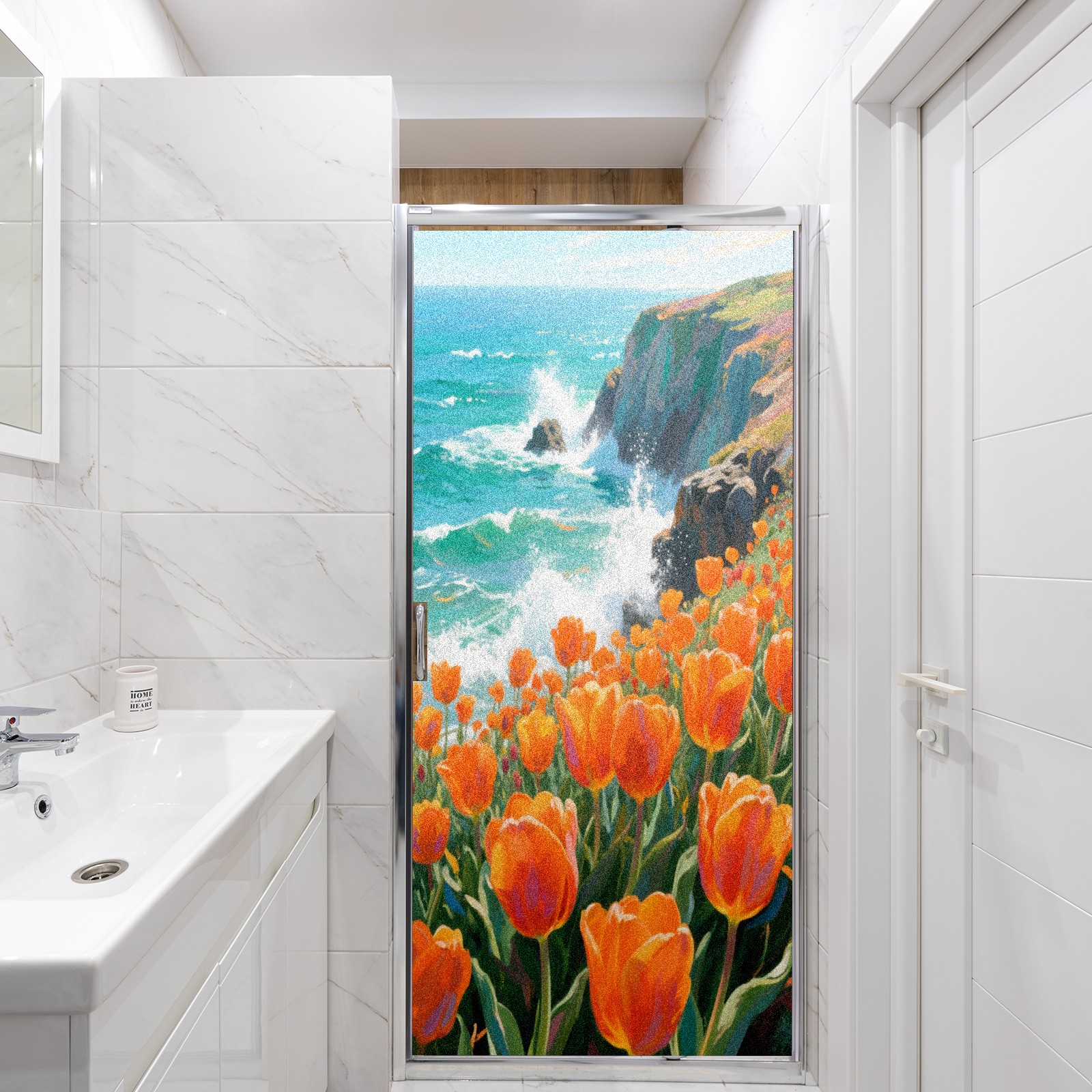 Matte Privacy Window Film | Static Cling, One-Way Glass Insulation Film, UV Blocking & Heat Insulating | Non-Adhesive, Removable for Home, Office & BathroomTulip