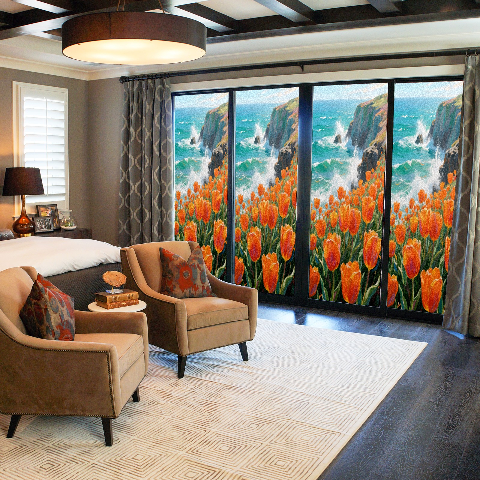 • <p>Our film is made of food-grade PET material, safe and odorless, mother and baby families can rest assured that the use of explosion-proof impact resistance more peace of mind. High-definition full-sheet printing, delicate pattern does not fade, easy to enhance the tone of the home, suitable for a variety of decorative styles. Single-sided frosted design, effective protection of privacy, clear view during the day, night anti-peeping without embarrassment. Electrostatic adsorption installation, glue-free without leaving marks, can be repeatedly adjusted for use. It can also block ultraviolet rays, sunscreen insulation, protect furniture from fading, energy saving and more comfortable!&nbsp;&nbsp;</p>
