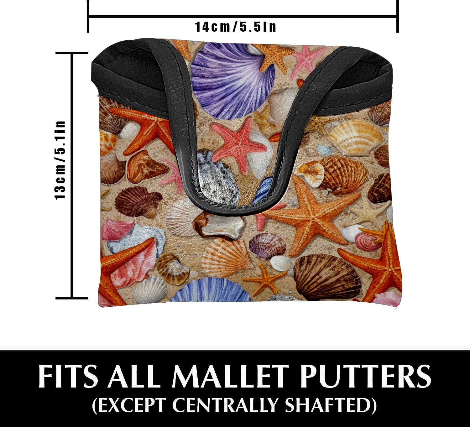 Mallet Putter Cover Magnetic Premium PU Leather Golf Putter Headcover with Plush Lining, Mallet Putter Headcover for Men & Women Golf Club Covers (Beach Shells Starfish)