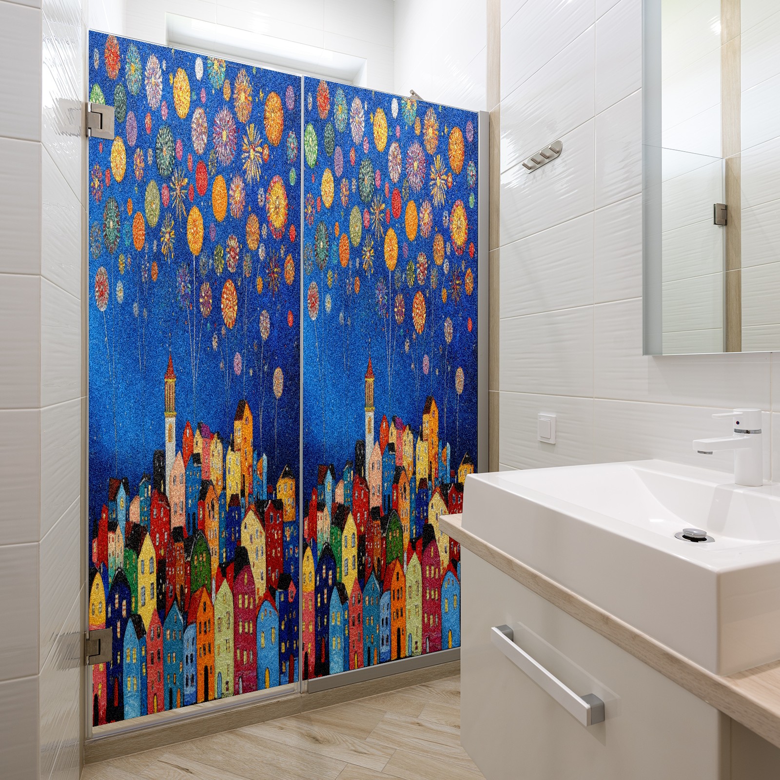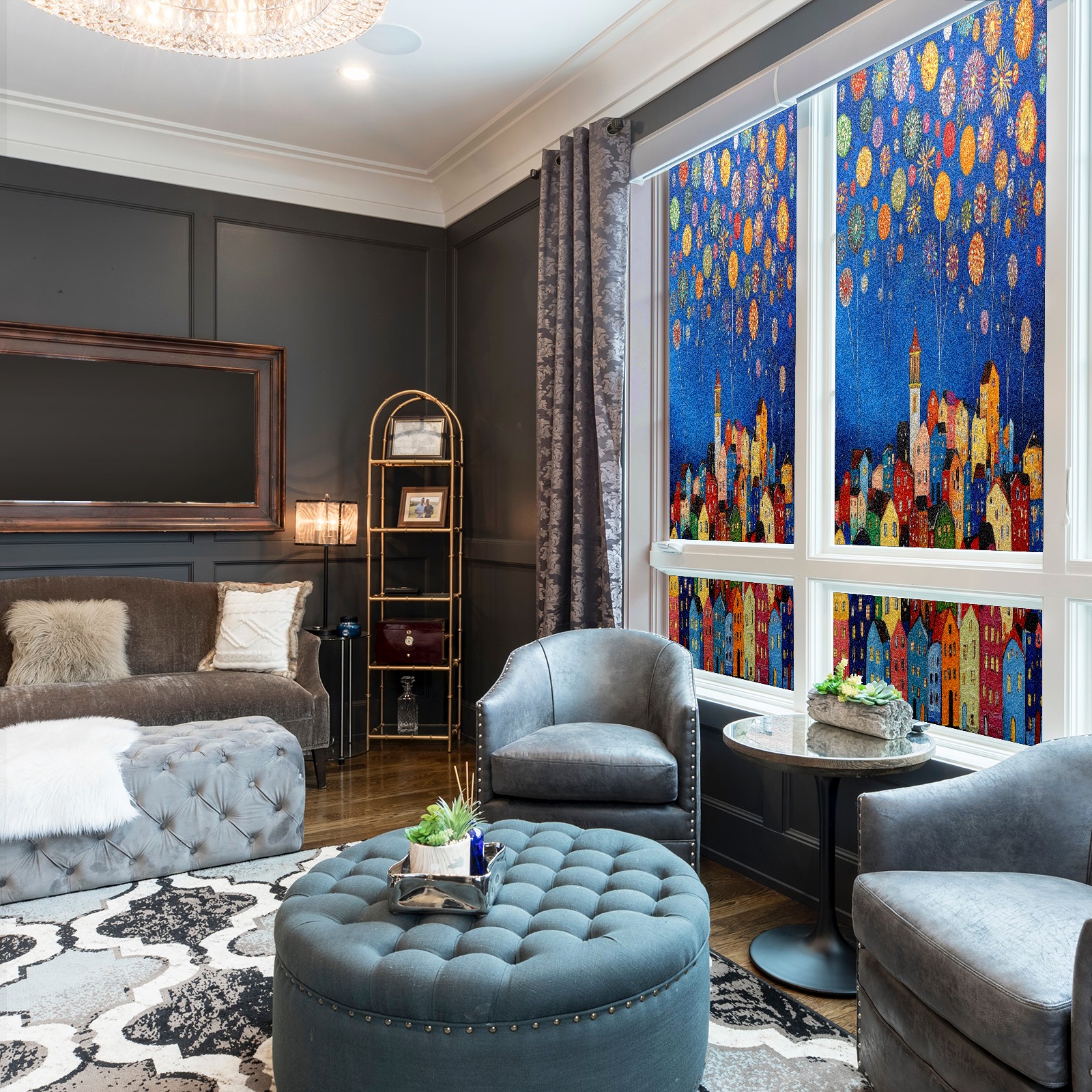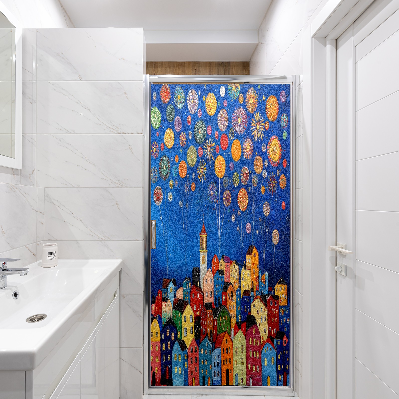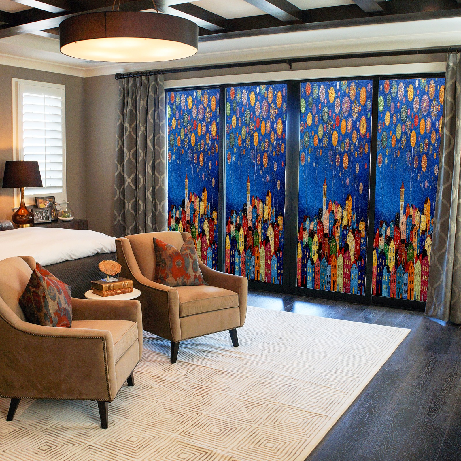 Matte Privacy Window Film | Static Cling, One-Way Glass Insulation Film, UV Blocking & Heat Insulating | Non-Adhesive, Removable for Home, Office & BathroomCityscape_with_fireworks