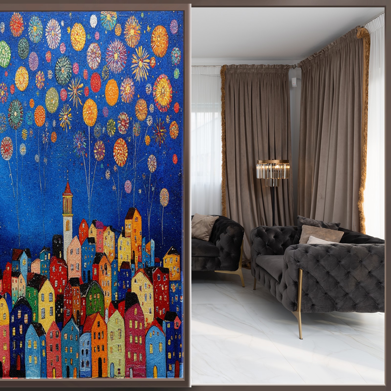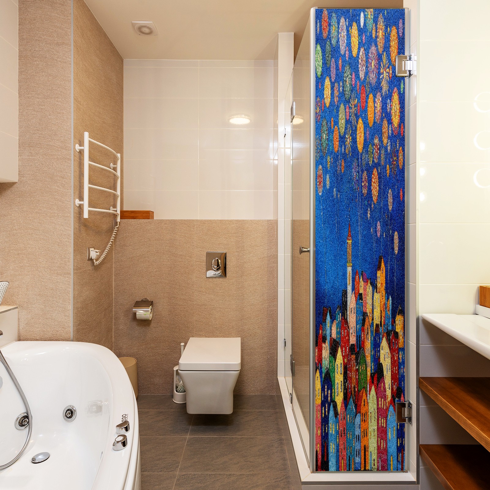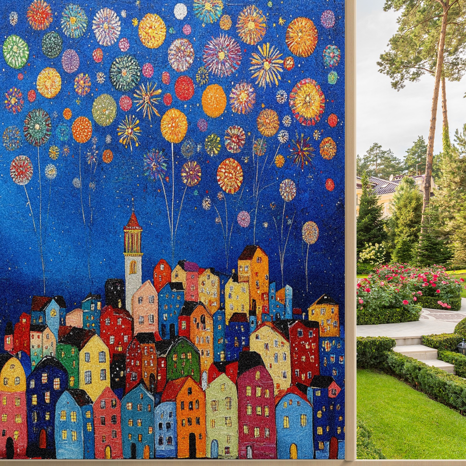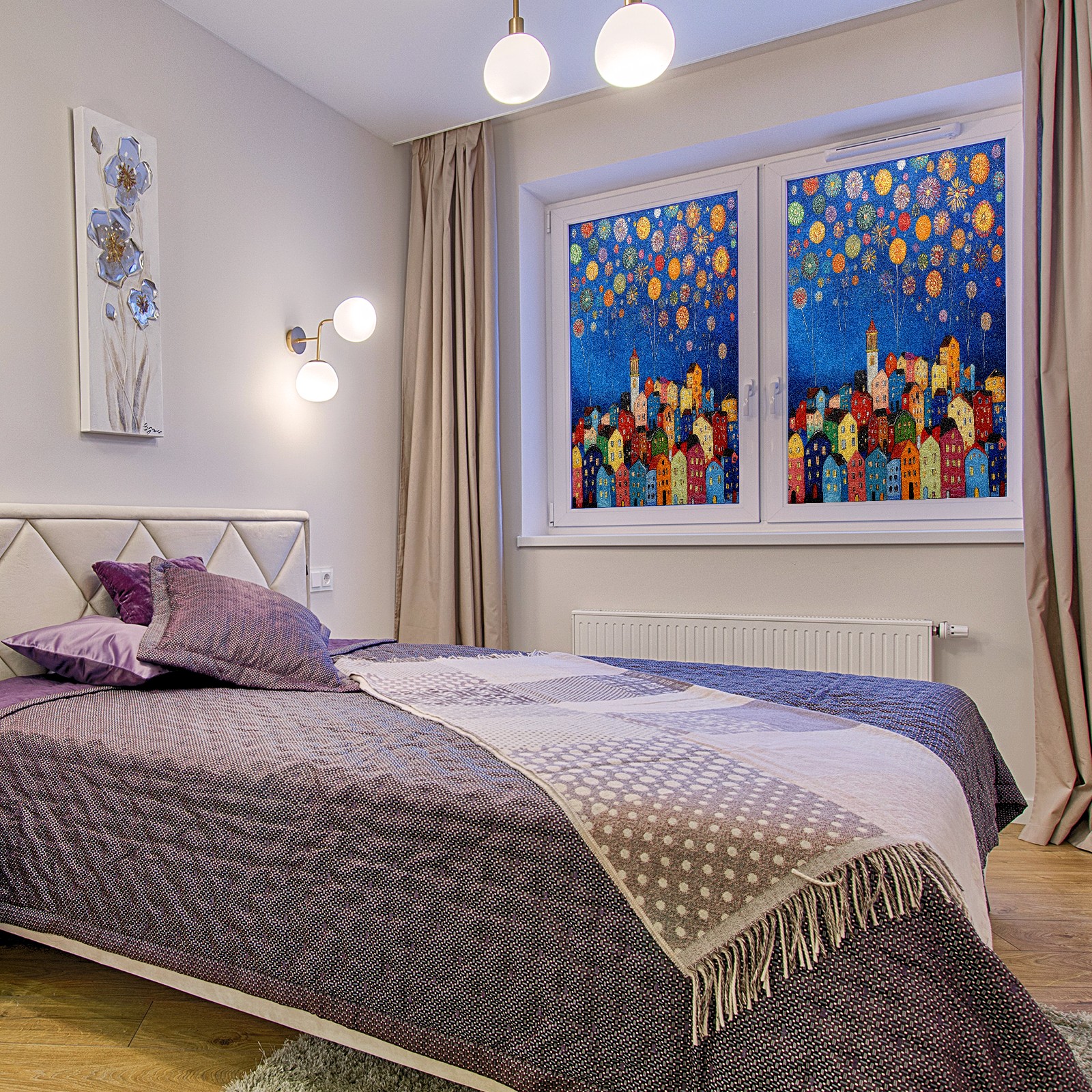 Matte Privacy Window Film | Static Cling, One-Way Glass Insulation Film, UV Blocking & Heat Insulating | Non-Adhesive, Removable for Home, Office & BathroomCityscape_with_fireworks