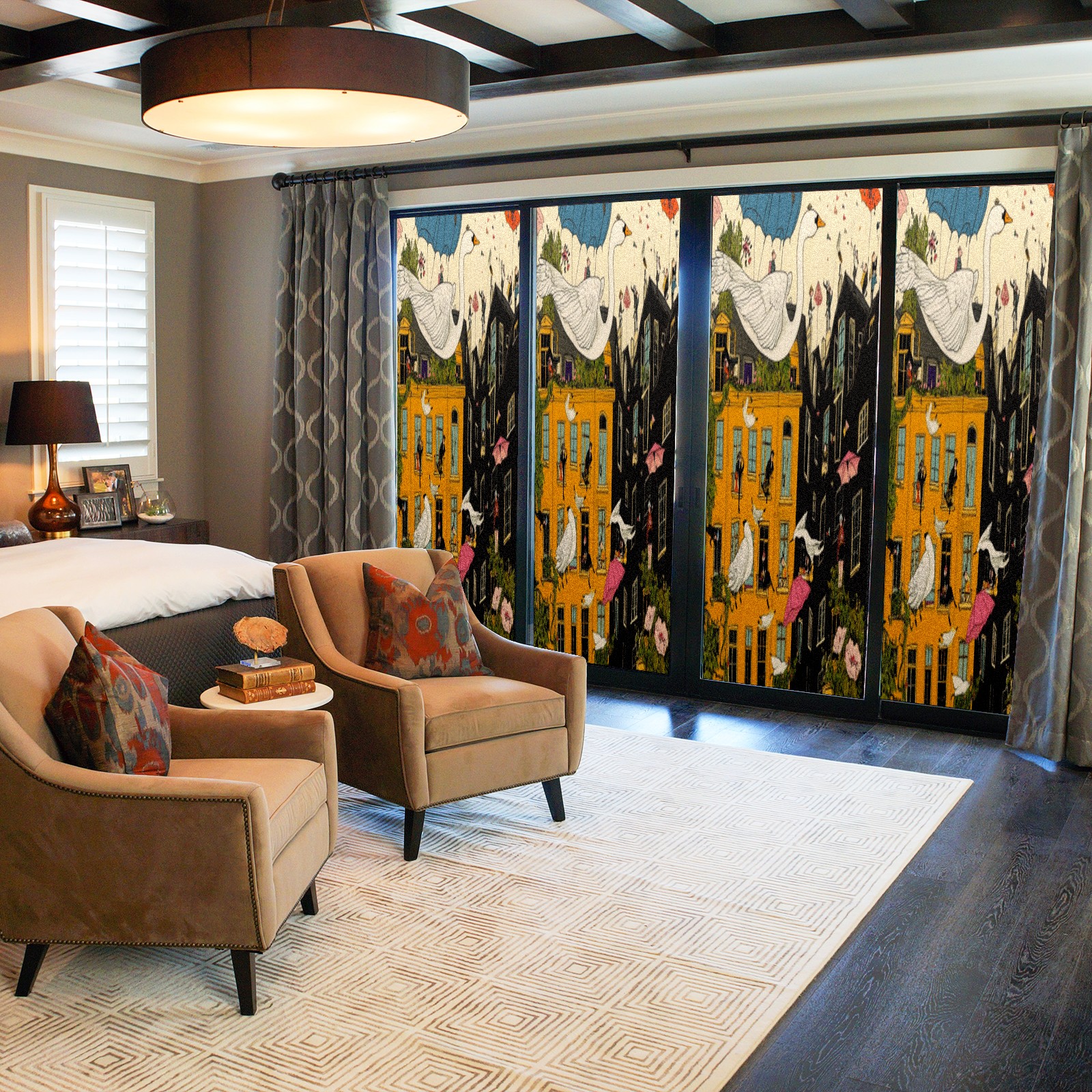 • <p>Our film is made of food-grade PET material, safe and odorless, mother and baby families can rest assured that the use of explosion-proof impact resistance more peace of mind. High-definition full-sheet printing, delicate pattern does not fade, easy to enhance the tone of the home, suitable for a variety of decorative styles. Single-sided frosted design, effective protection of privacy, clear view during the day, night anti-peeping without embarrassment. Electrostatic adsorption installation, glue-free without leaving marks, can be repeatedly adjusted for use. It can also block ultraviolet rays, sunscreen insulation, protect furniture from fading, energy saving and more comfortable!&nbsp;&nbsp;</p>
