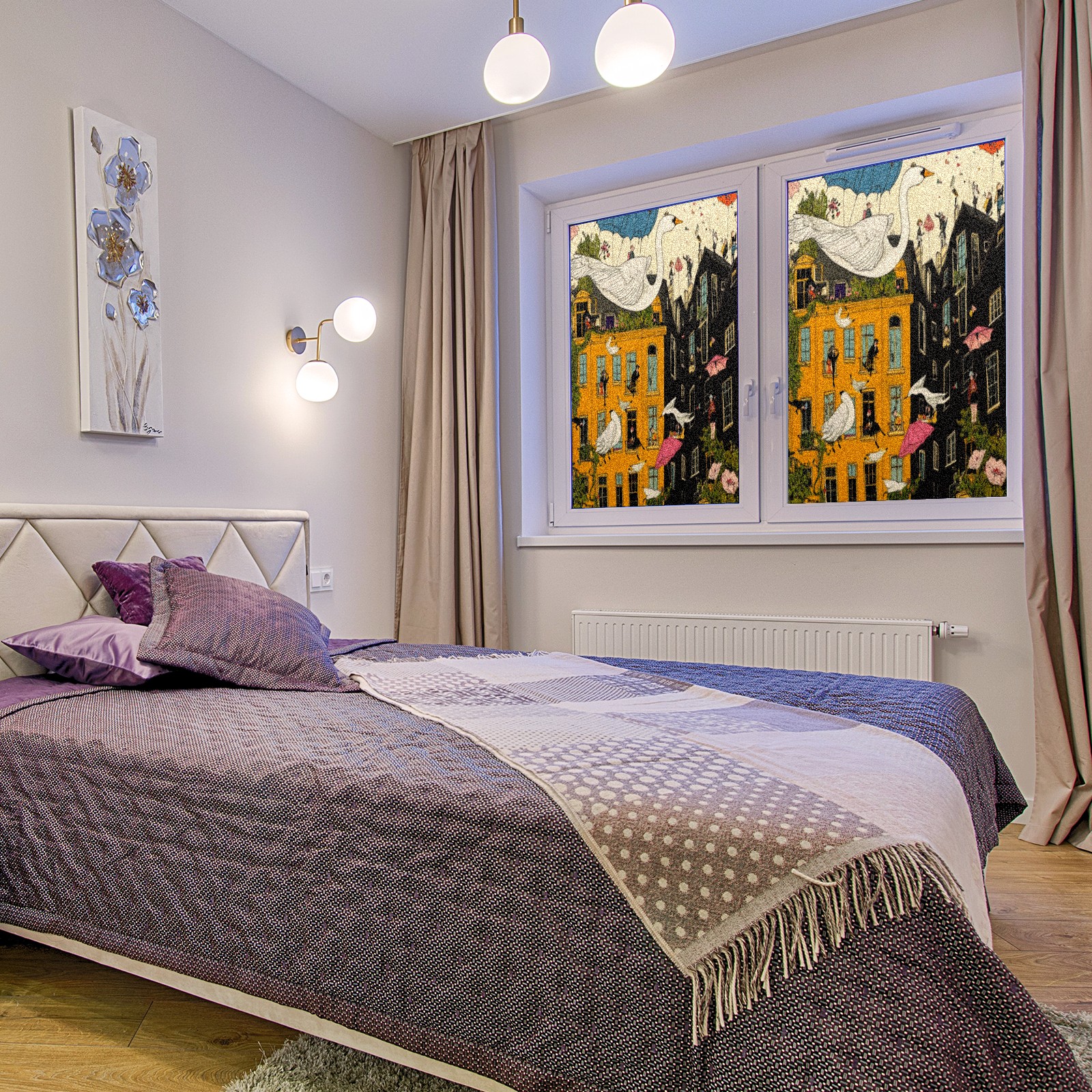 <p>Our film is made of food-grade PET material, safe and odorless, mother and baby families can rest assured that the use of explosion-proof impact resistance more peace of mind. High-definition full-sheet printing, delicate pattern does not fade, easy to enhance the tone of the home, suitable for a variety of decorative styles. Single-sided frosted design, effective protection of privacy, clear view during the day, night anti-peeping without embarrassment. Electrostatic adsorption installation, glue-free without leaving marks, can be repeatedly adjusted for use. It can also block ultraviolet rays, sunscreen insulation, protect furniture from fading, energy saving and more comfortable!&nbsp;&nbsp;</p>