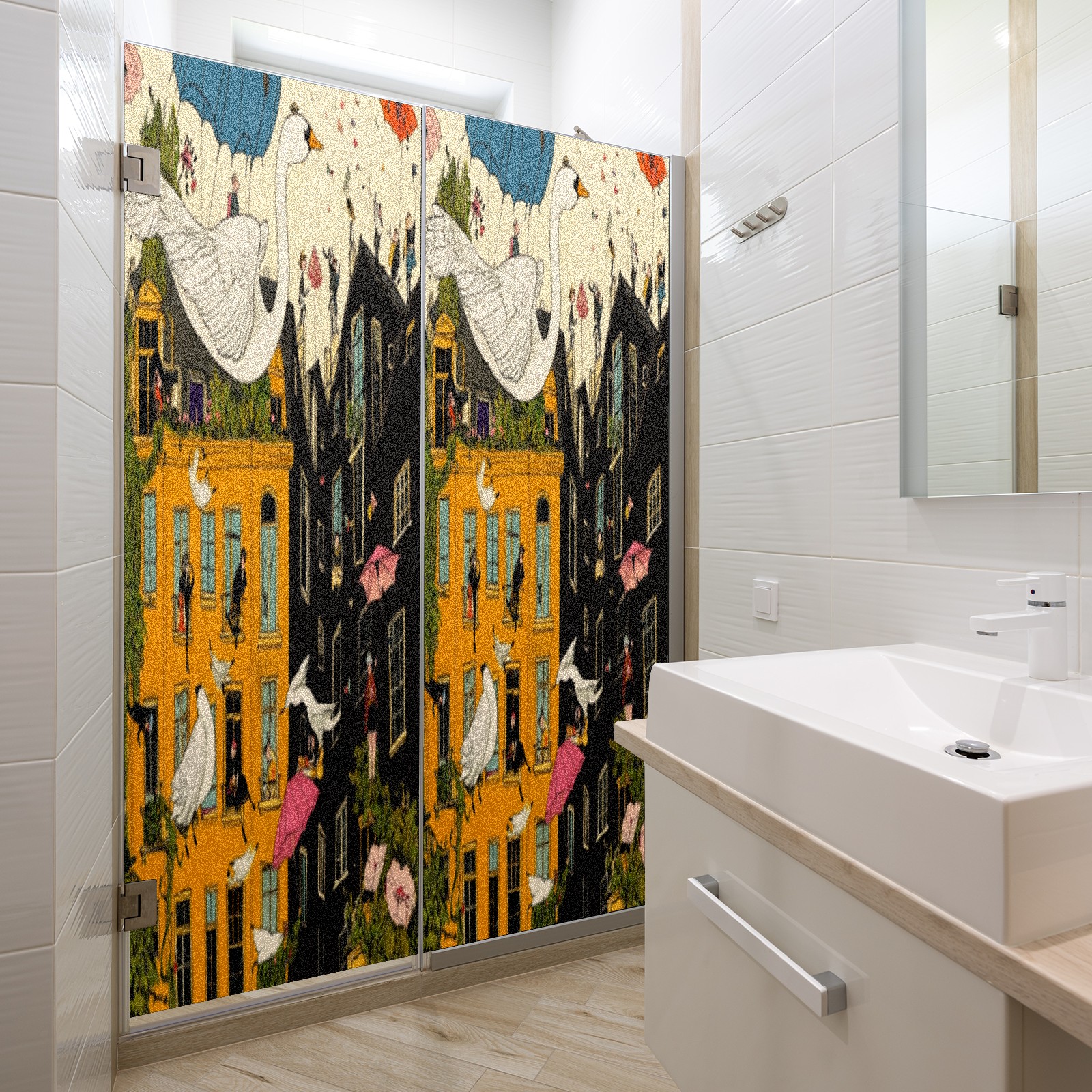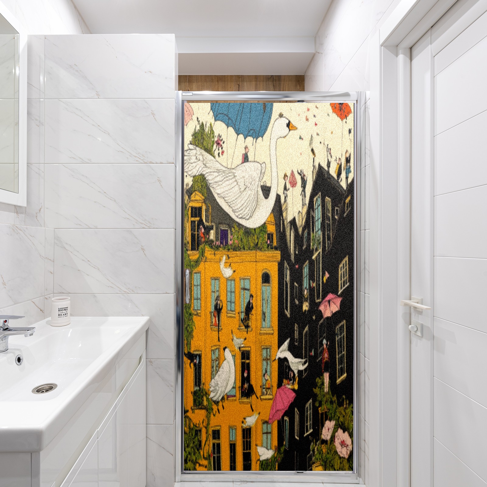 Matte Privacy Window Film | Static Cling, One-Way Glass Insulation Film, UV Blocking & Heat Insulating | Non-Adhesive, Removable for Home, Office & BathroomPeople_floating_in_the_sky_