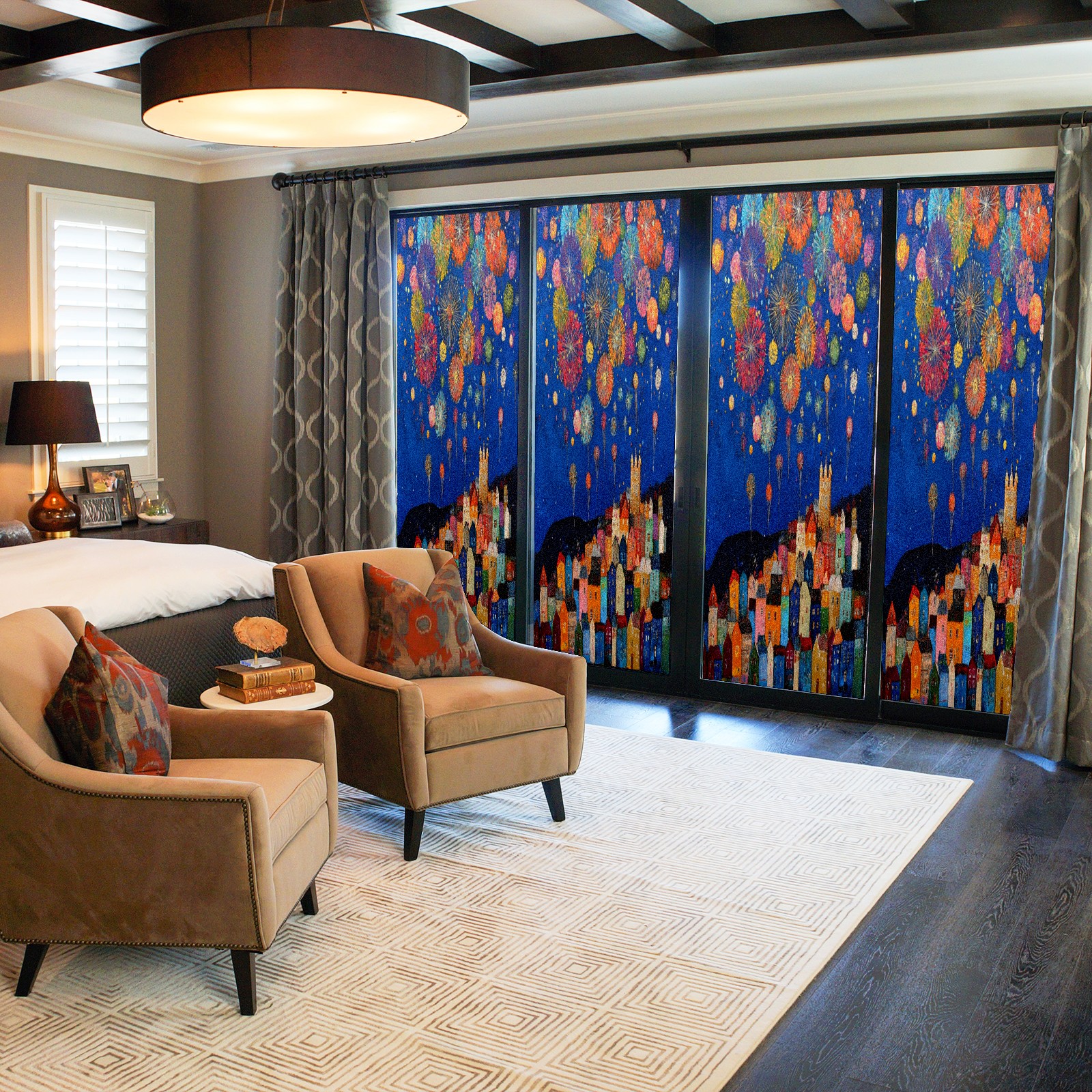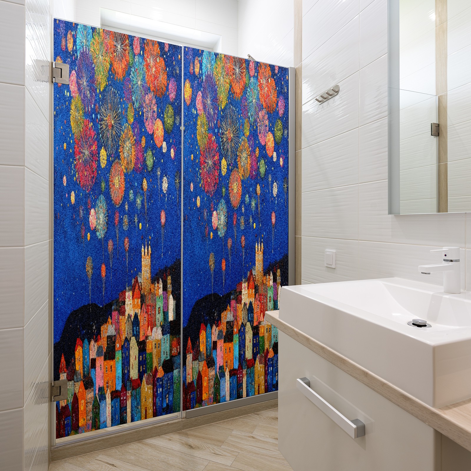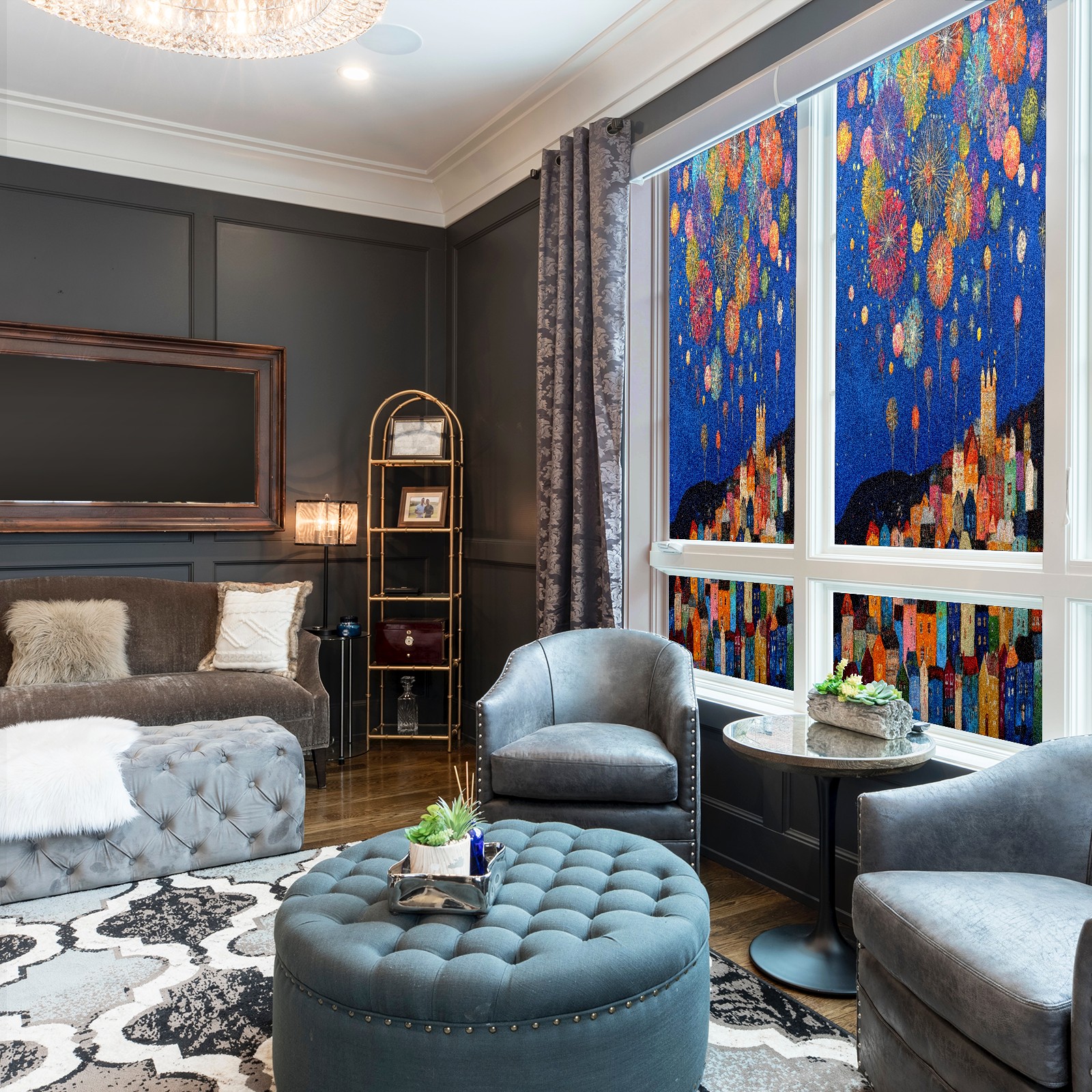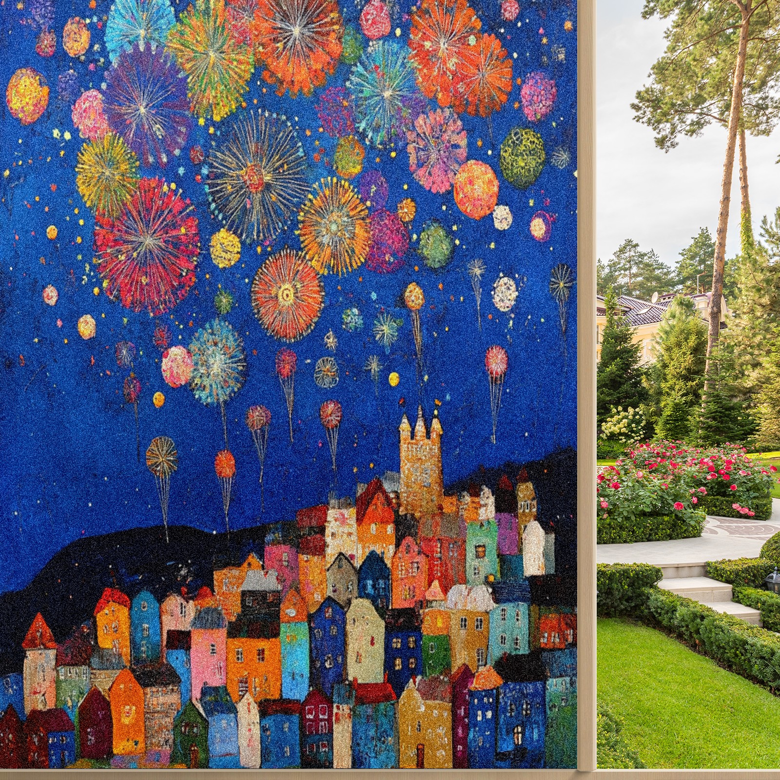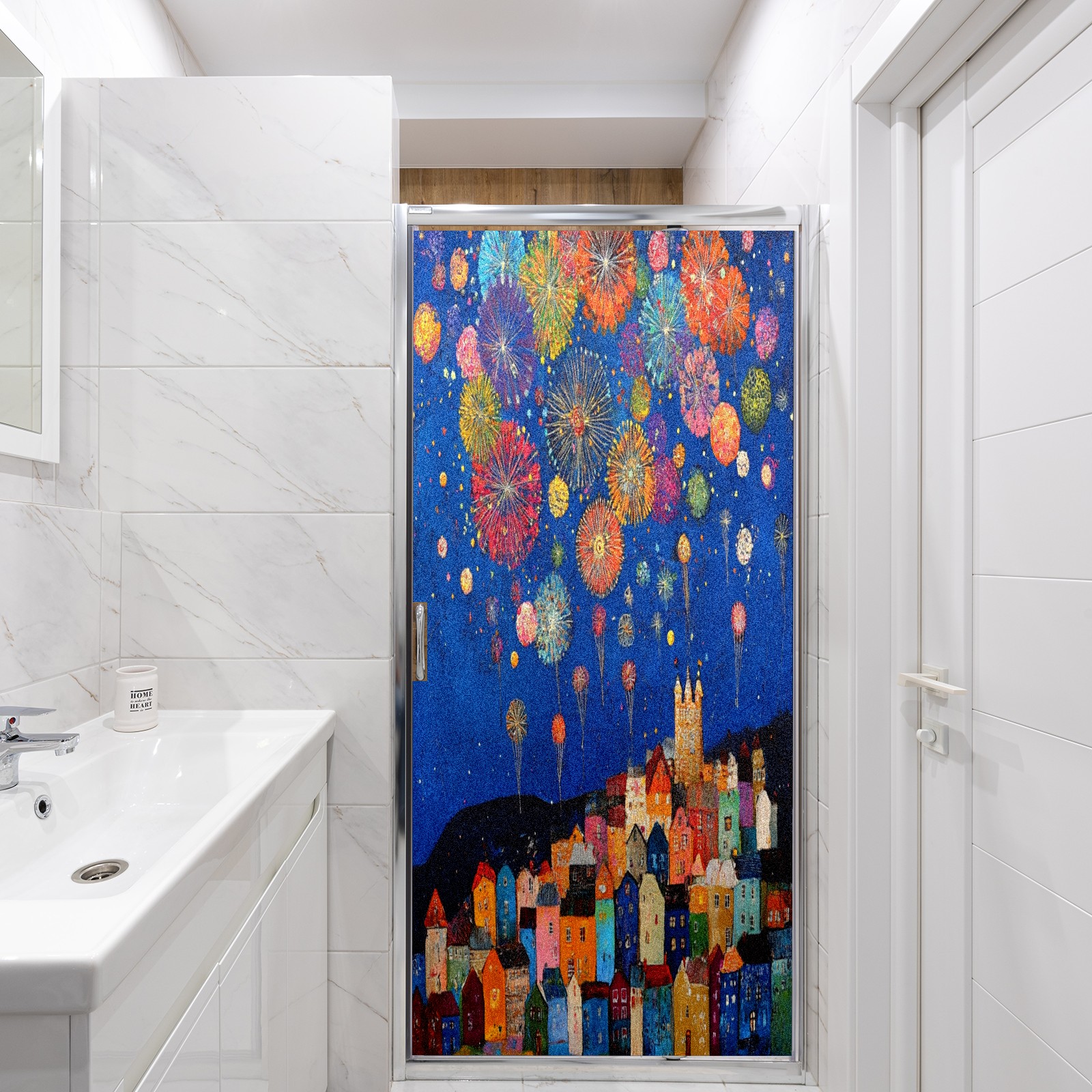 Matte Privacy Window Film | Static Cling, One-Way Glass Insulation Film, UV Blocking & Heat Insulating | Non-Adhesive, Removable for Home, Office & BathroomFireworks