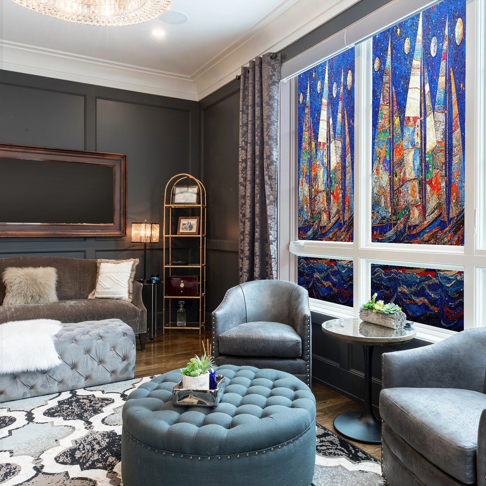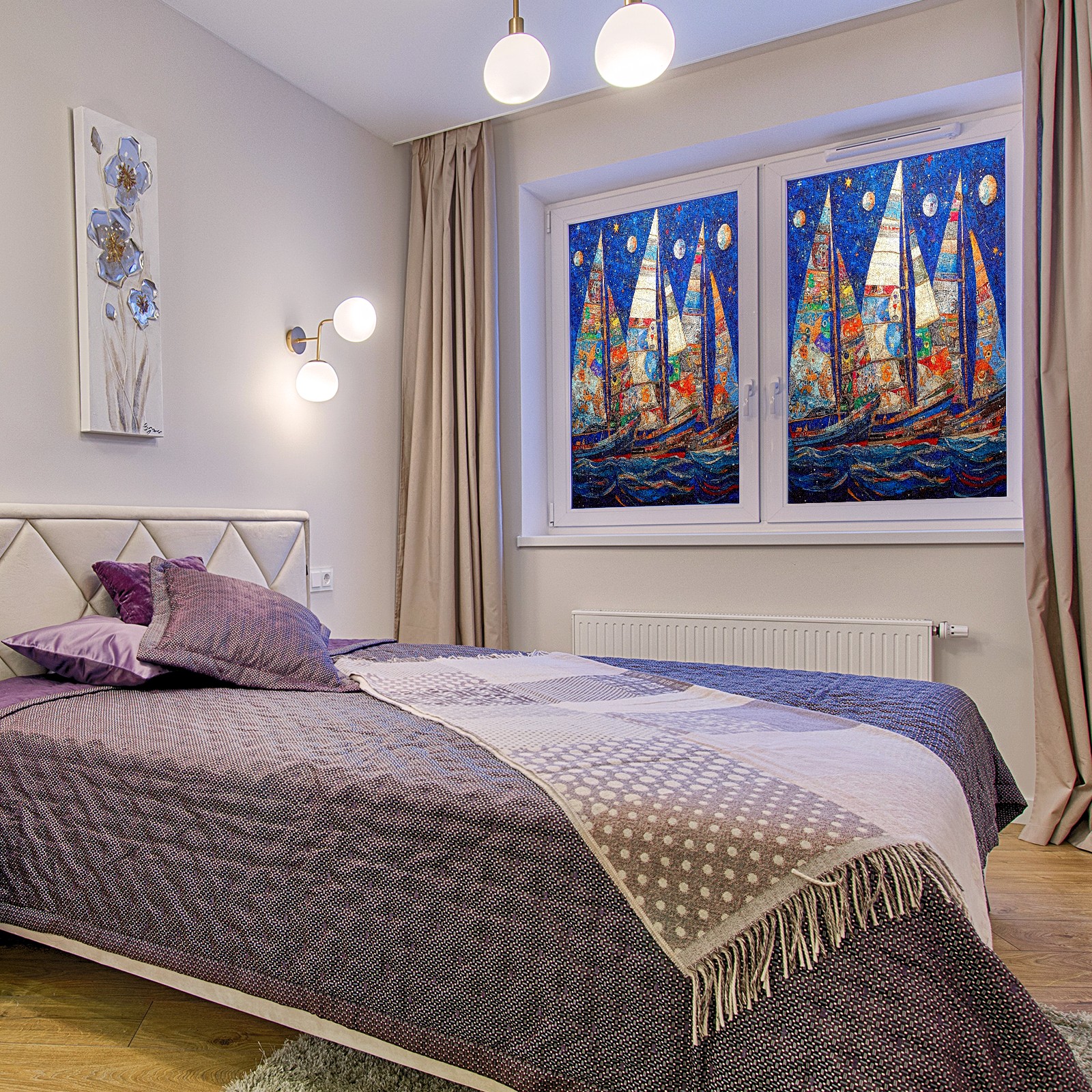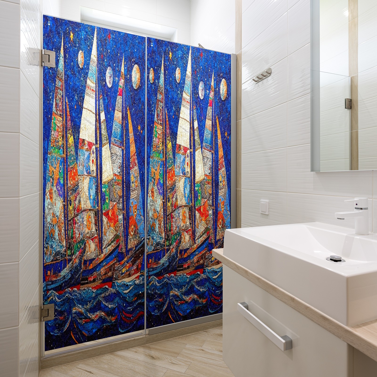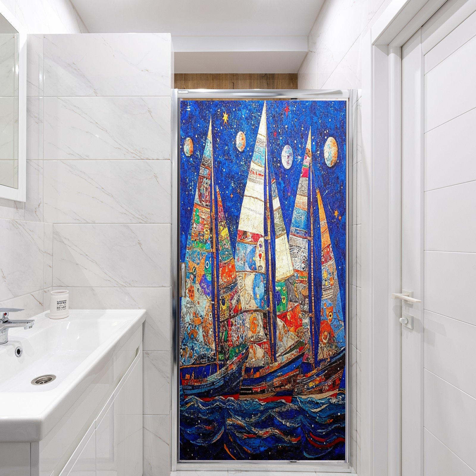 Matte Privacy Window Film | Static Cling, One-Way Glass Insulation Film, UV Blocking & Heat Insulating | Non-Adhesive, Removable for Home, Office & BathroomSailboats