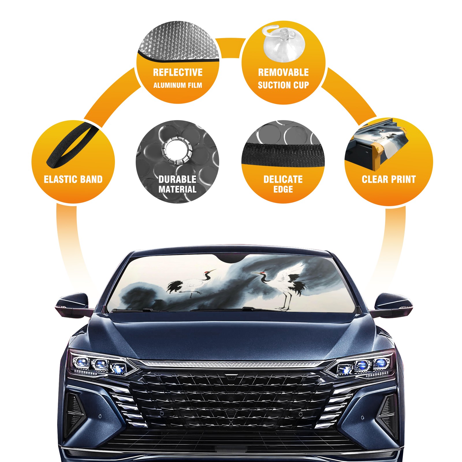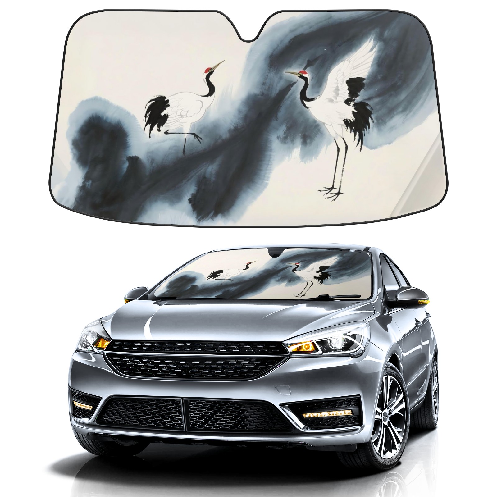Aluminum Foil Polyester Car Sunshade Pad, Efficient Heat Insulation And Sun Protection ArtifactJimeng-2025-06-04-530-中国水墨画仙鹤,梦幻水墨仙鹤(1)