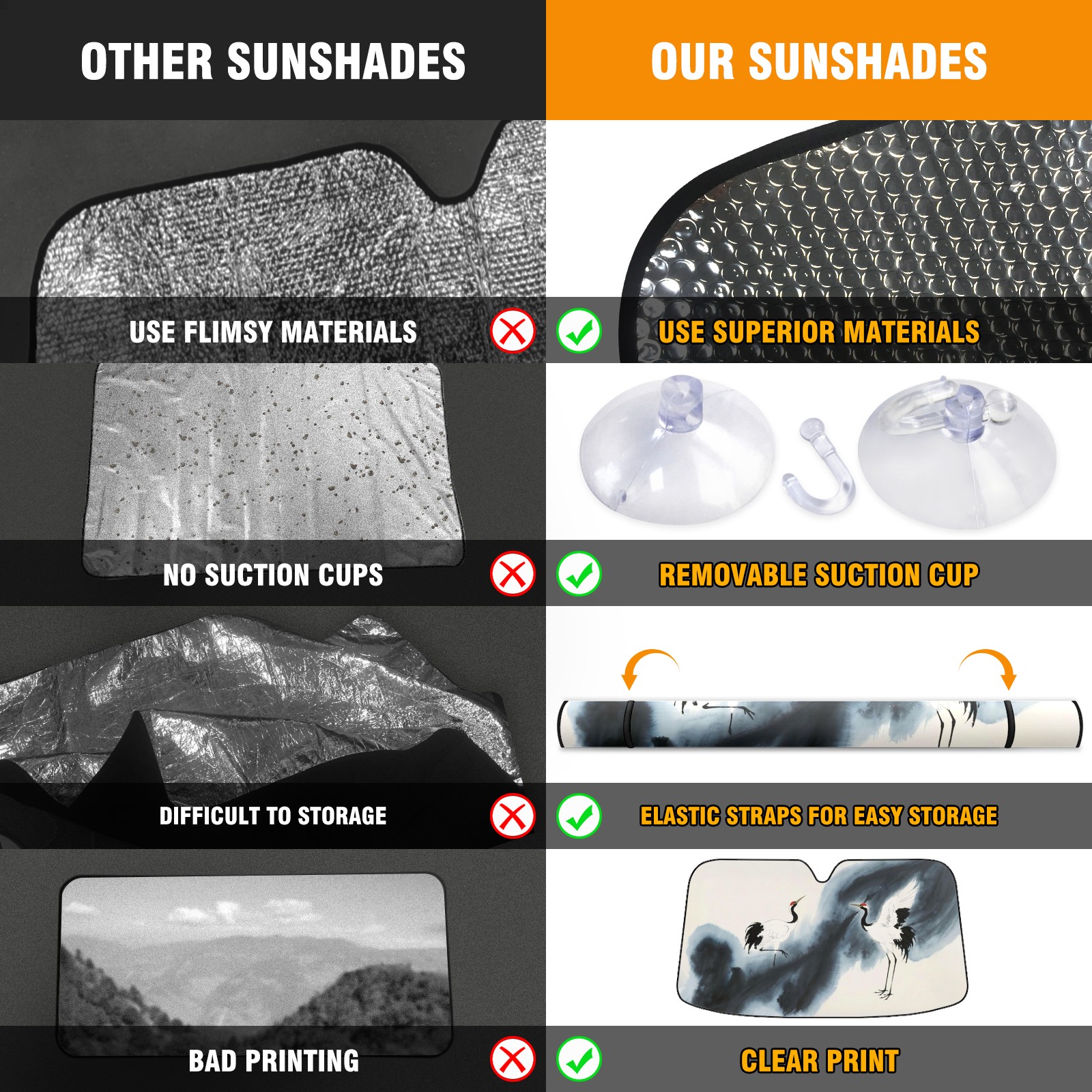 • <p>This car sunshade pad is made of a high-quality combination of aluminum foil and polyester, reinforced with transparent adhesive. It measures 140x76cm (55inx30in) and is a practical choice for protecting your car. Its powerful UV protection function can effectively block harmful light, prevent the car interior from aging due to exposure to sunlight, and maintain the dashboard, steering wheel, and seats in a brand new state.<br></p>