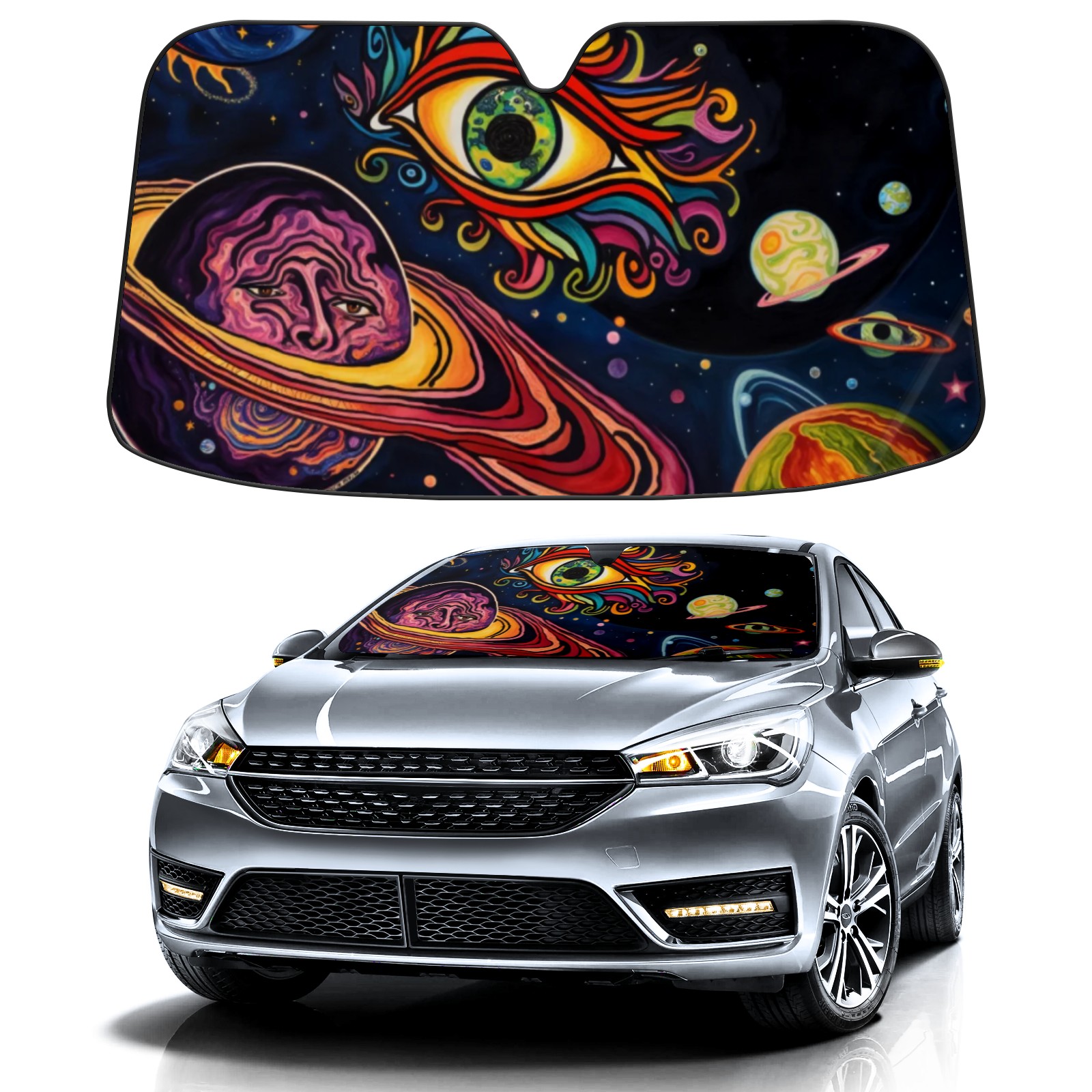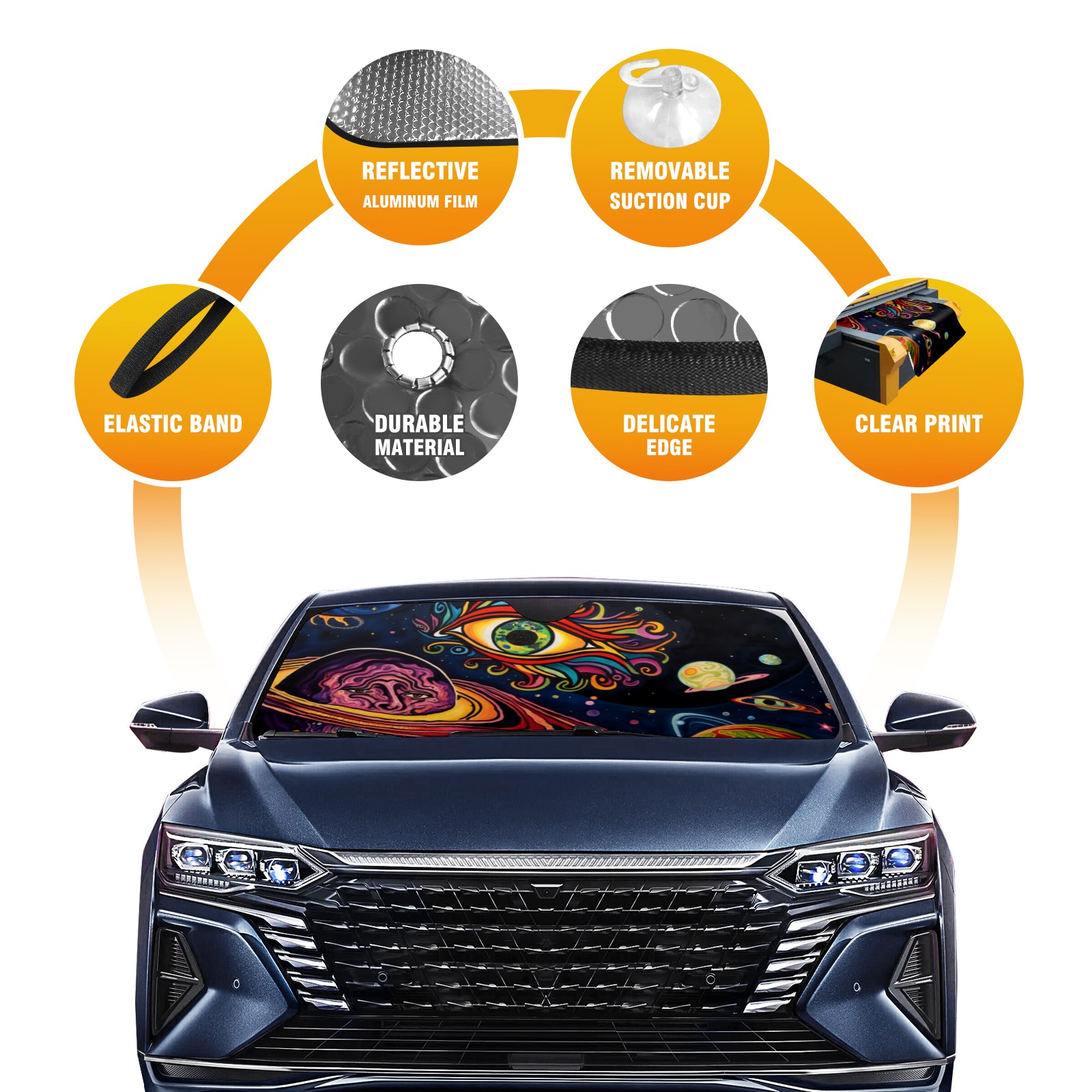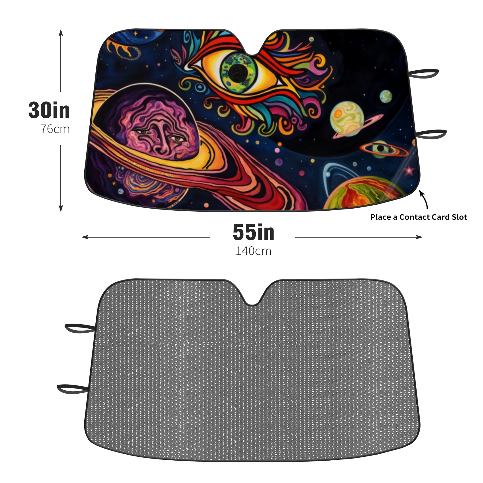 <p>This car sunshade pad is made of a high-quality combination of aluminum foil and polyester, reinforced with transparent adhesive. It measures 140x76cm (55inx30in) and is a practical choice for protecting your car. Its powerful UV protection function can effectively block harmful light, prevent the car interior from aging due to exposure to sunlight, and maintain the dashboard, steering wheel, and seats in a brand new state.<br></p>