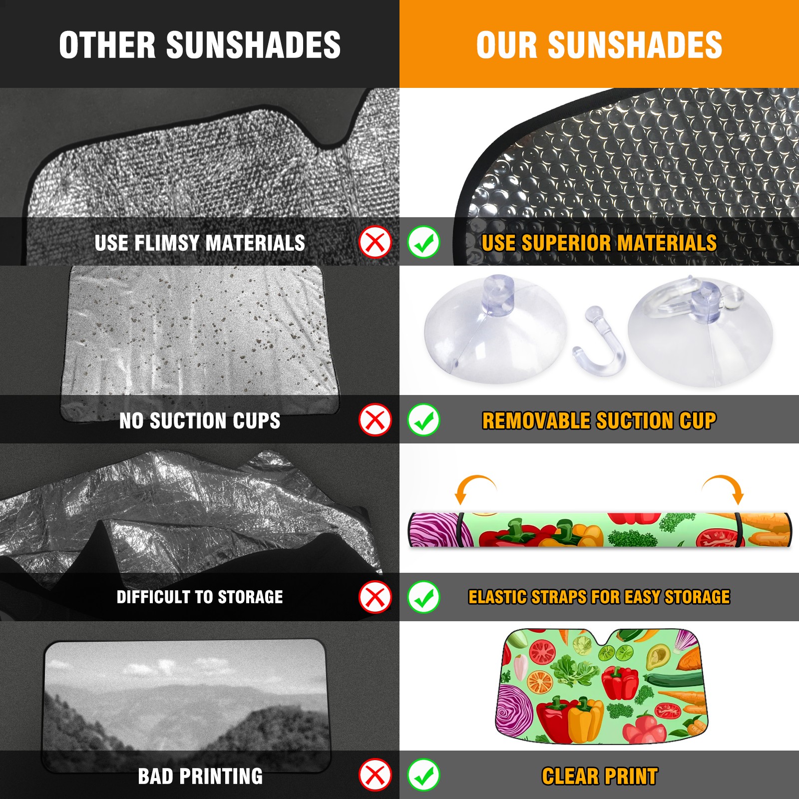 • <p>This car sunshade pad is made of a high-quality combination of aluminum foil and polyester, reinforced with transparent adhesive. It measures 140x76cm (55inx30in) and is a practical choice for protecting your car. Its powerful UV protection function can effectively block harmful light, prevent the car interior from aging due to exposure to sunlight, and maintain the dashboard, steering wheel, and seats in a brand new state.<br></p>