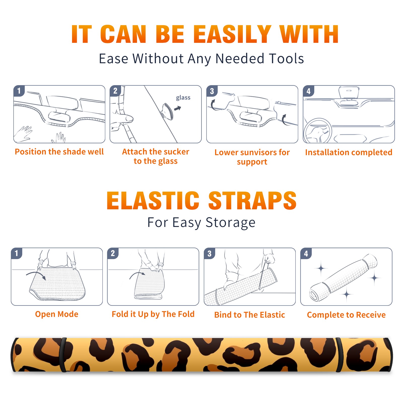 Aluminum Foil Polyester Car Sunshade Pad, Efficient Heat Insulation And Sun Protection ArtifactLeopard Print