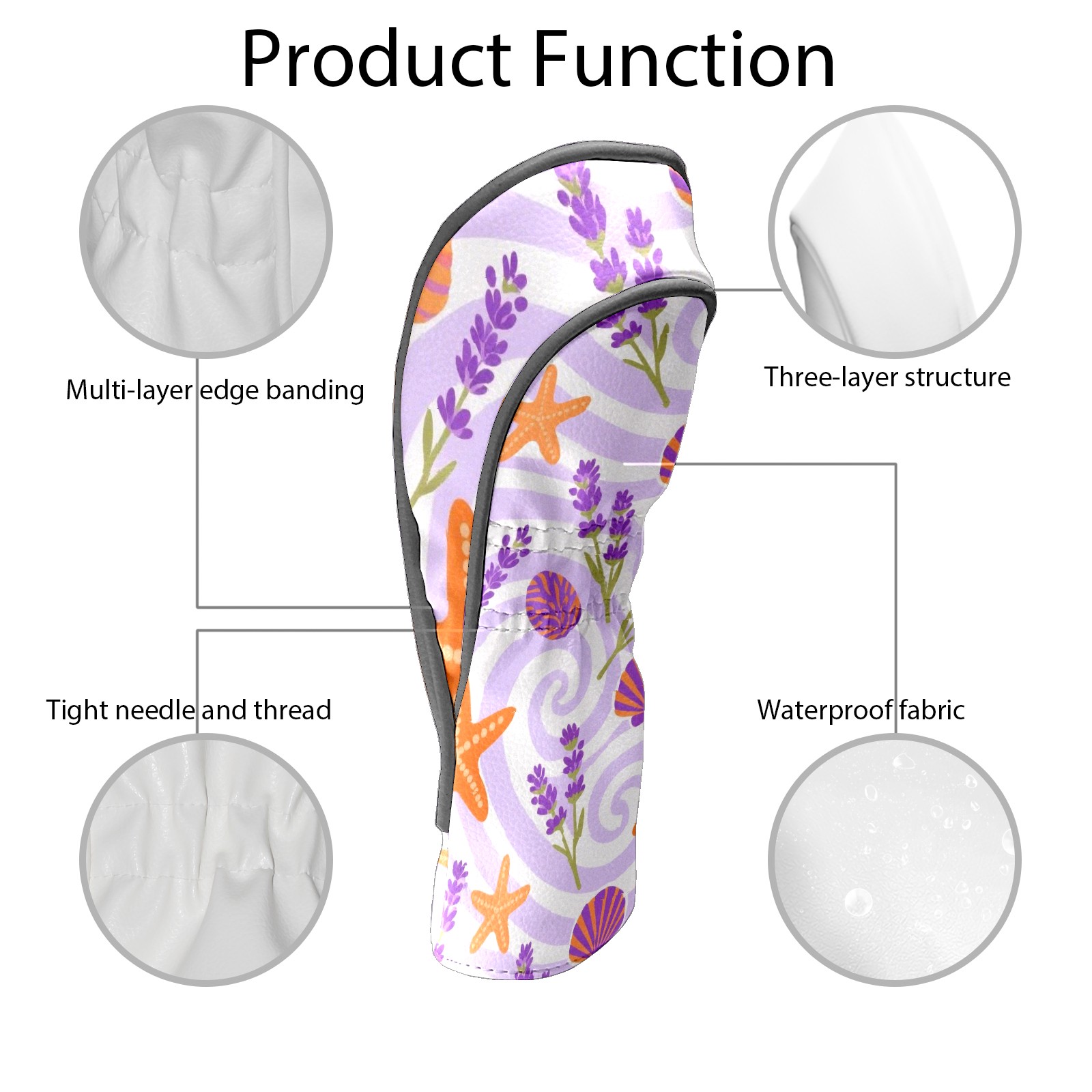 Black Golf Club Head Cover Golf Accessories Head Covers Set For Driver & Fairway Woods Purple