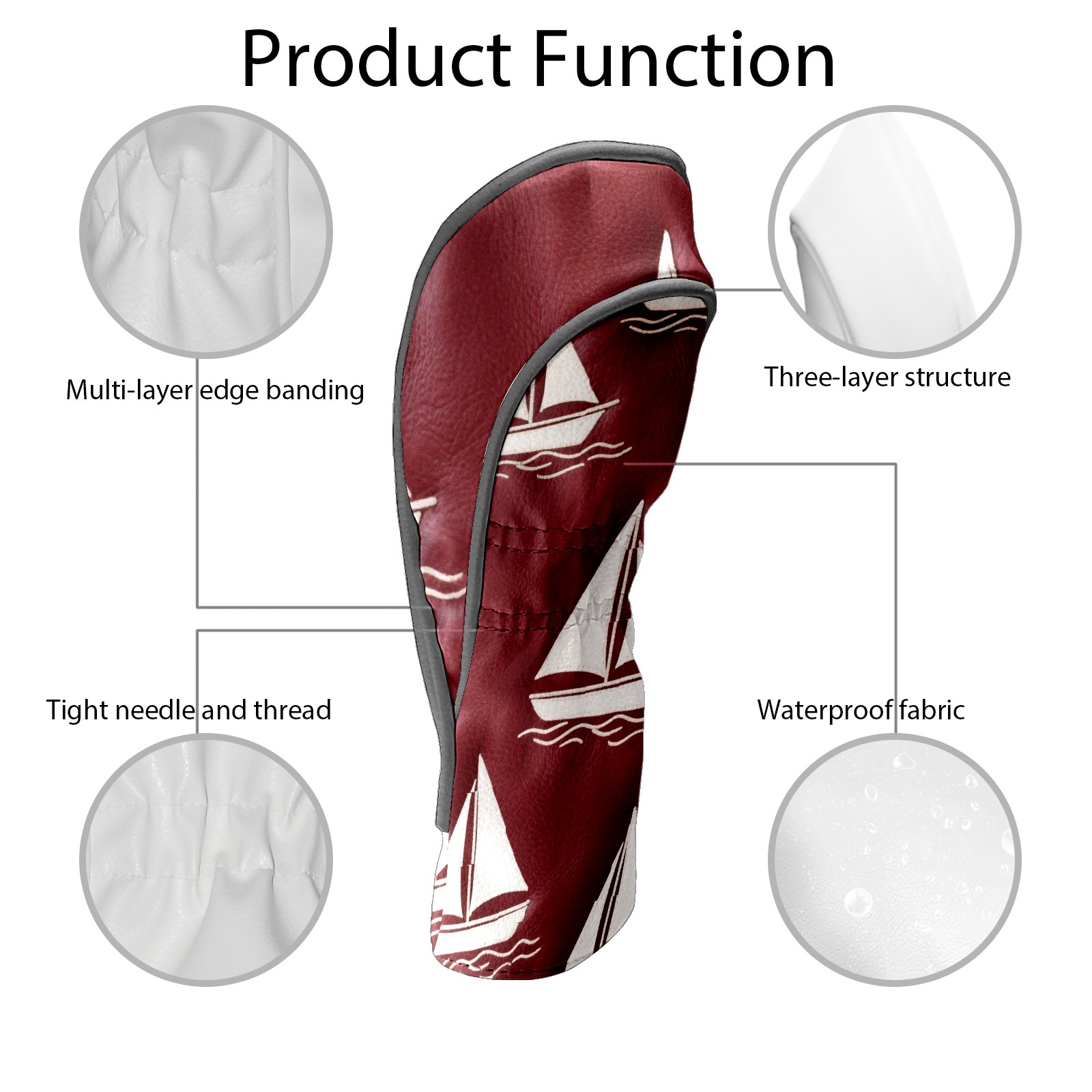 Black Golf Club Head Cover Golf Accessories Head Covers Set For Driver & Fairway Woods Sailboat