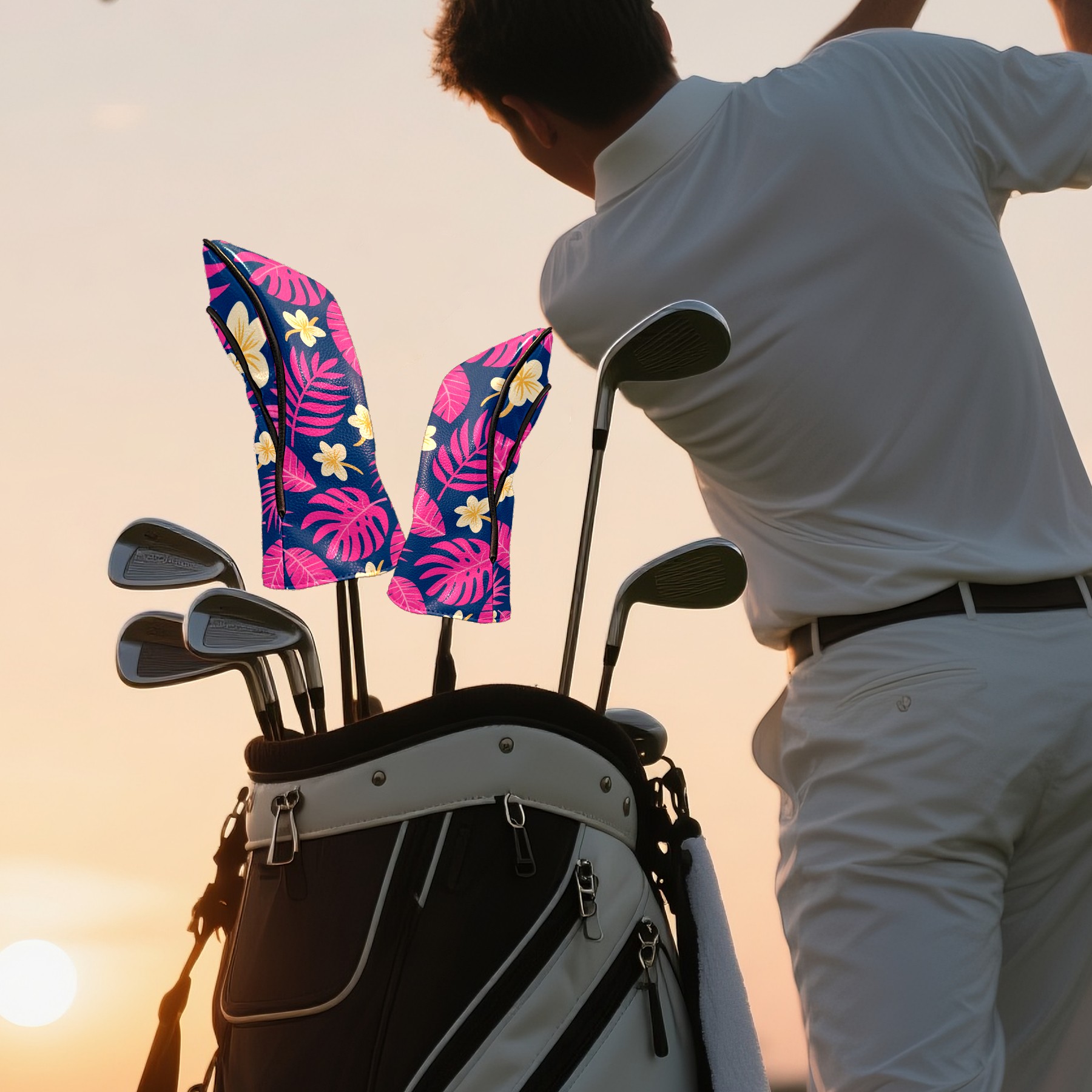 Black Golf Club Head Cover Golf Accessories Head Covers Set For Driver & Fairway Woods Leaf