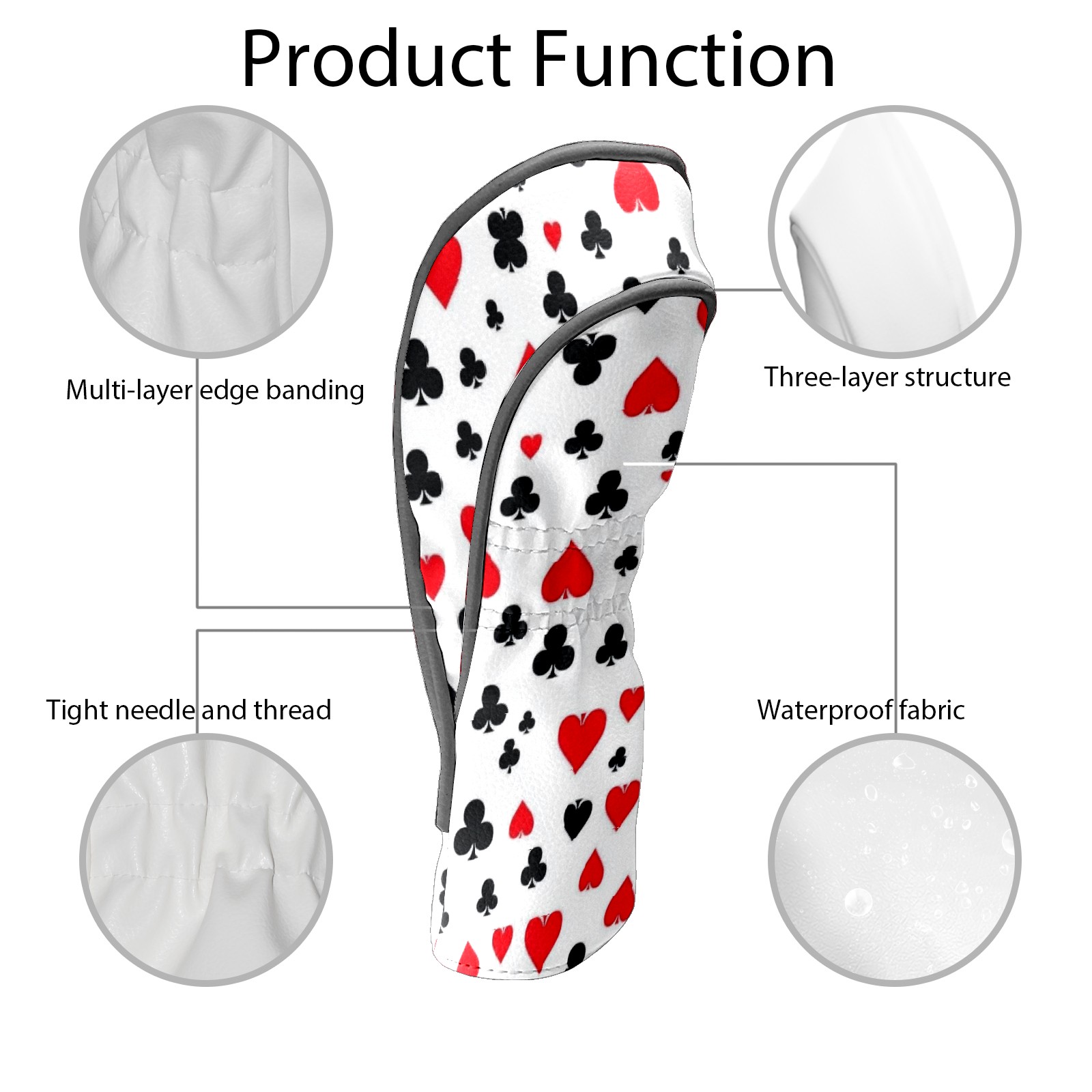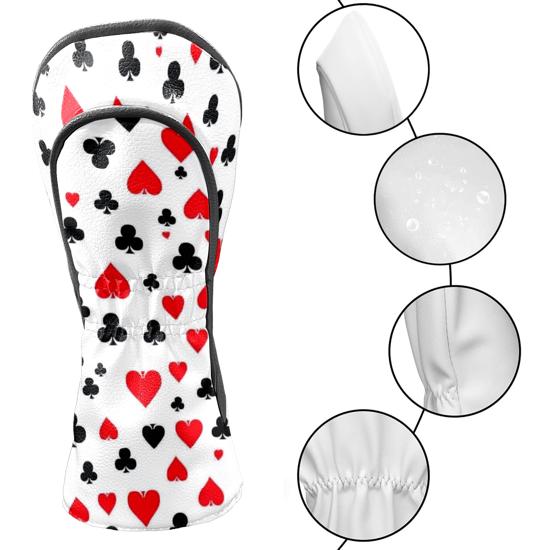 Black Golf Club Head Cover Golf Accessories Head Covers Set For Driver & Fairway Woods Scattered Playing Cards