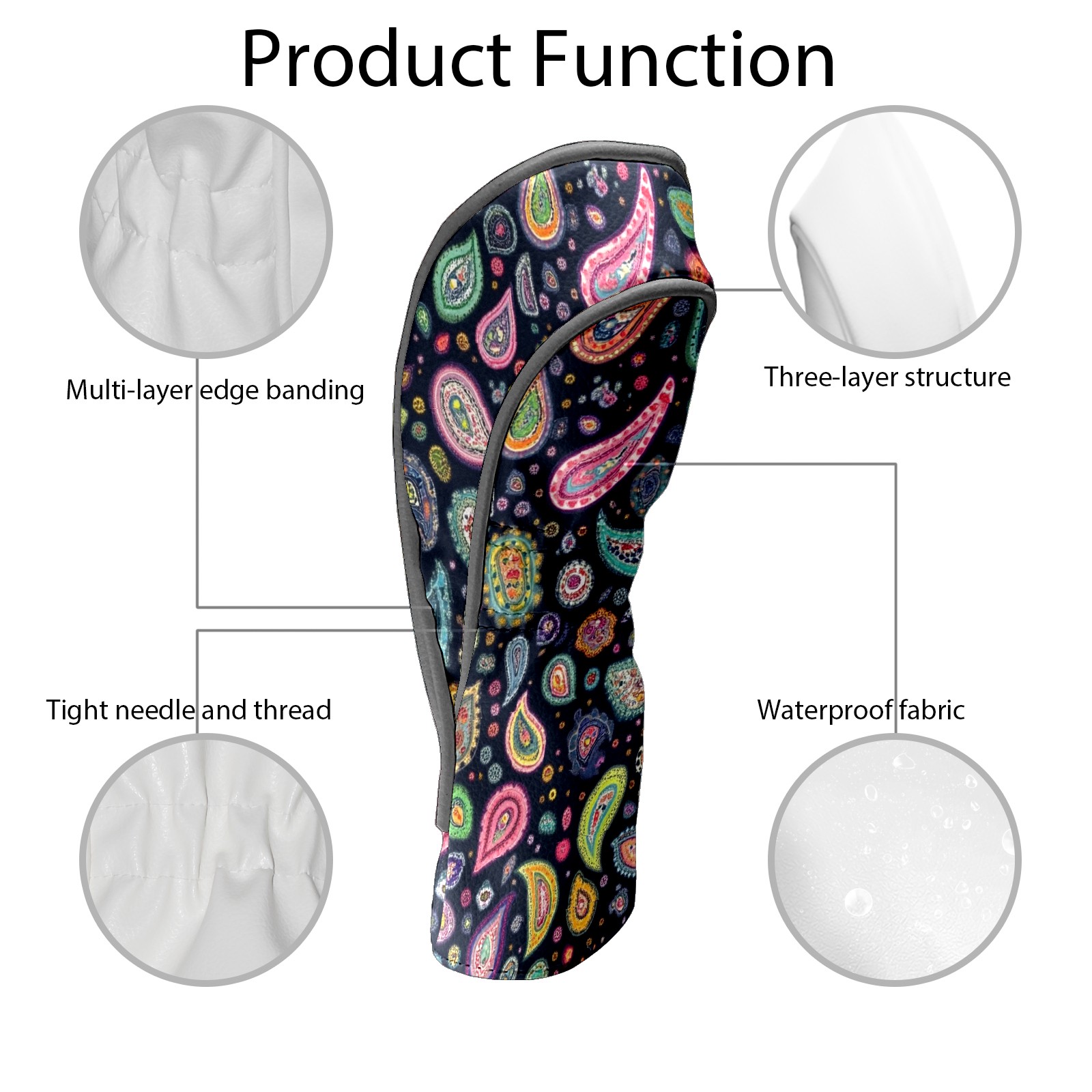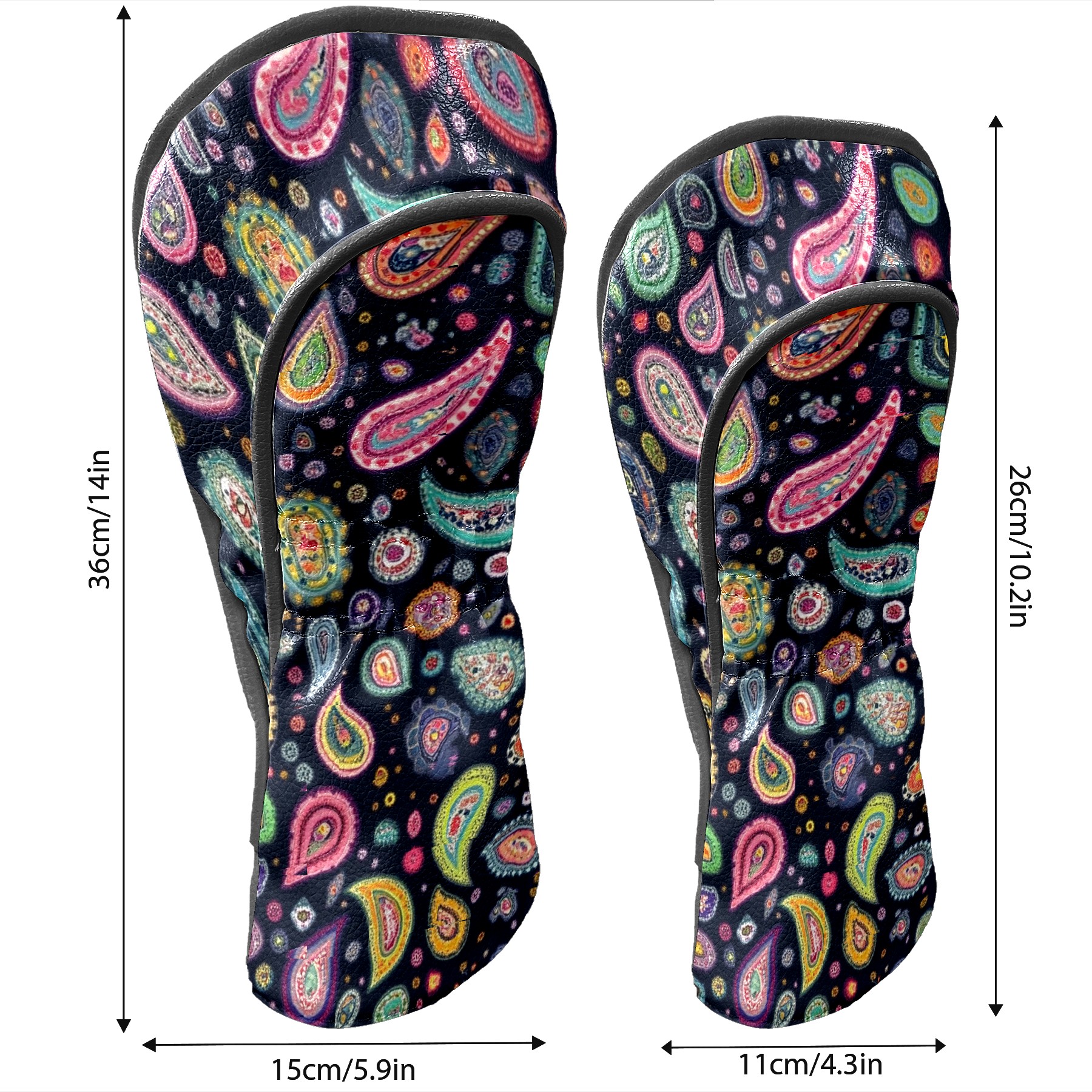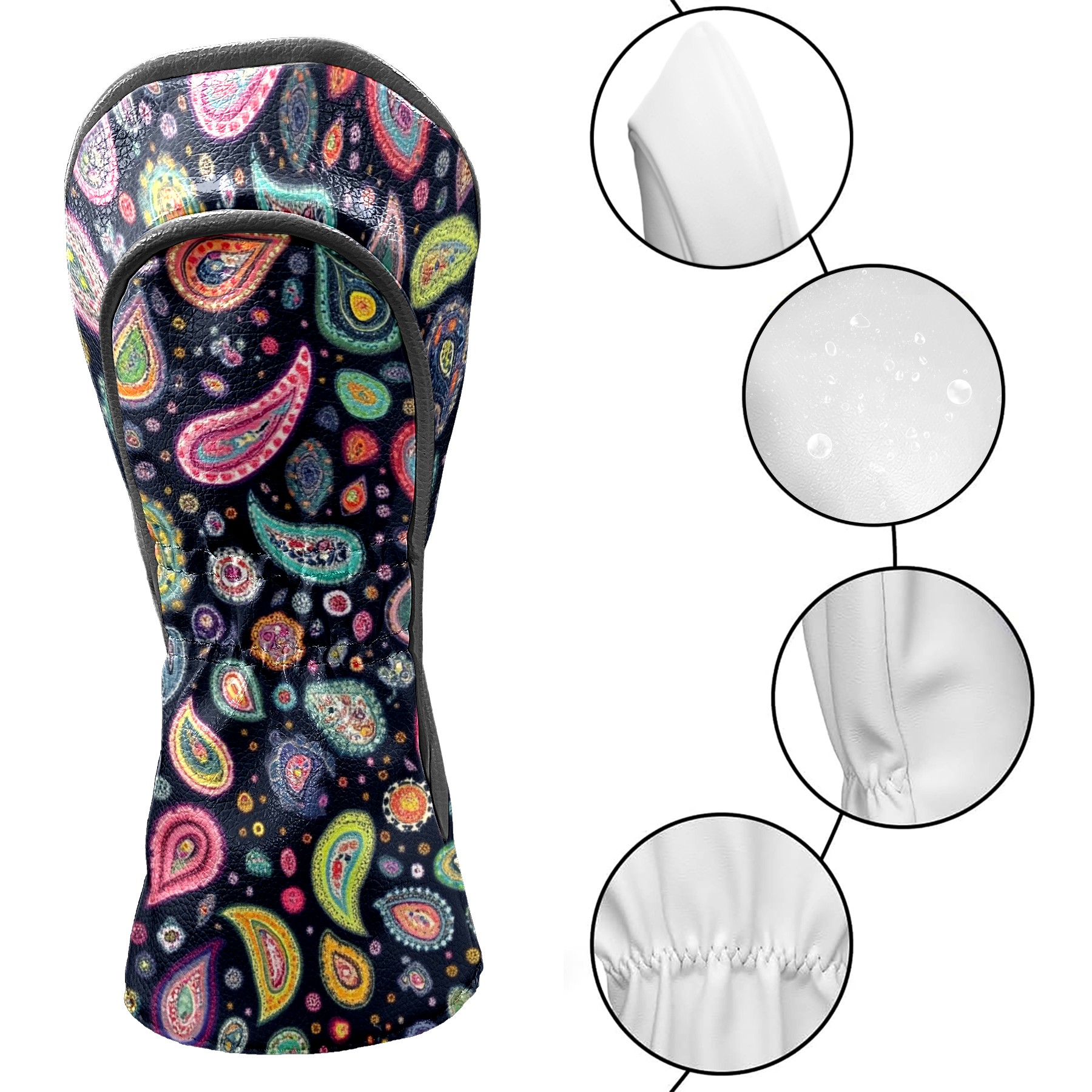 Black Golf Club Head Cover Golf Accessories Head Covers Set For Driver & Fairway Woods Colorful Paisley Designs