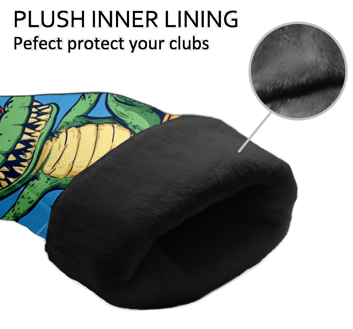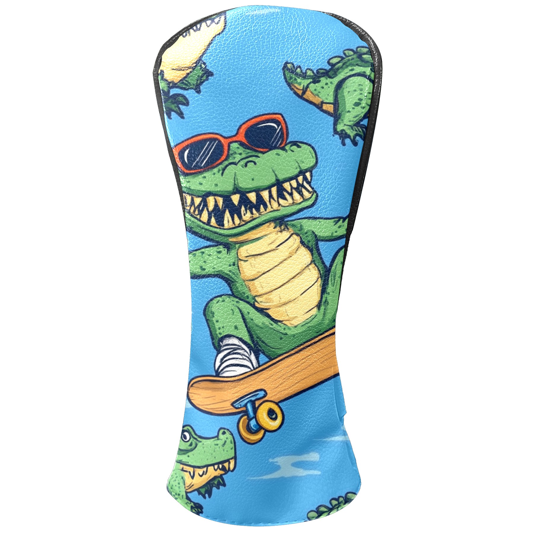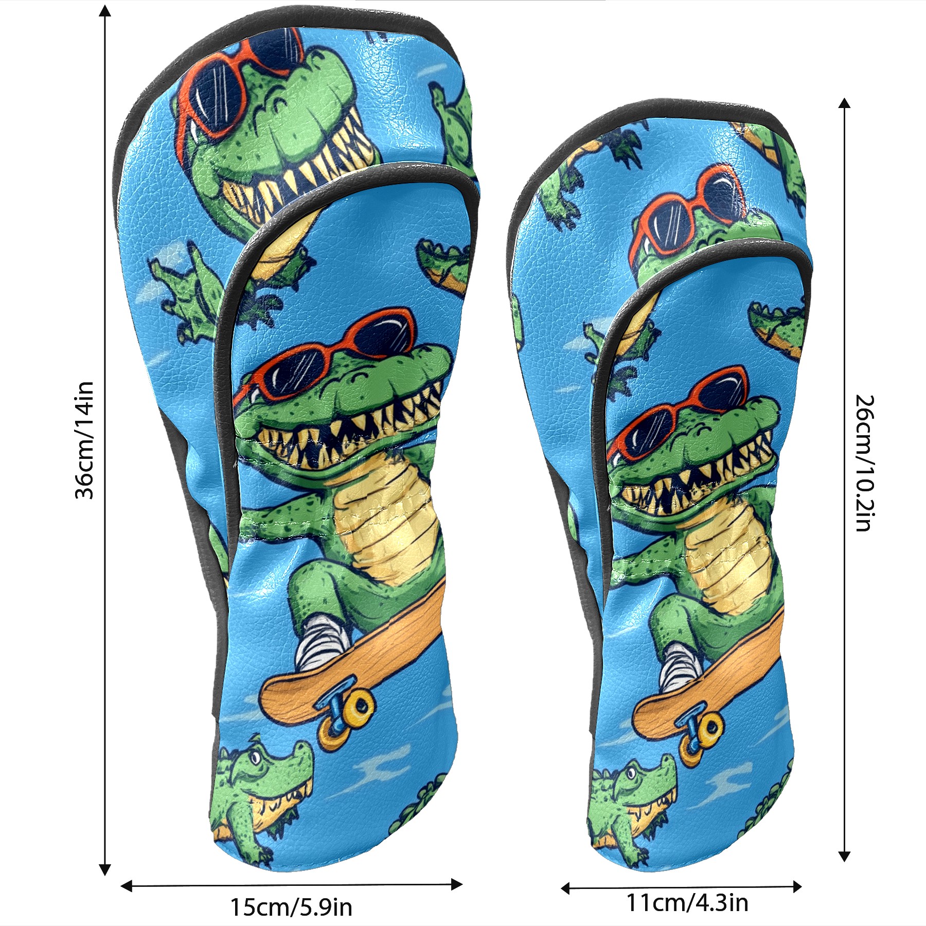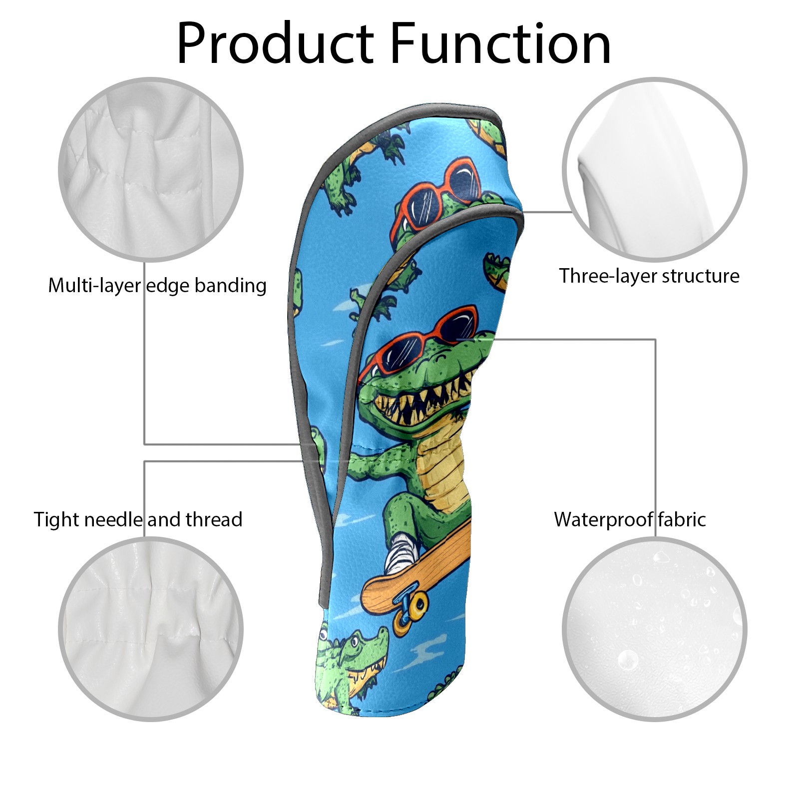 Black Golf Club Head Cover Golf Accessories Head Covers Set For Driver & Fairway Woods Alligator Wearing Sunglasses And Riding