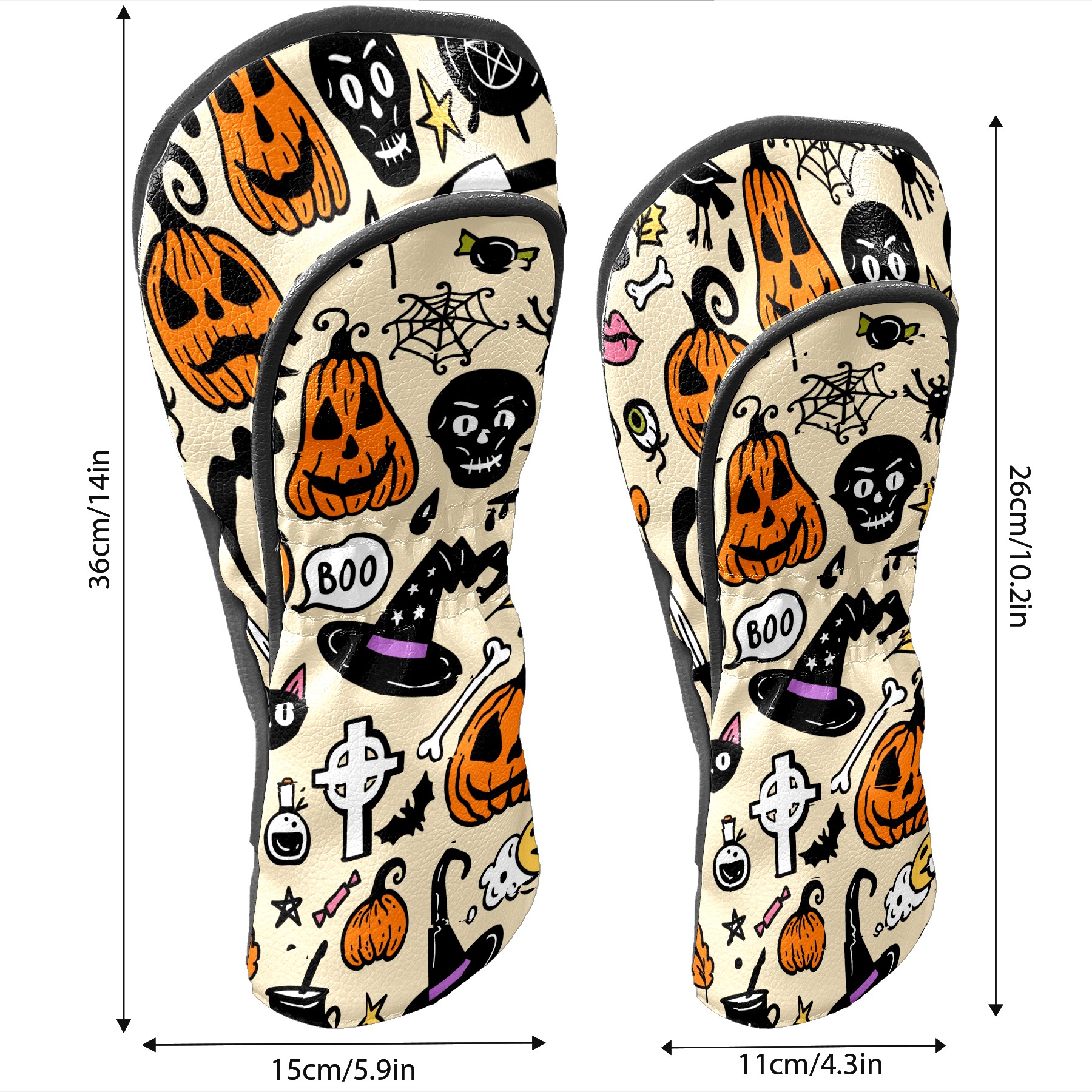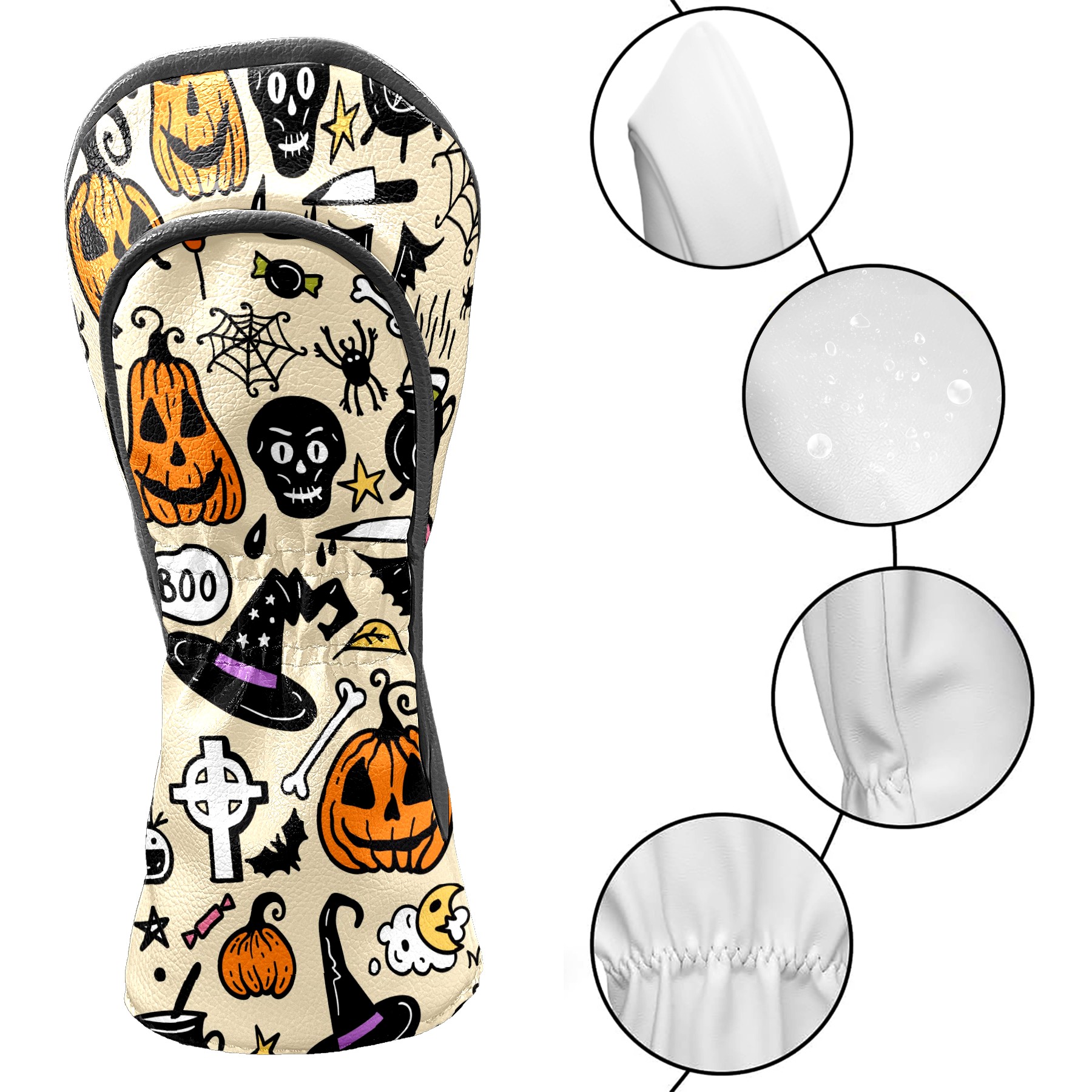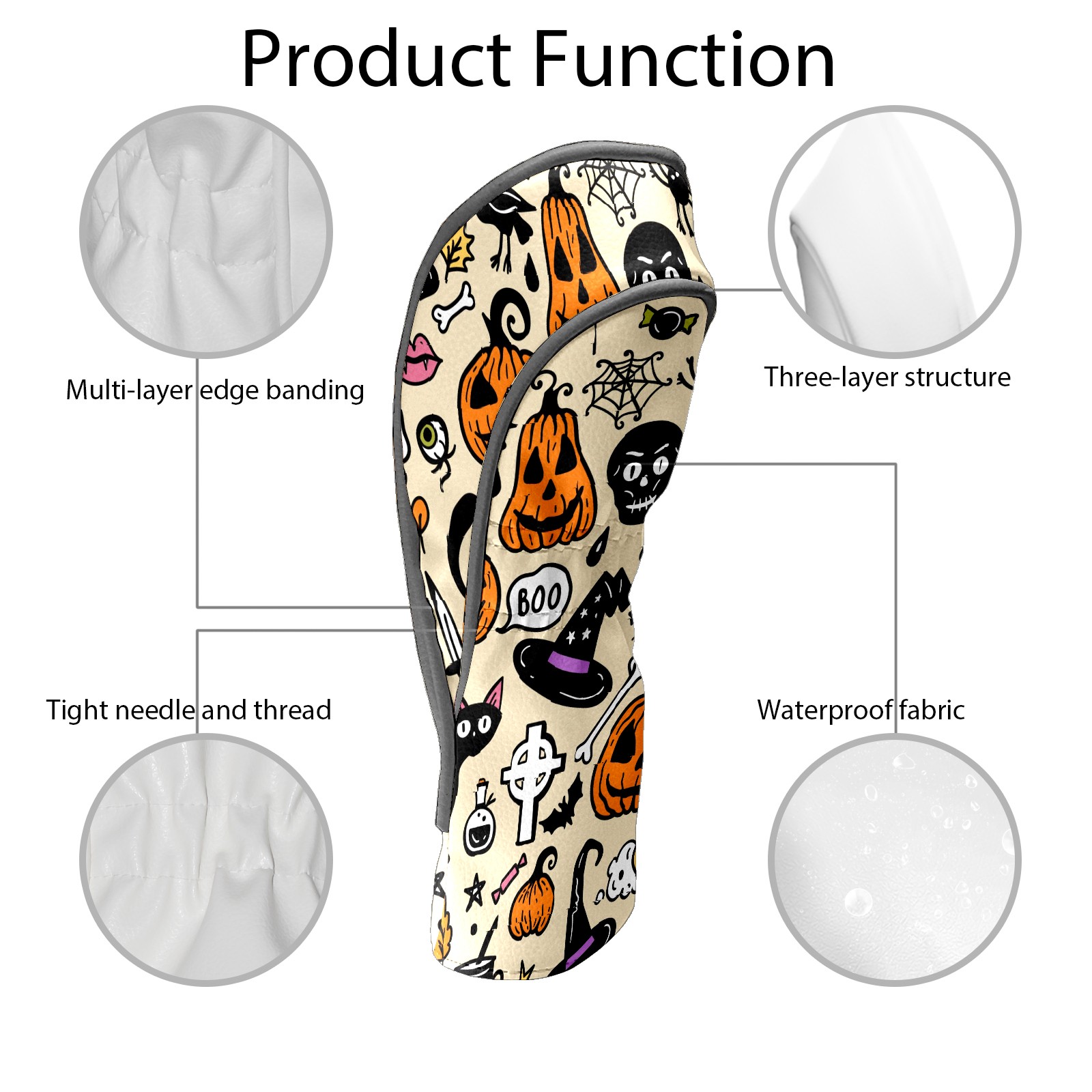 Black Golf Club Head Cover Golf Accessories Head Covers Set For Driver & Fairway Woods Halloween Pumpkin