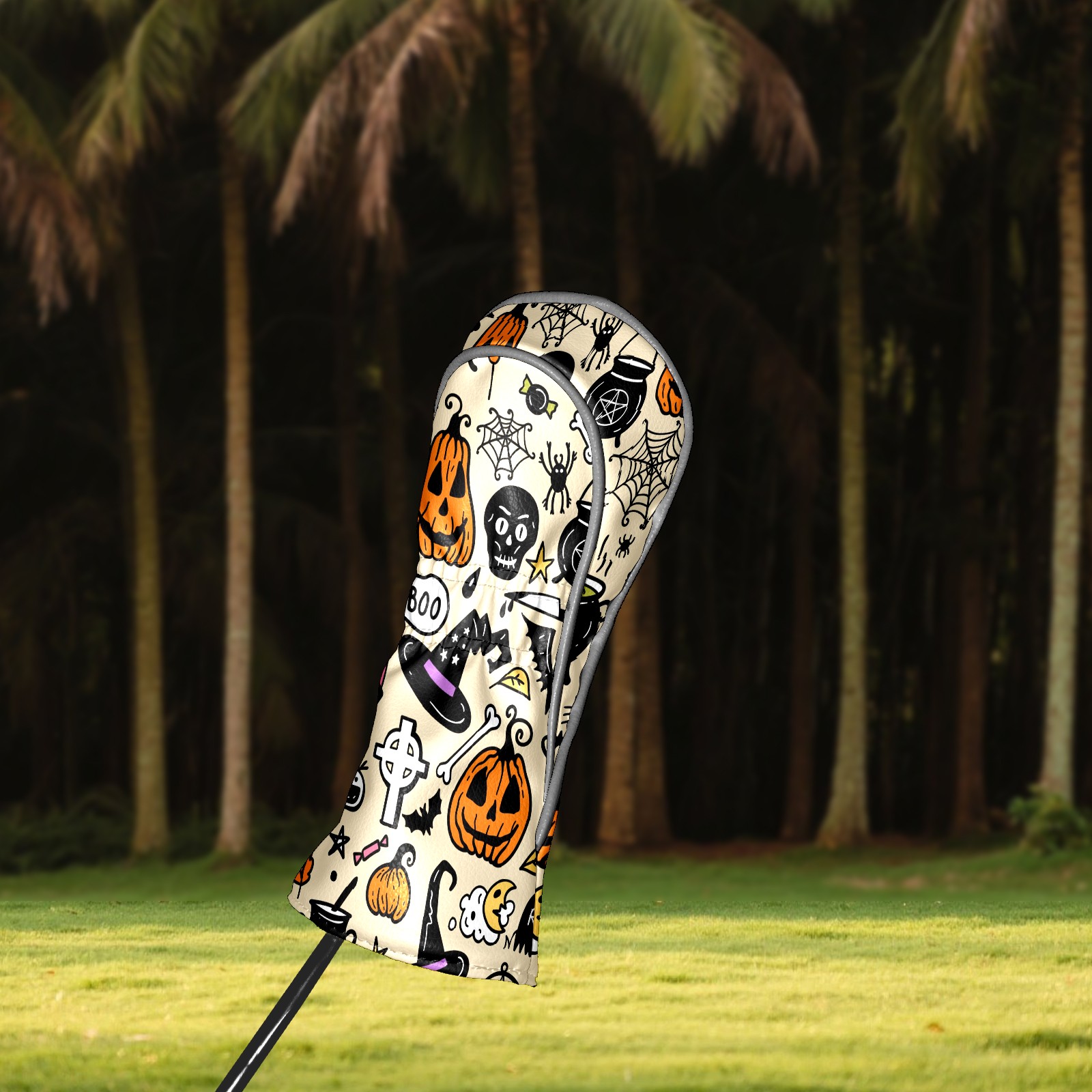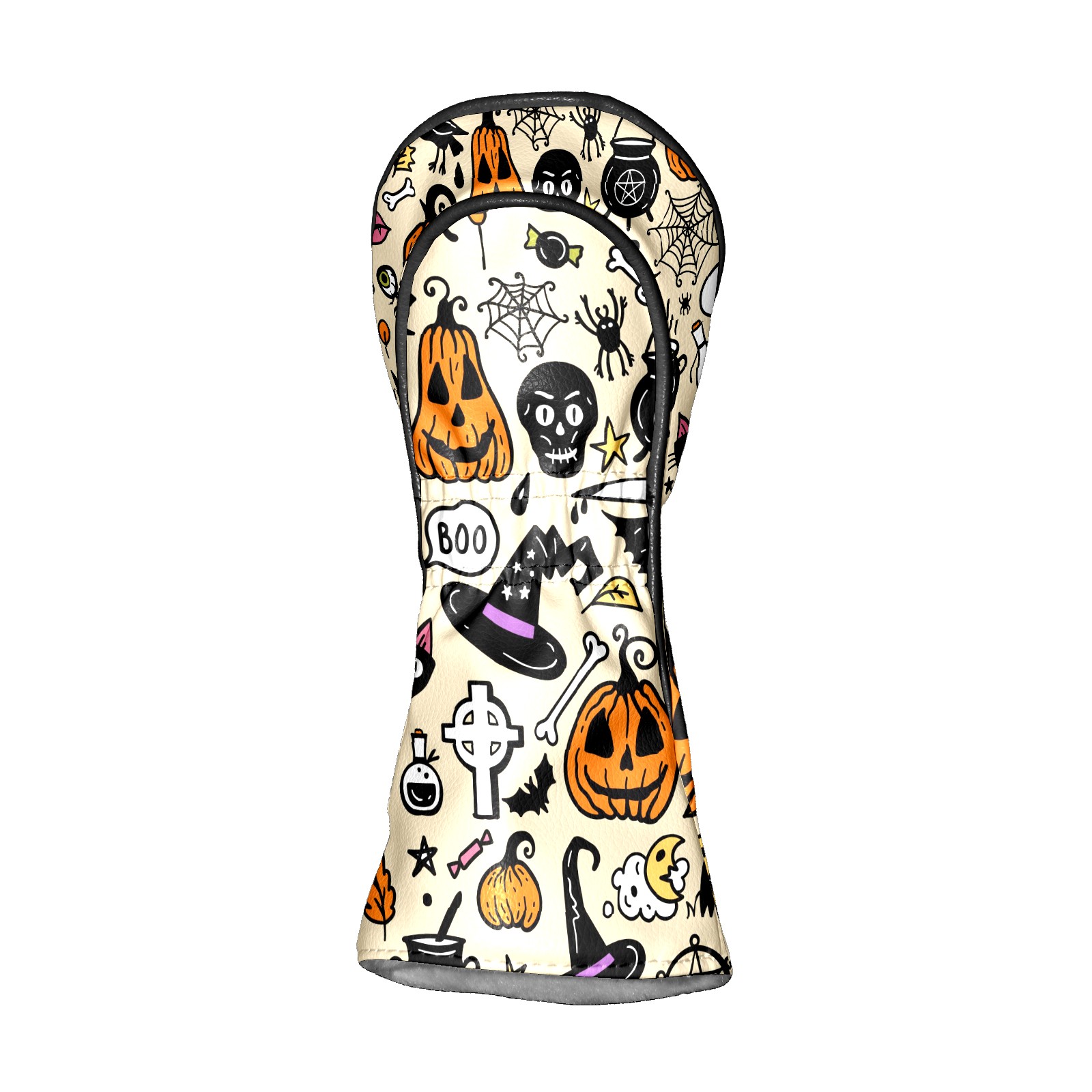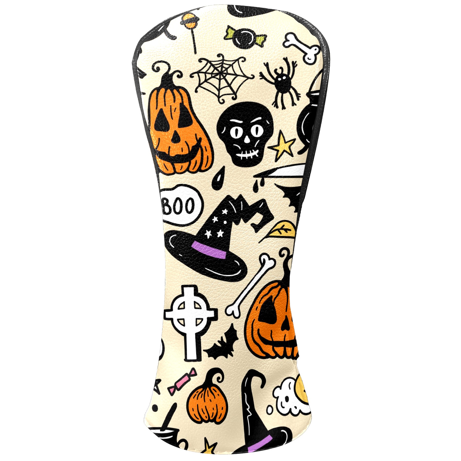 Black Golf Club Head Cover Golf Accessories Head Covers Set For Driver & Fairway Woods Halloween Pumpkin