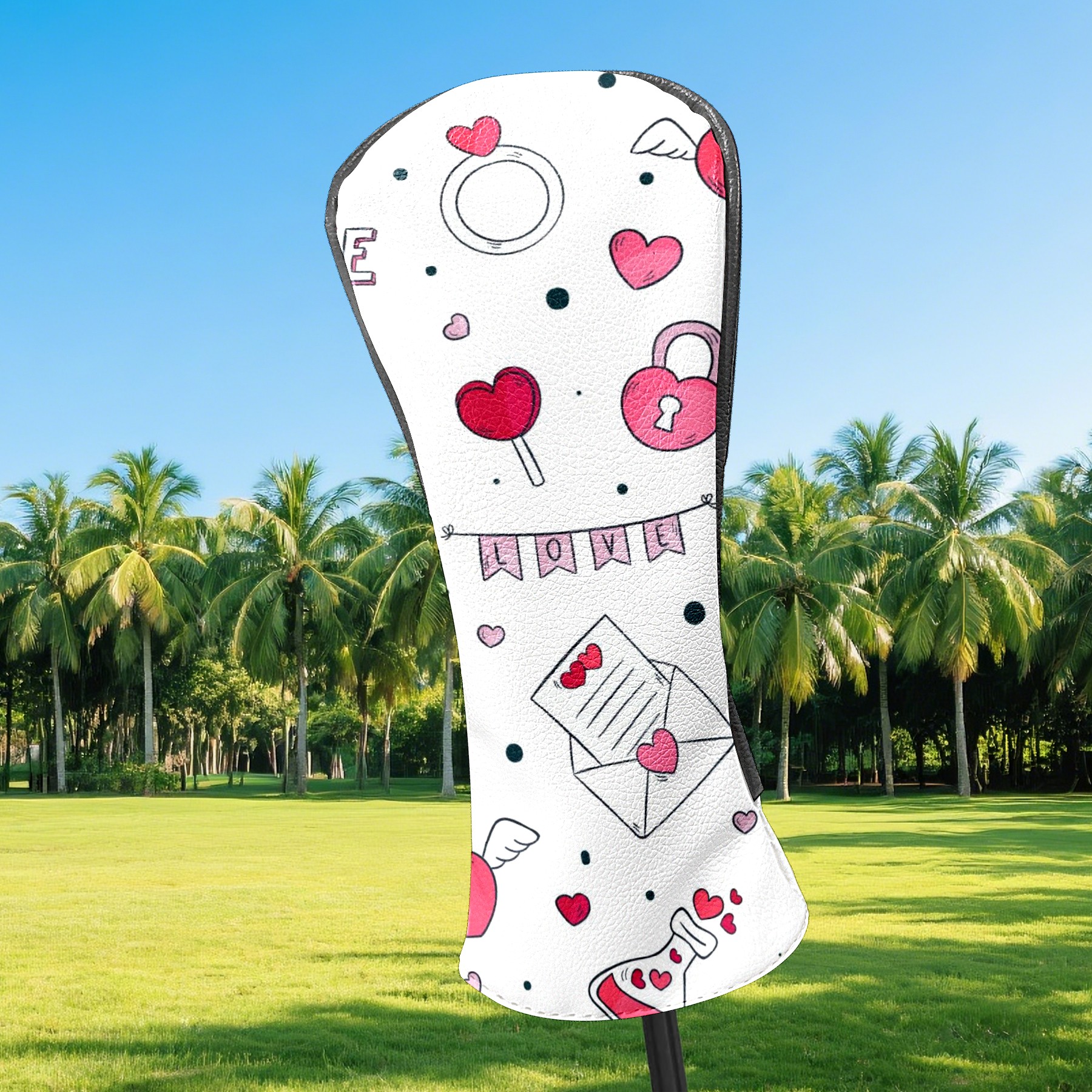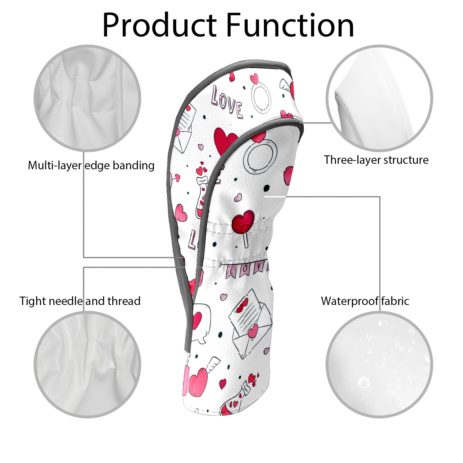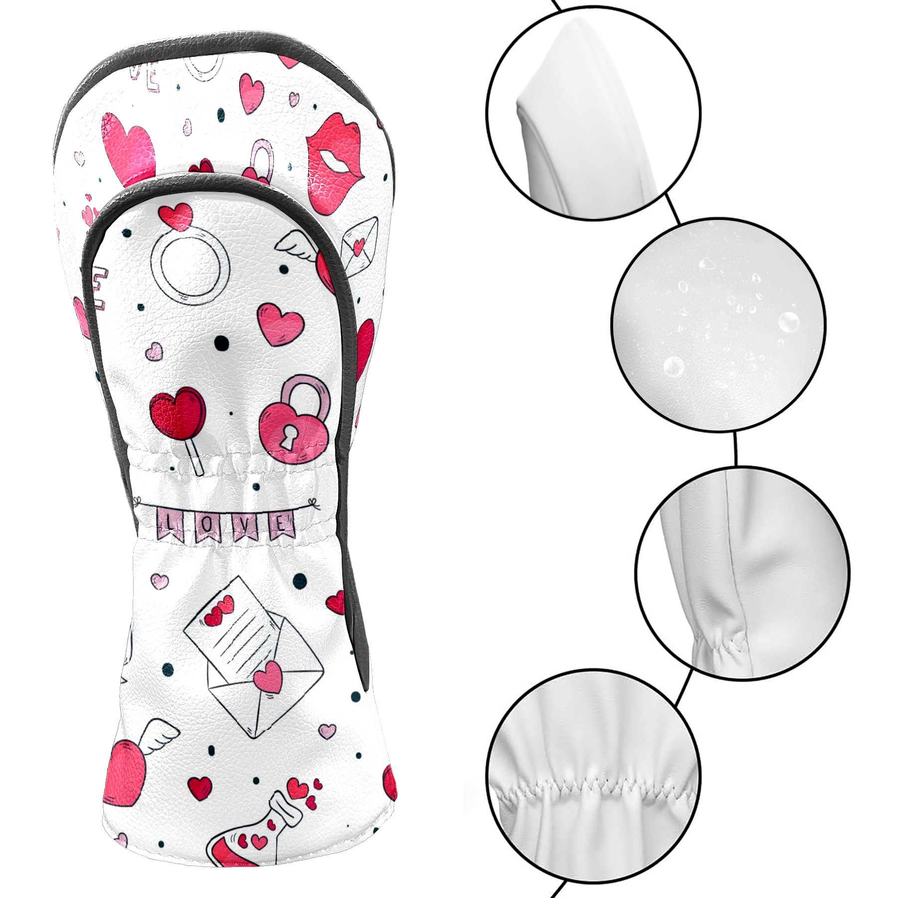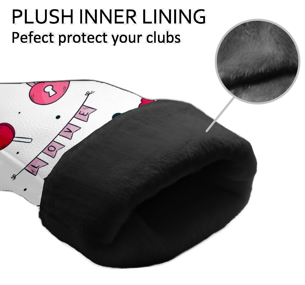 Black Golf Club Head Cover Golf Accessories Head Covers Set For Driver & Fairway Woods Hand Drawn Valentine Day Background