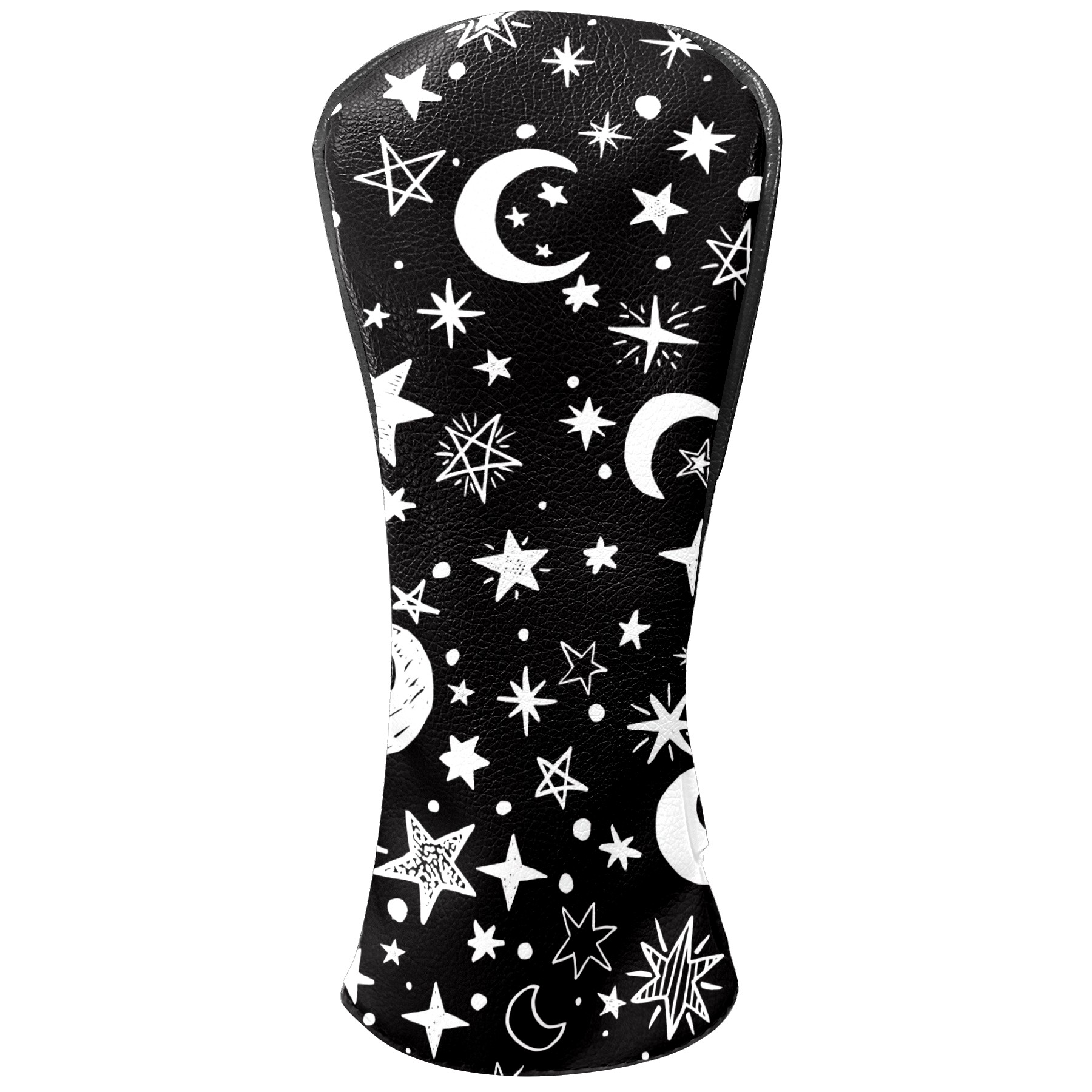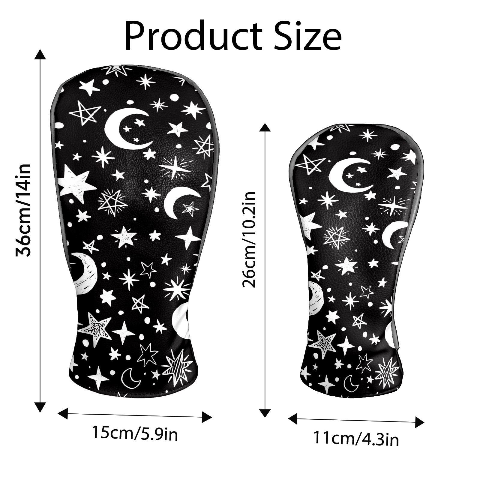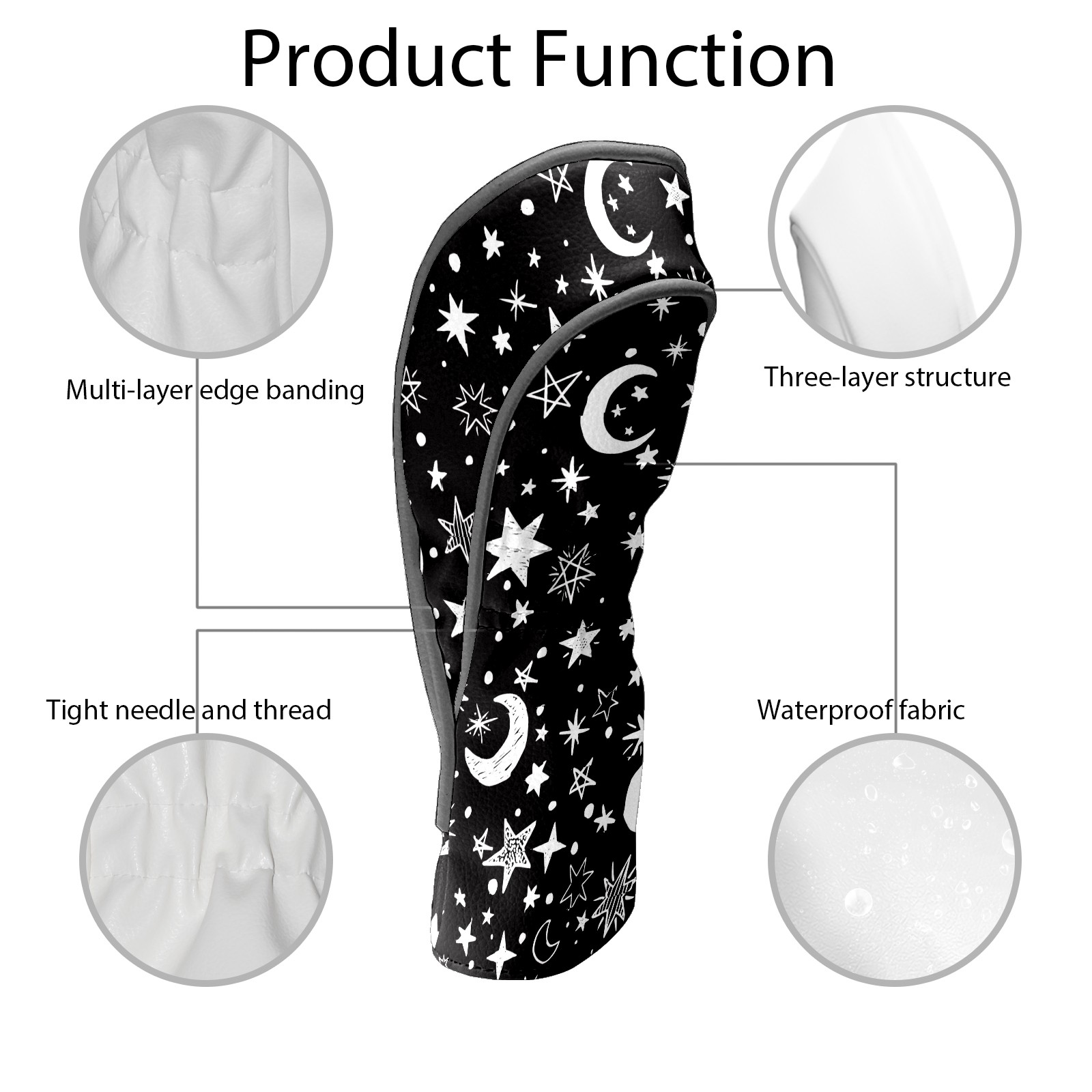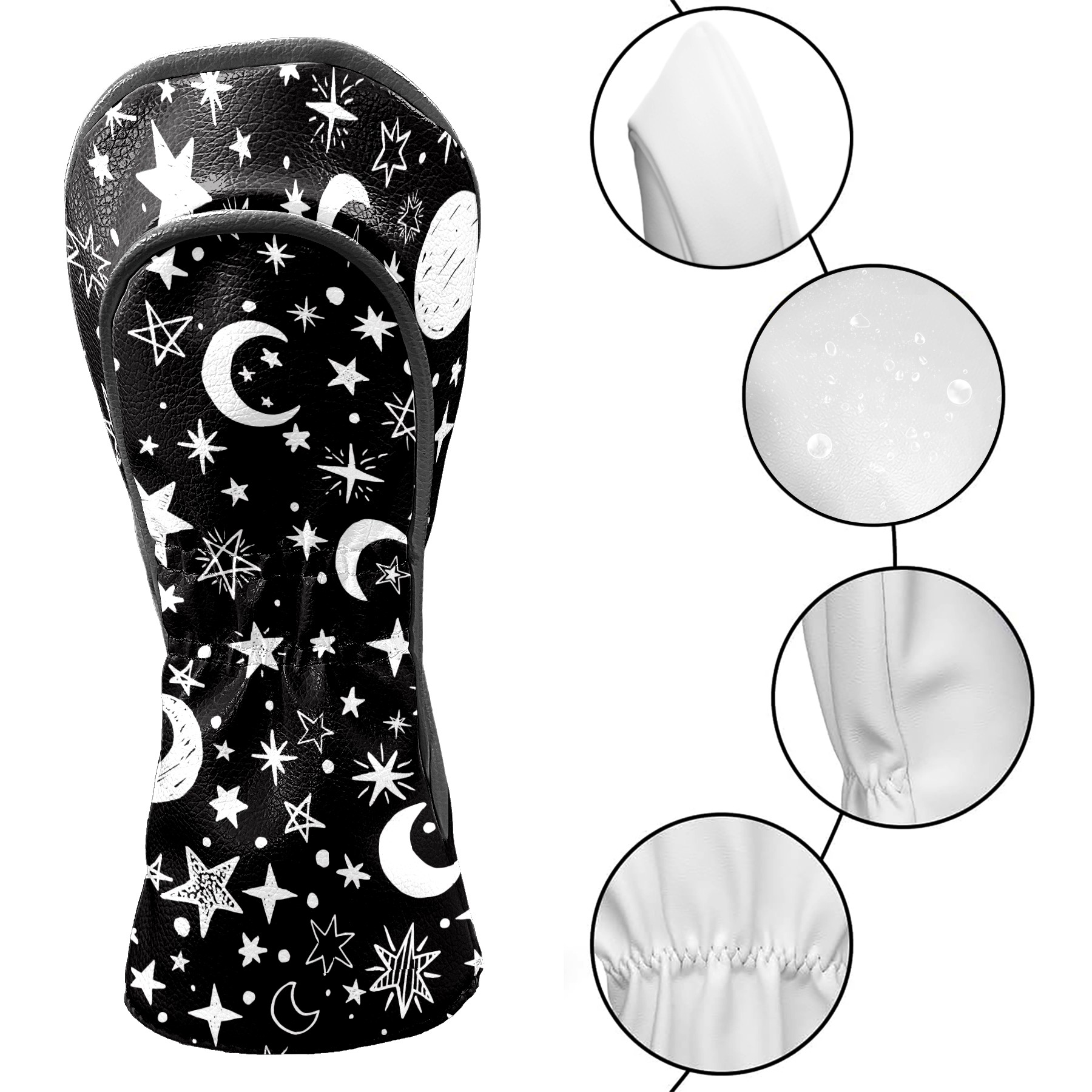 Black Golf Club Head Cover Golf Accessories Head Covers Set For Driver & Fairway Woods Moons Stars Black White Background Doodle