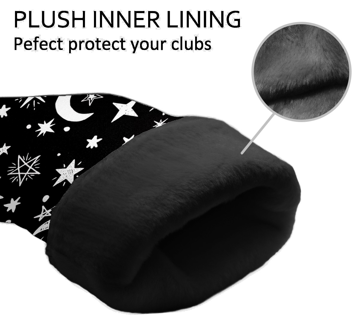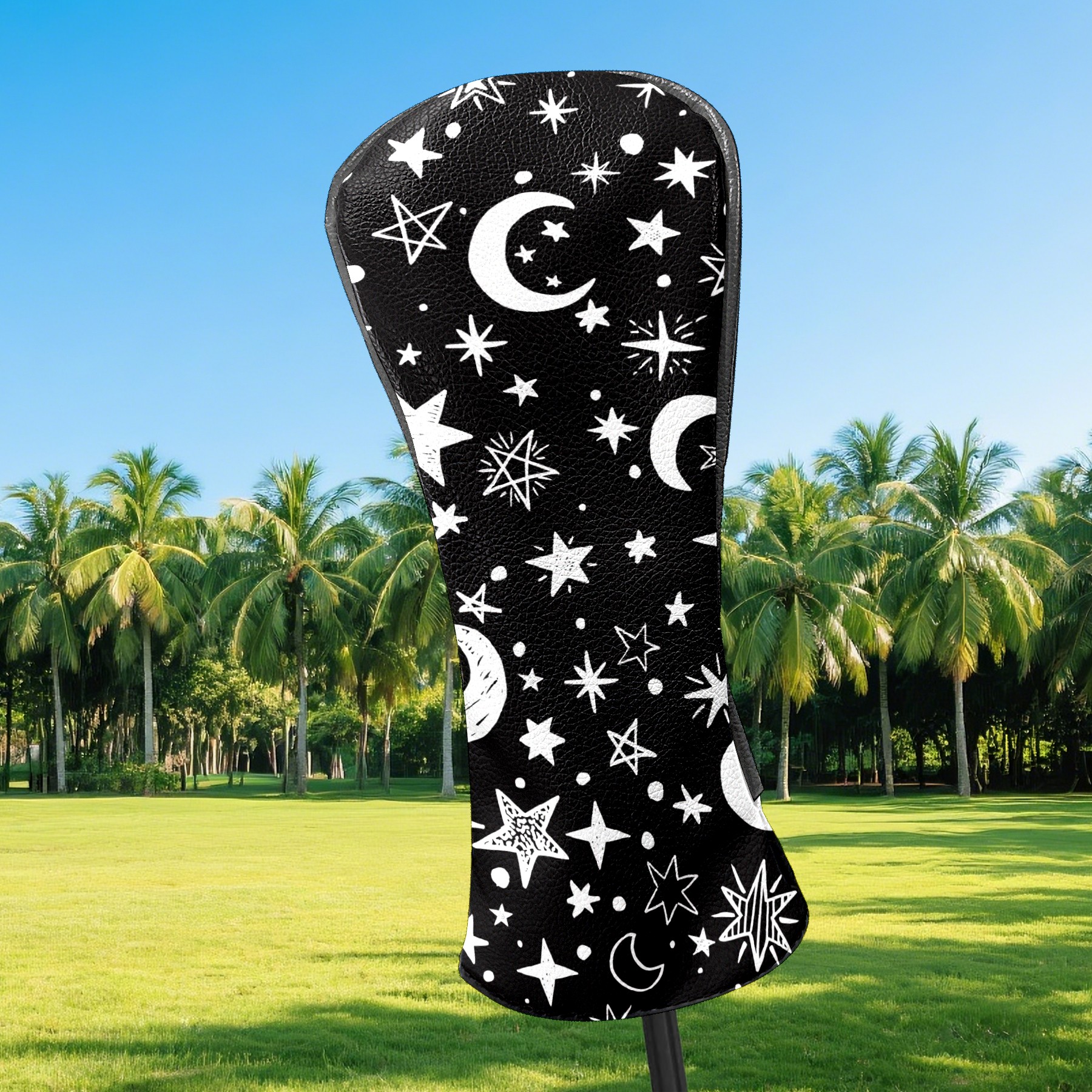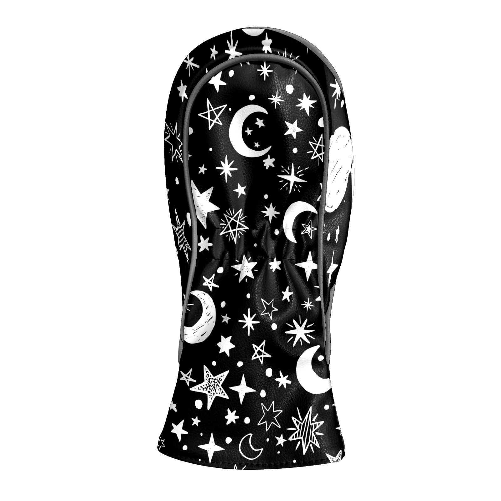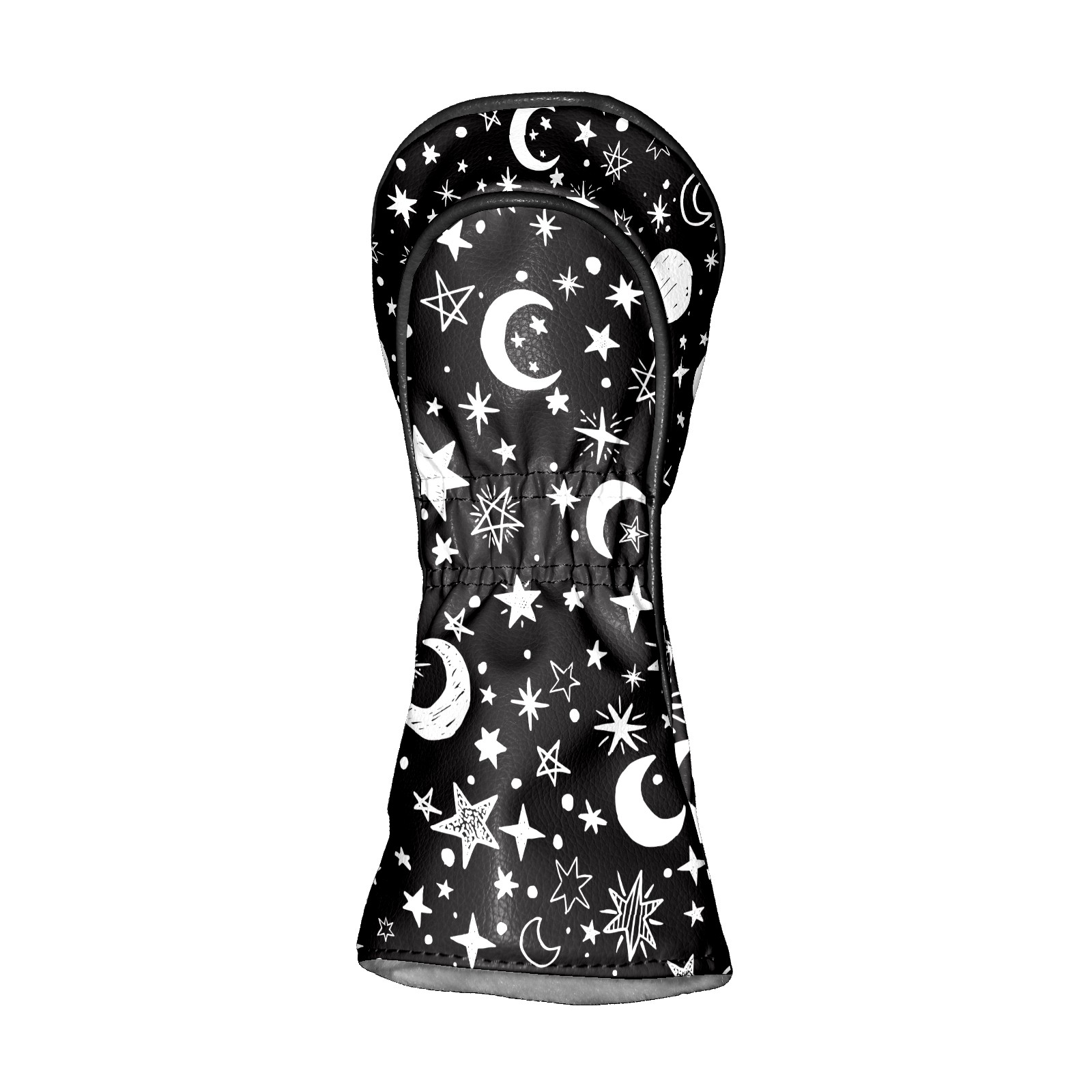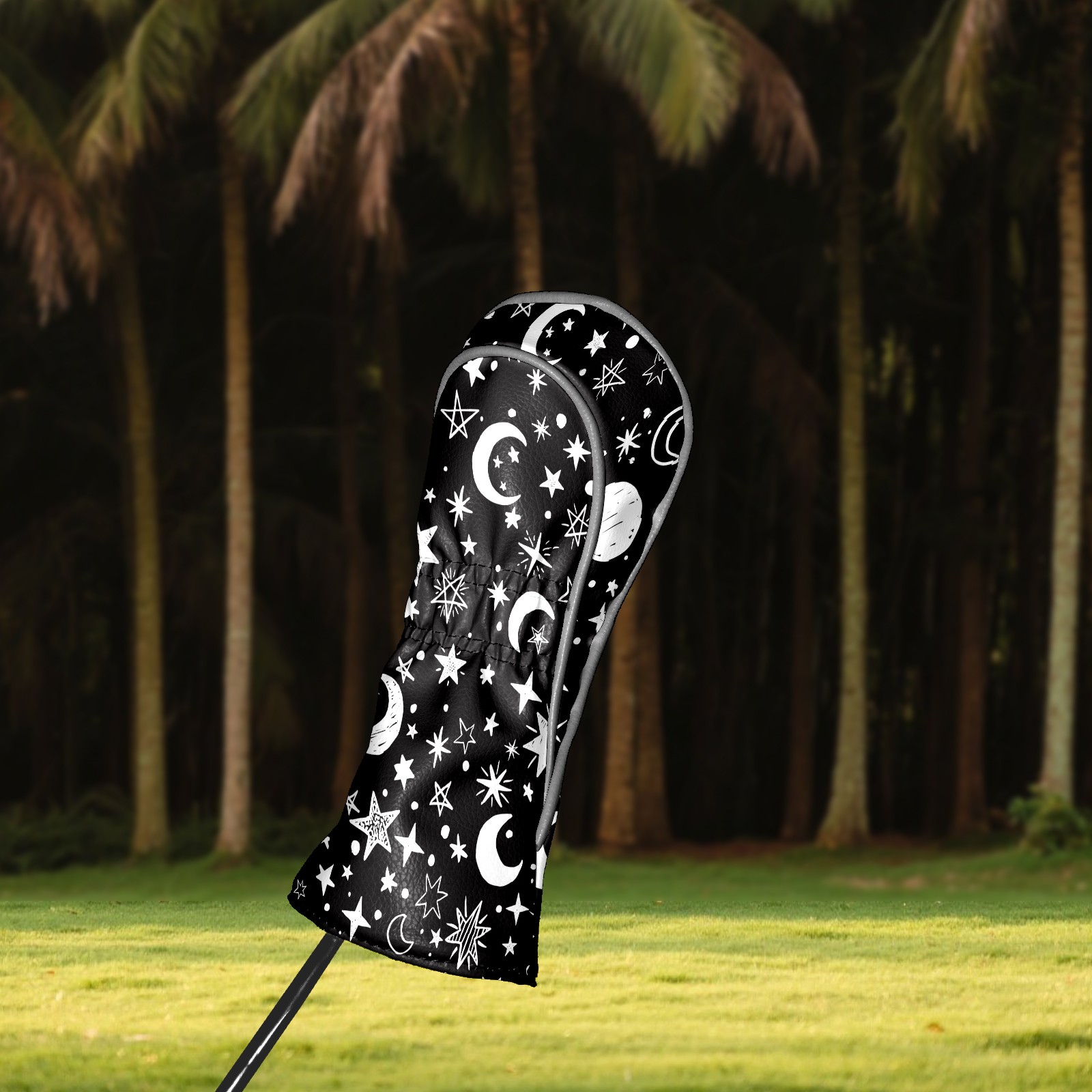 Black Golf Club Head Cover Golf Accessories Head Covers Set For Driver & Fairway Woods Moons Stars Black White Background Doodle
