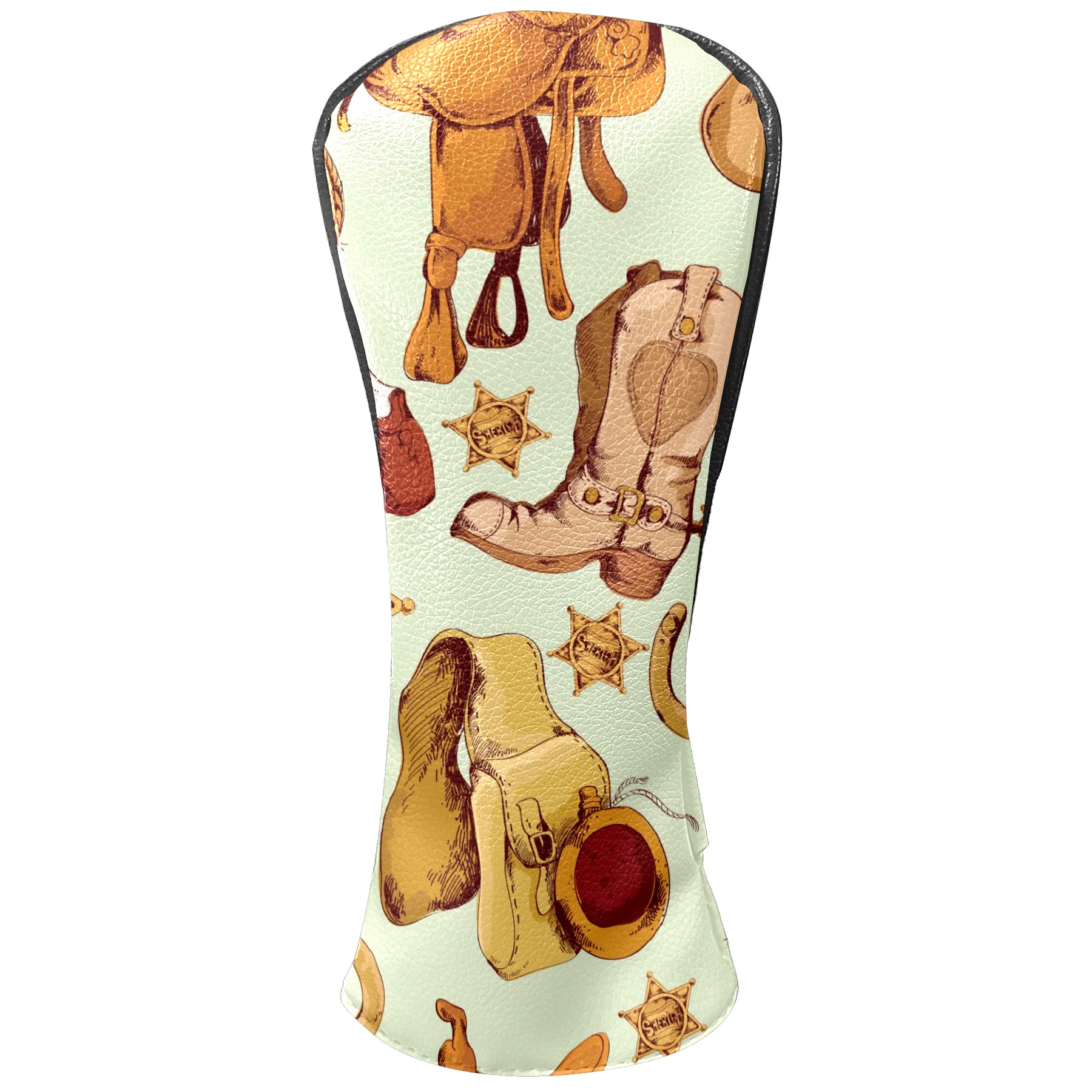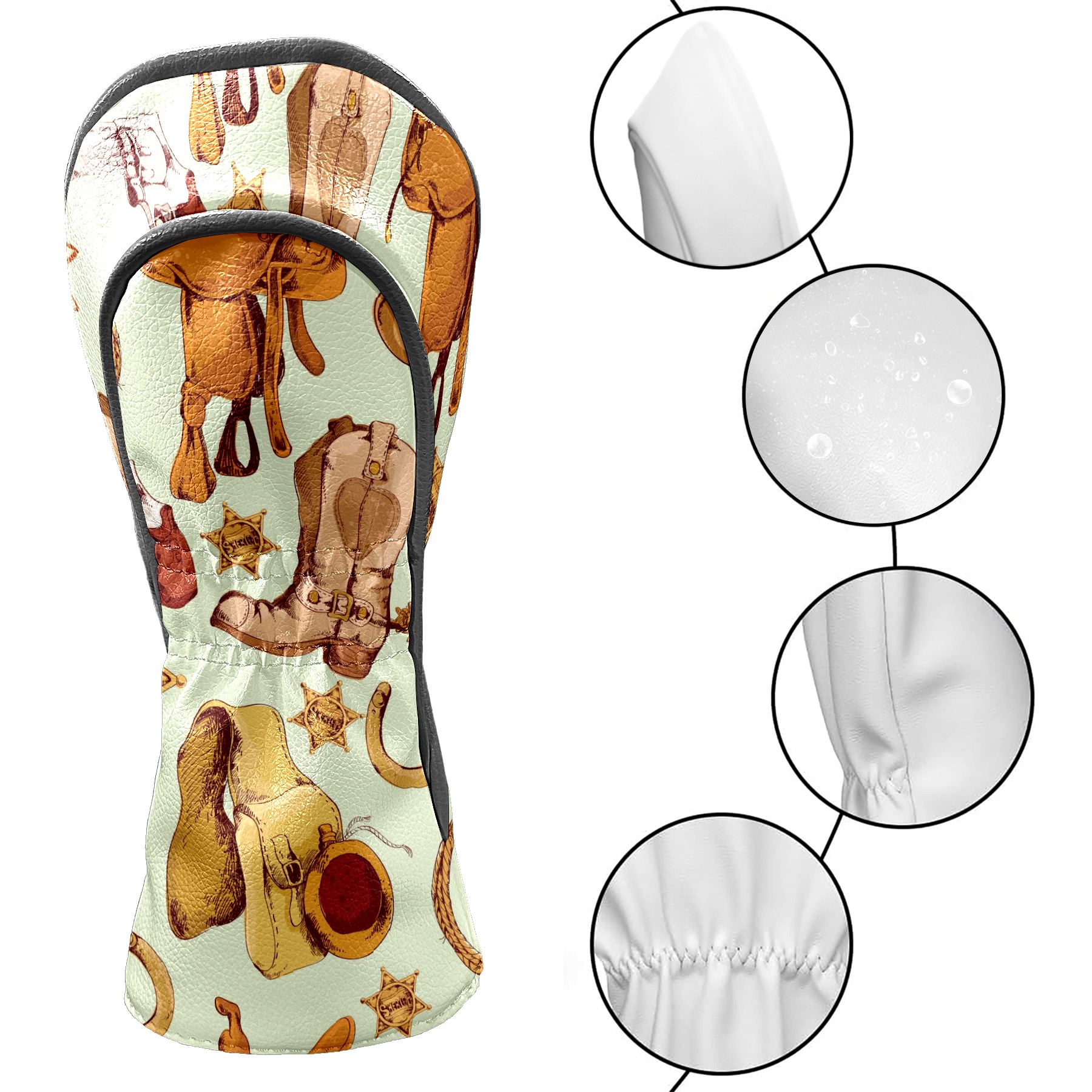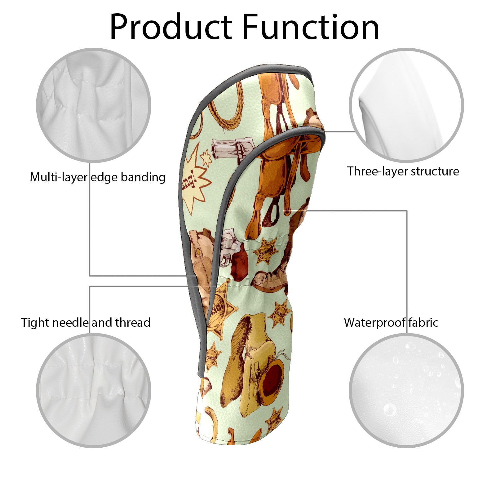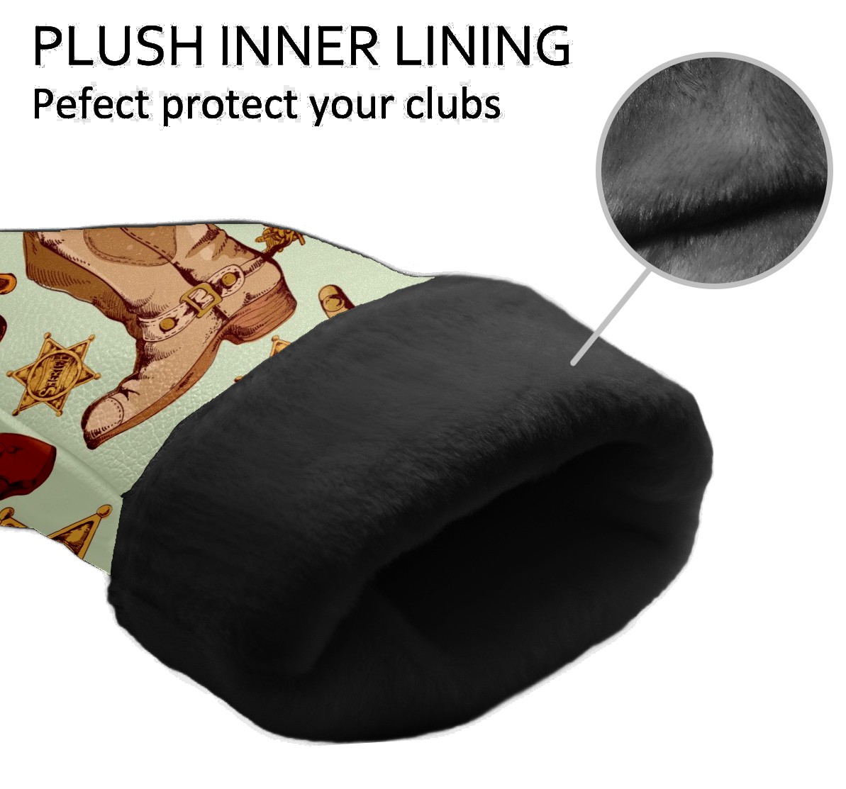 Black Golf Club Head Cover Golf Accessories Head Covers Set For Driver & Fairway Woods Wild West Cowboy Pattern