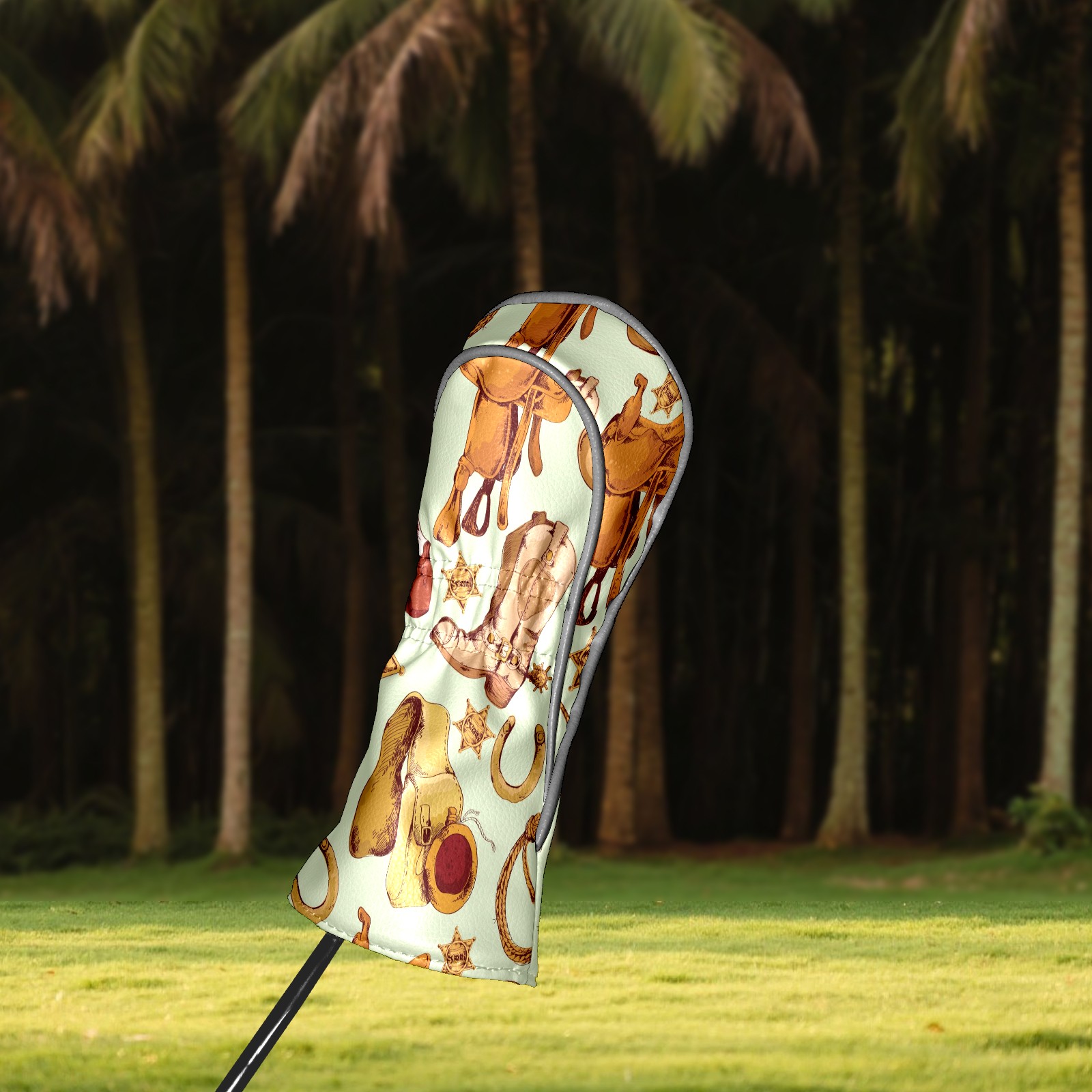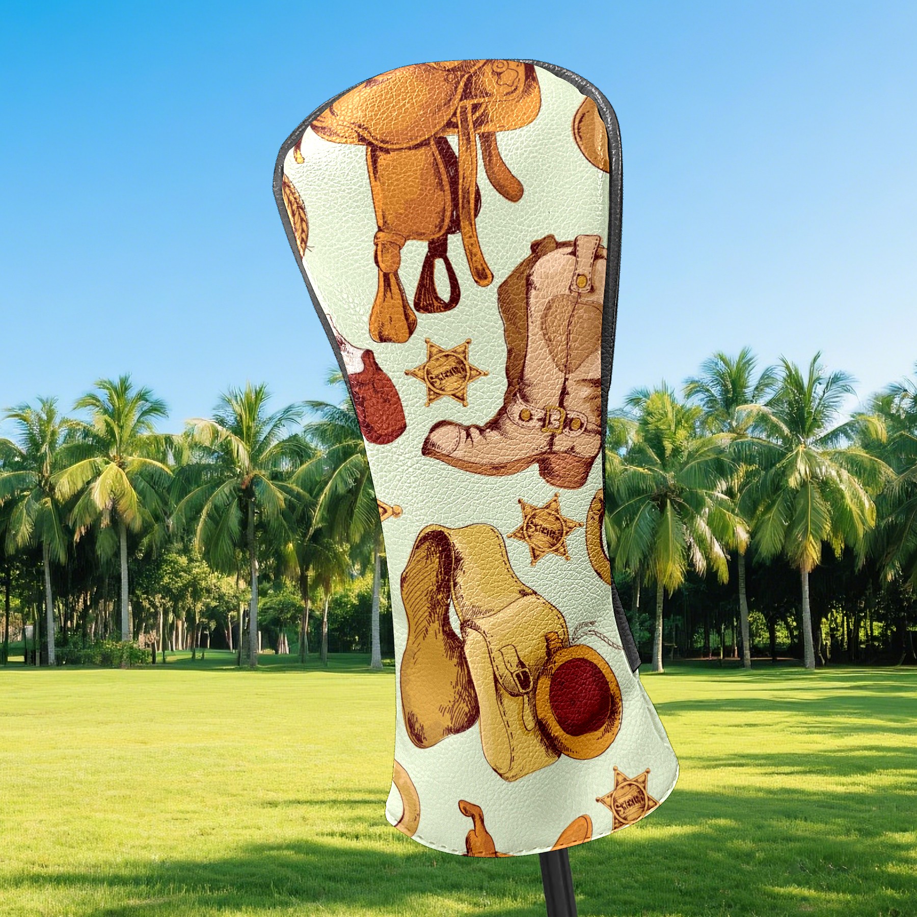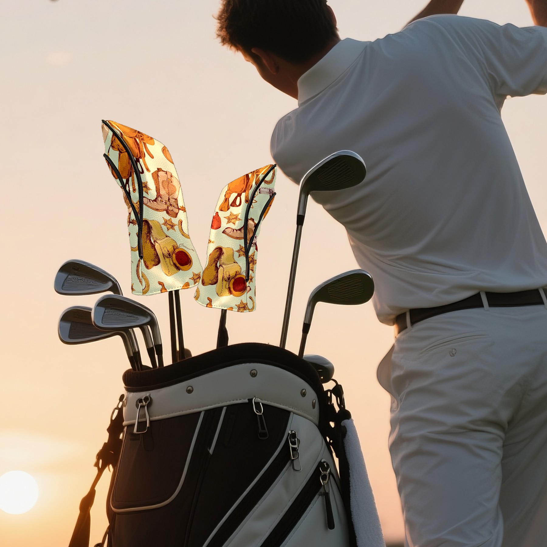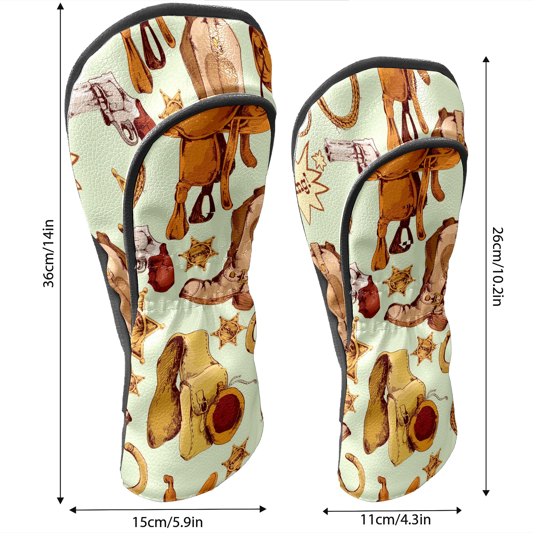 Black Golf Club Head Cover Golf Accessories Head Covers Set For Driver & Fairway Woods Wild West Cowboy Pattern