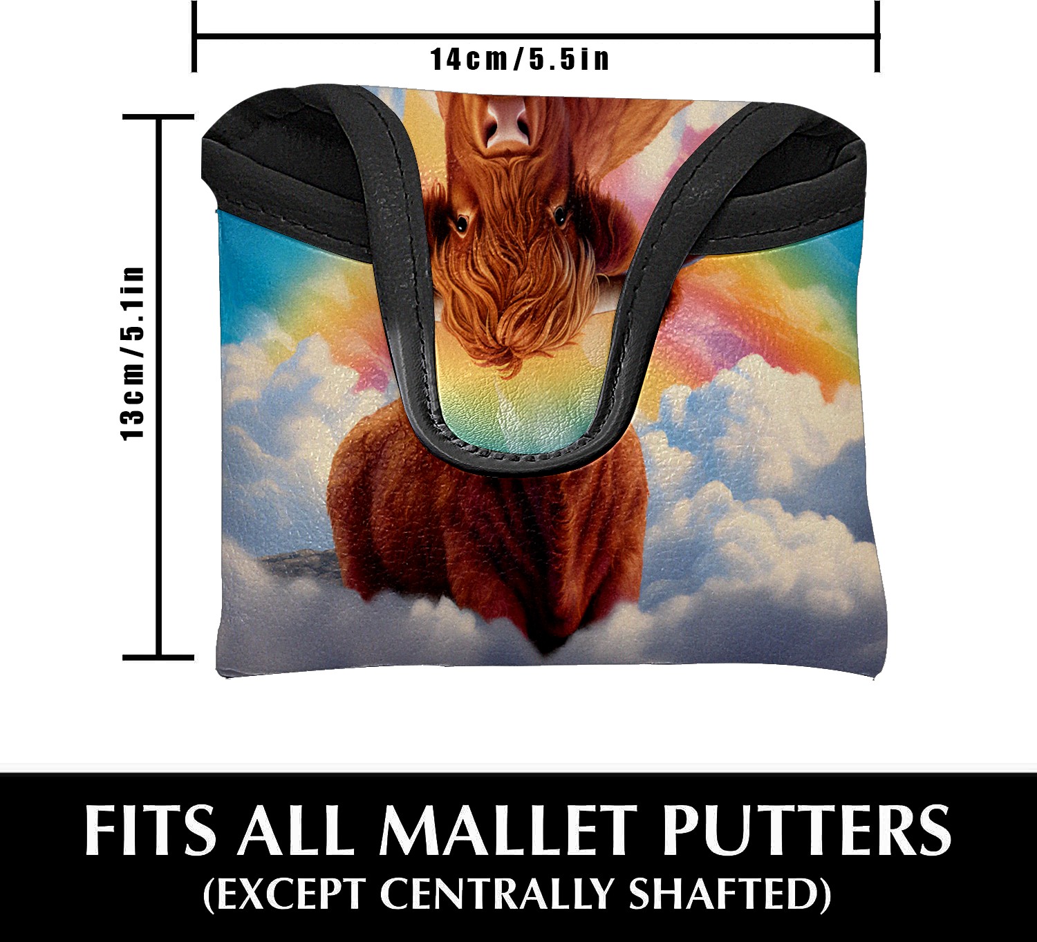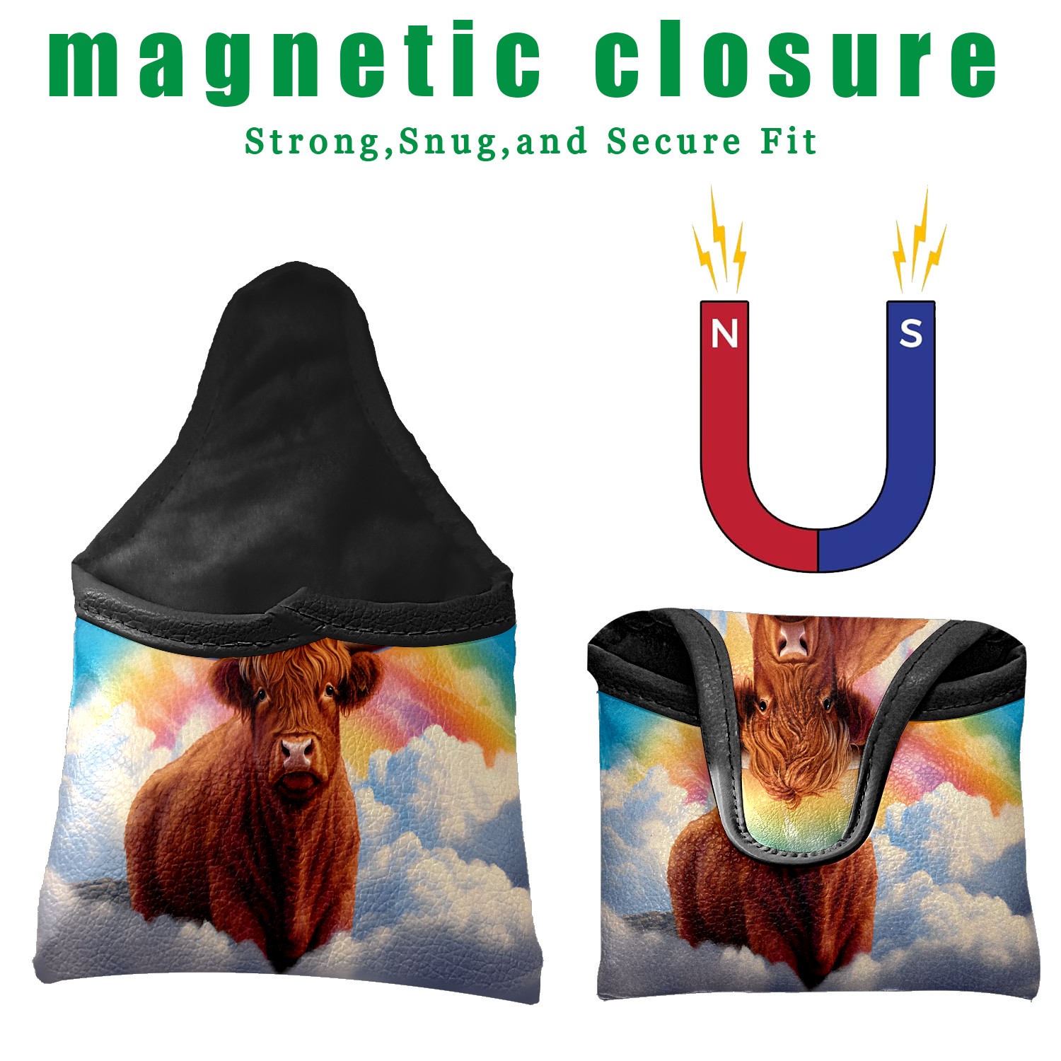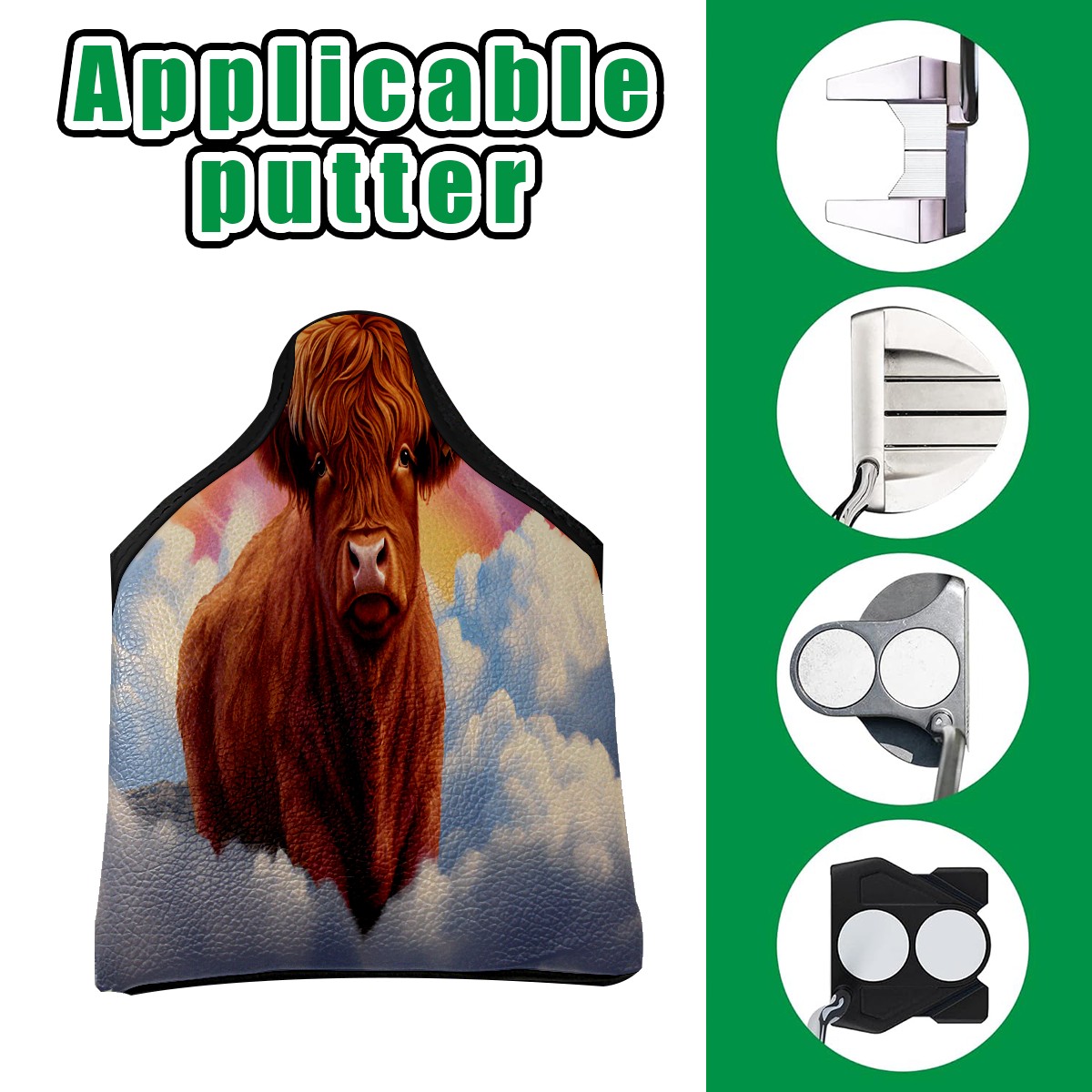 Mallet Putter Cover Magnetic Premium PU Leather Golf Putter Headcover with Plush Lining, Mallet Putter Headcover for Men Women Golf Club Covers (Highland Cow)