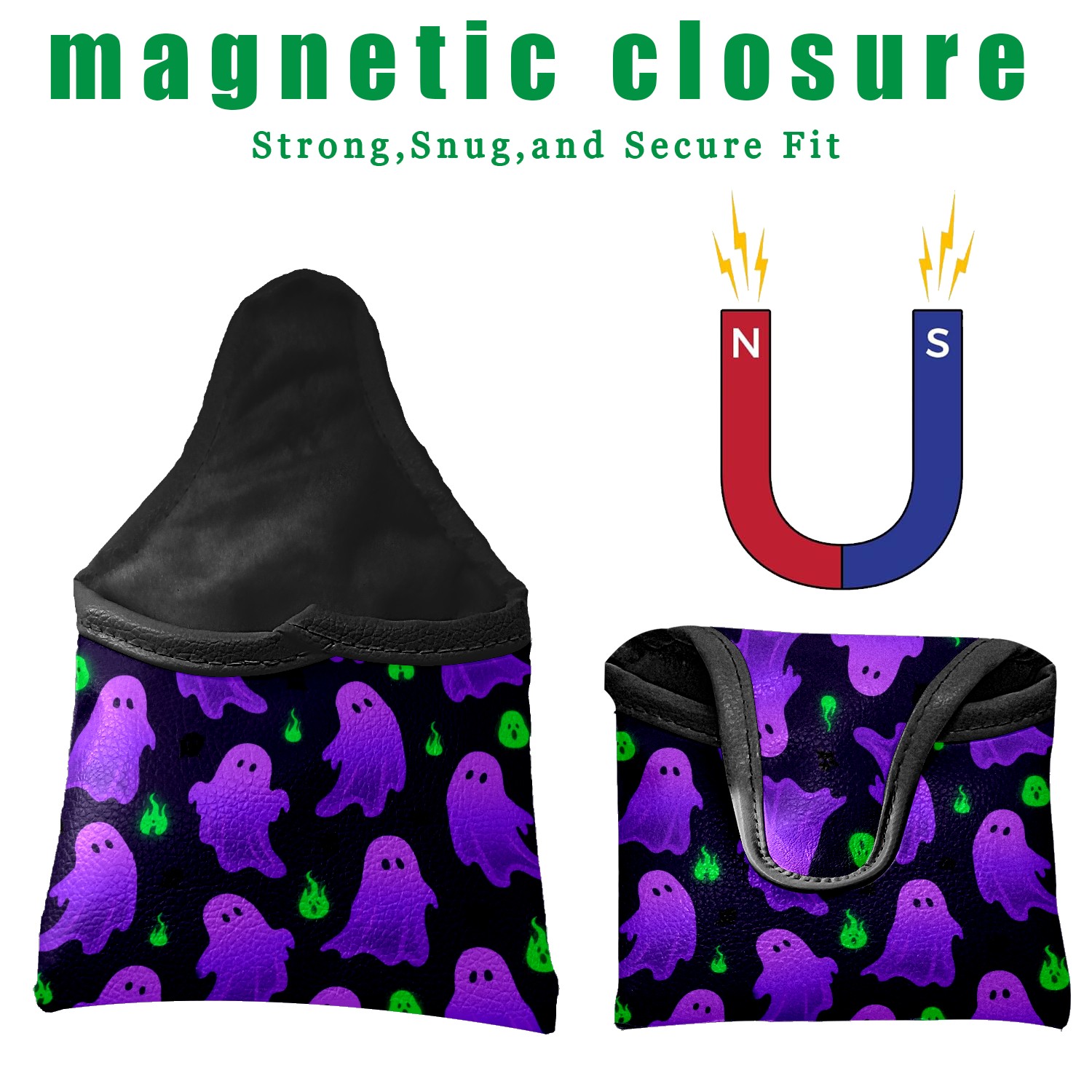 Mallet Putter Cover Magnetic Premium PU Leather Golf Putter Headcover with Plush Lining, Mallet Putter Headcover for Men Women Golf Club Covers (Purple)