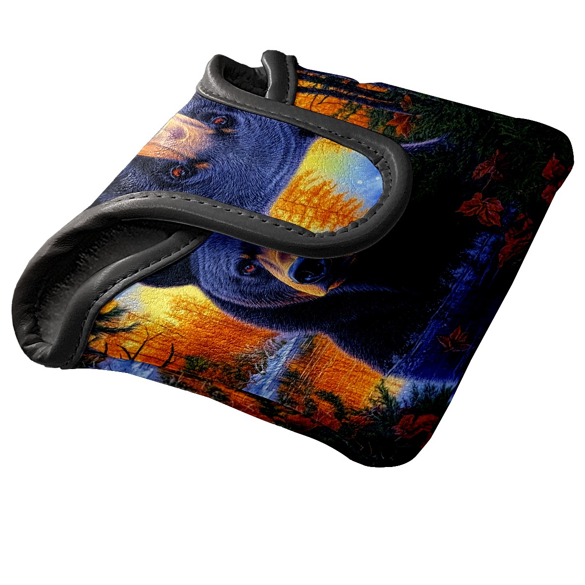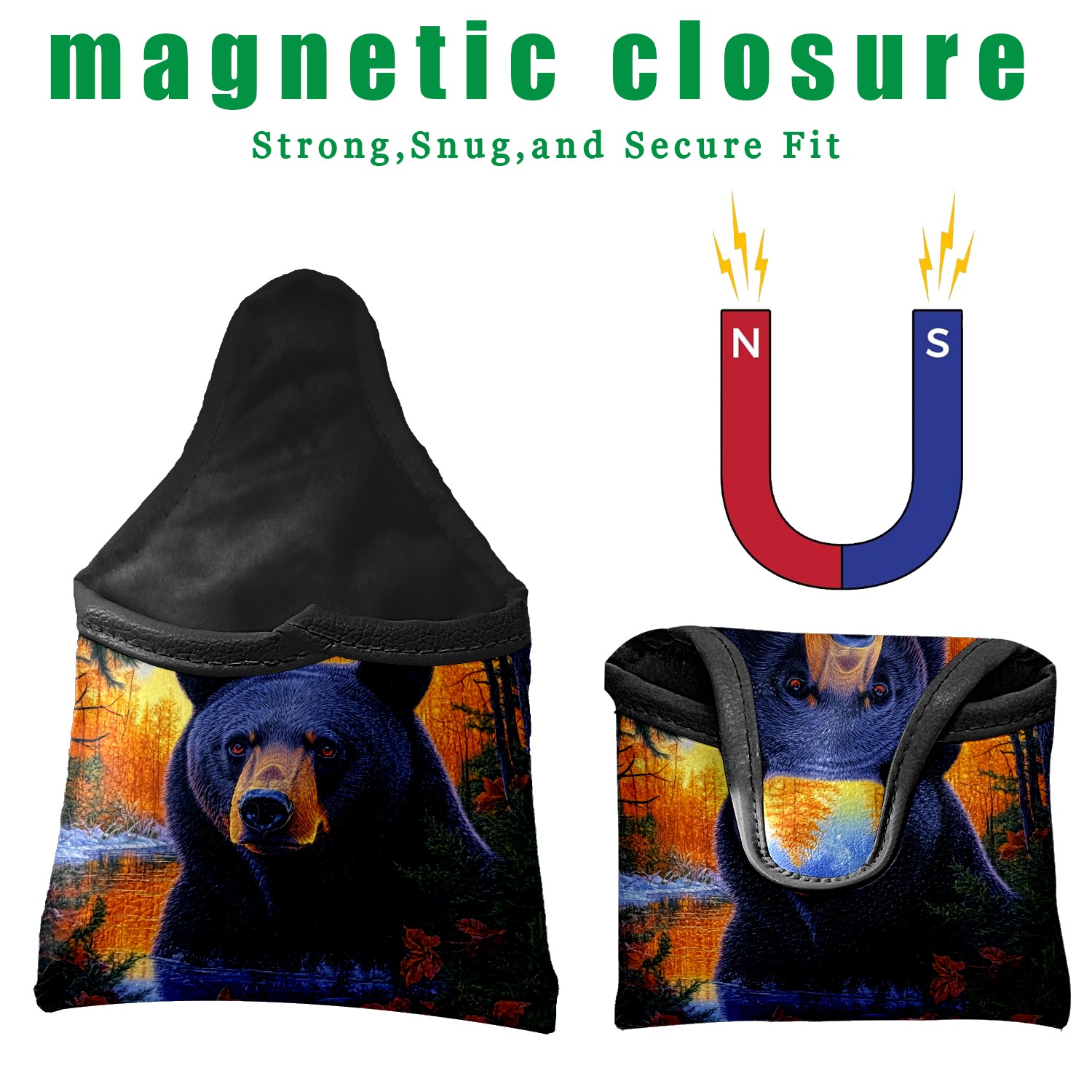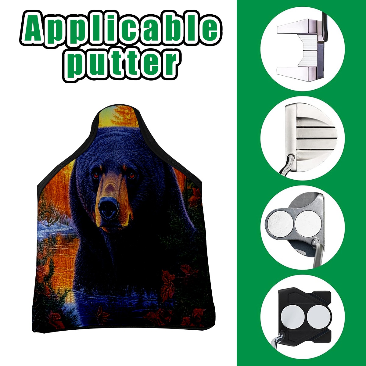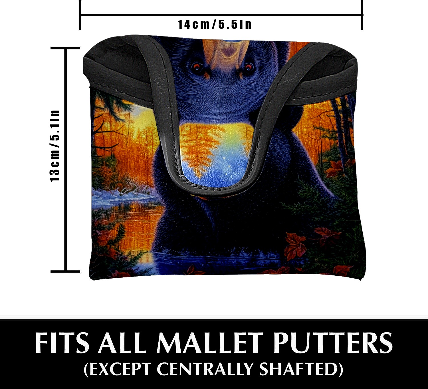 Mallet Putter Cover Magnetic Premium PU Leather Golf Putter Headcover with Plush Lining, Mallet Putter Headcover for Men Women Golf Club Covers (Black Bear)