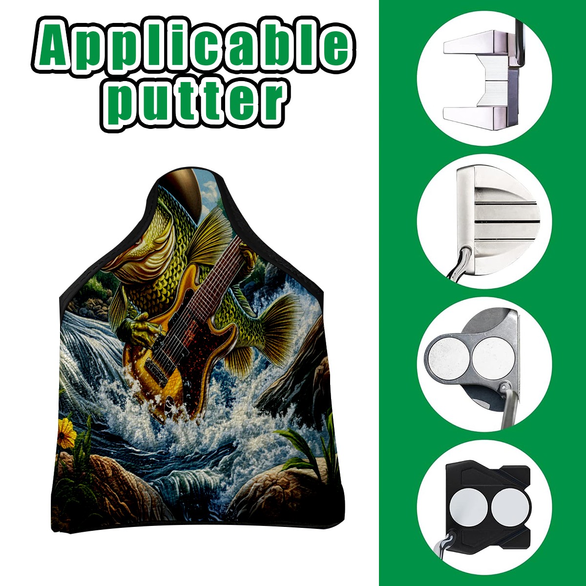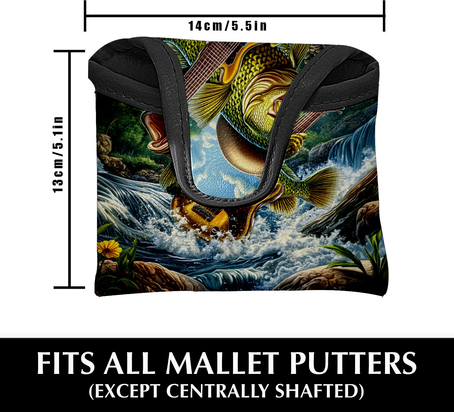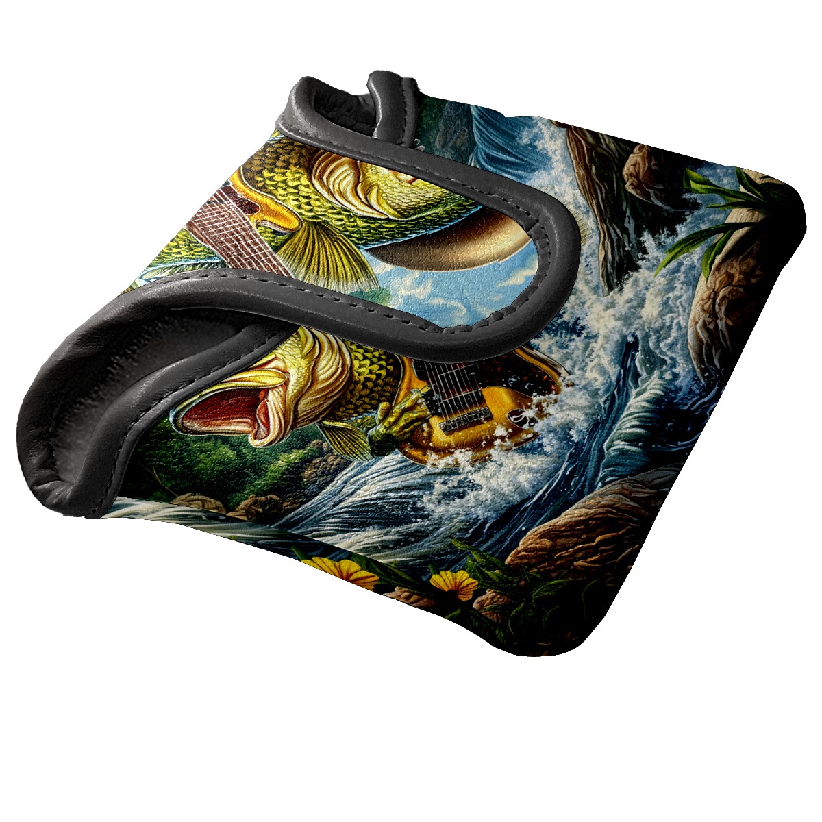 Mallet Putter Cover Magnetic Premium PU Leather Golf Putter Headcover with Plush Lining, Mallet Putter Headcover for Men Women Golf Club Covers (Bass Fish)