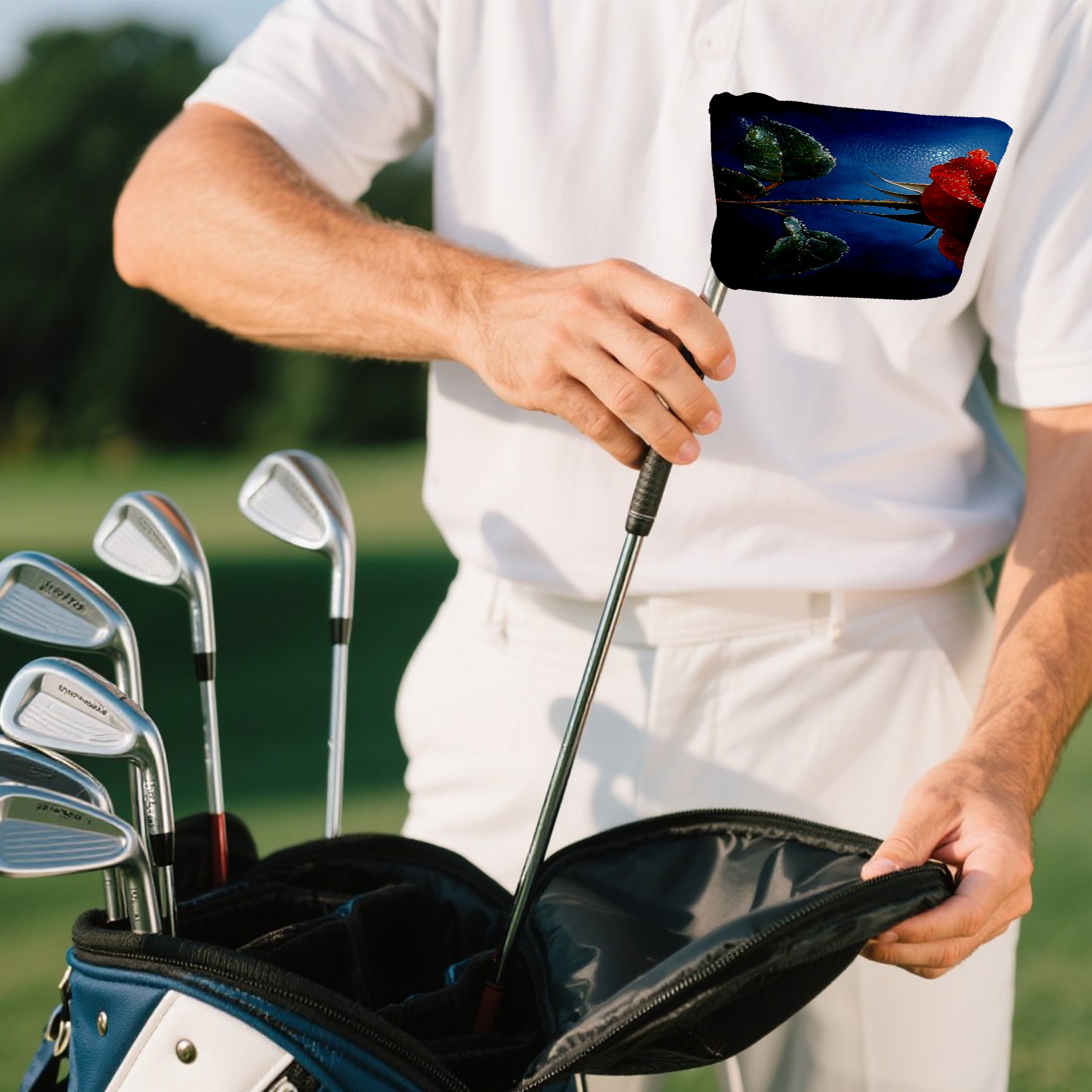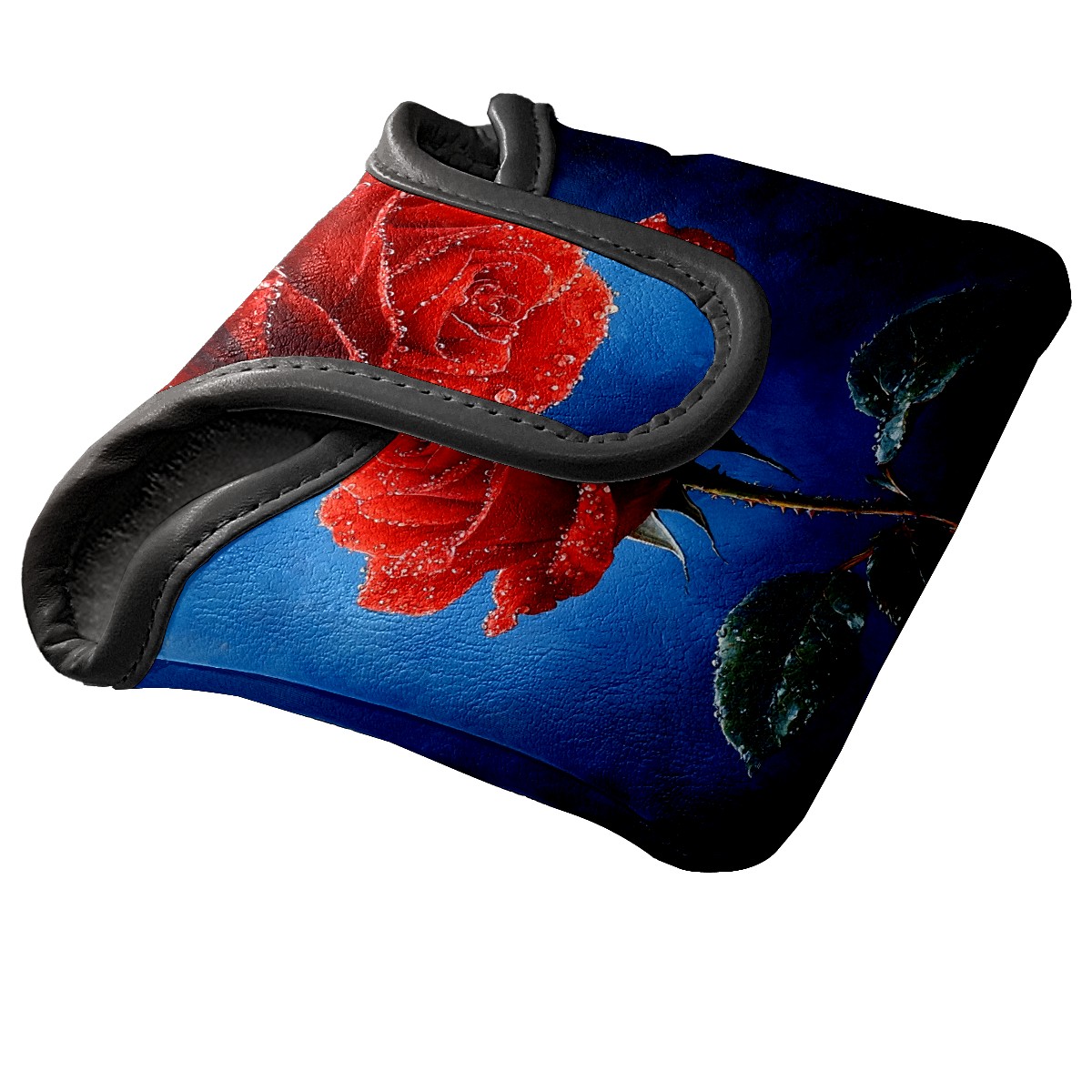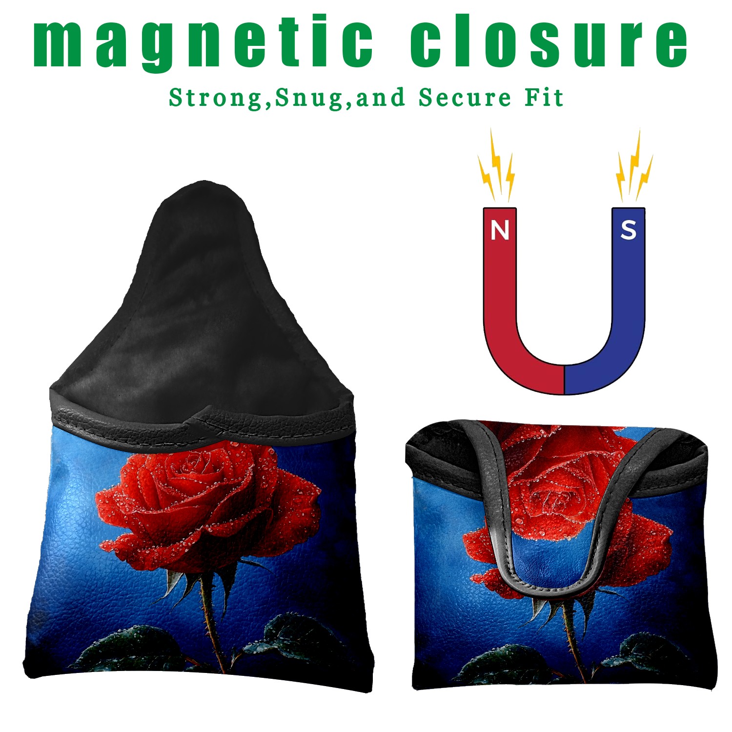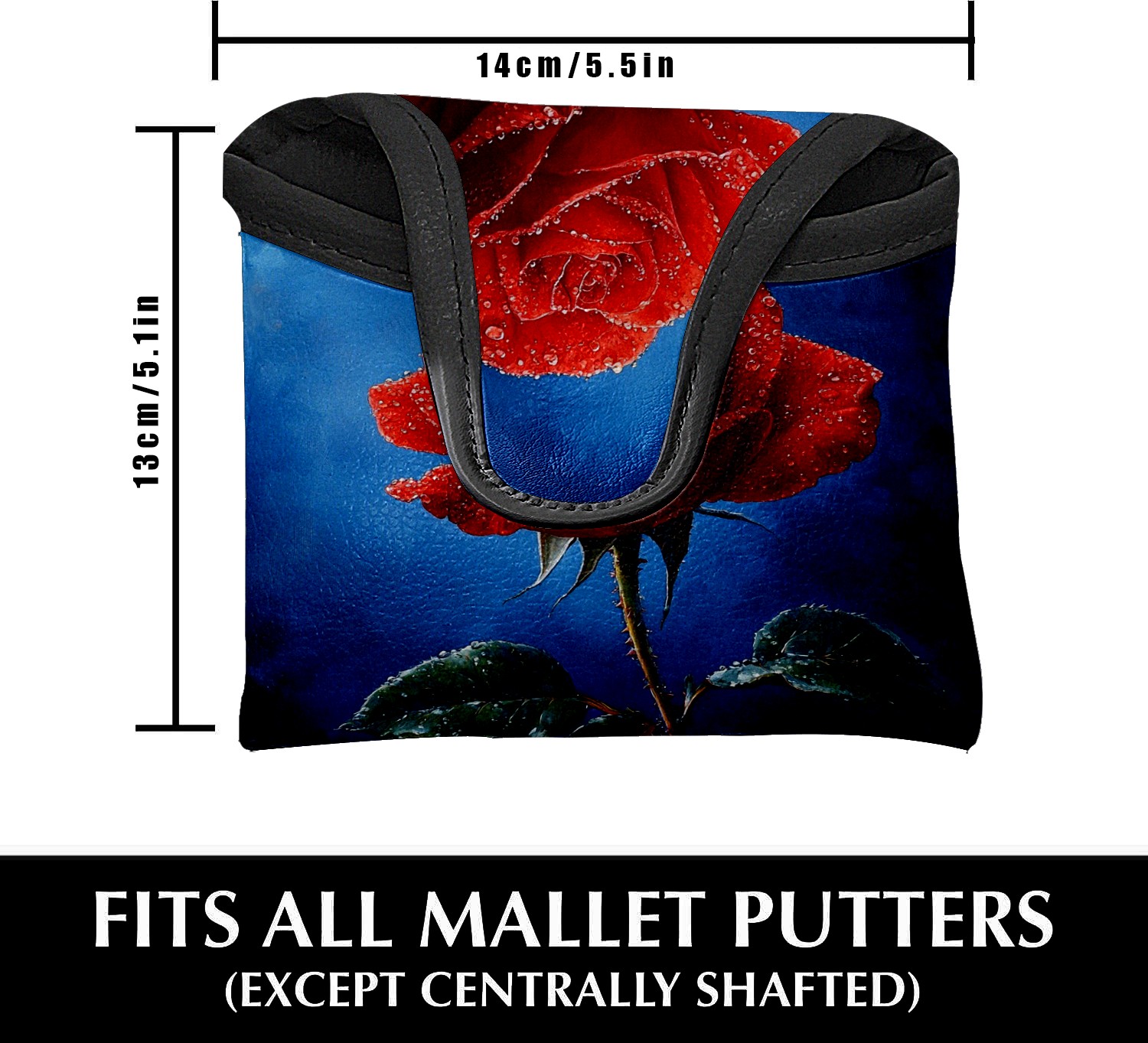Mallet Putter Cover Magnetic Premium PU Leather Golf Putter Headcover with Plush Lining, Mallet Putter Headcover for Men Women Golf Club Covers (Red Rose Blue)