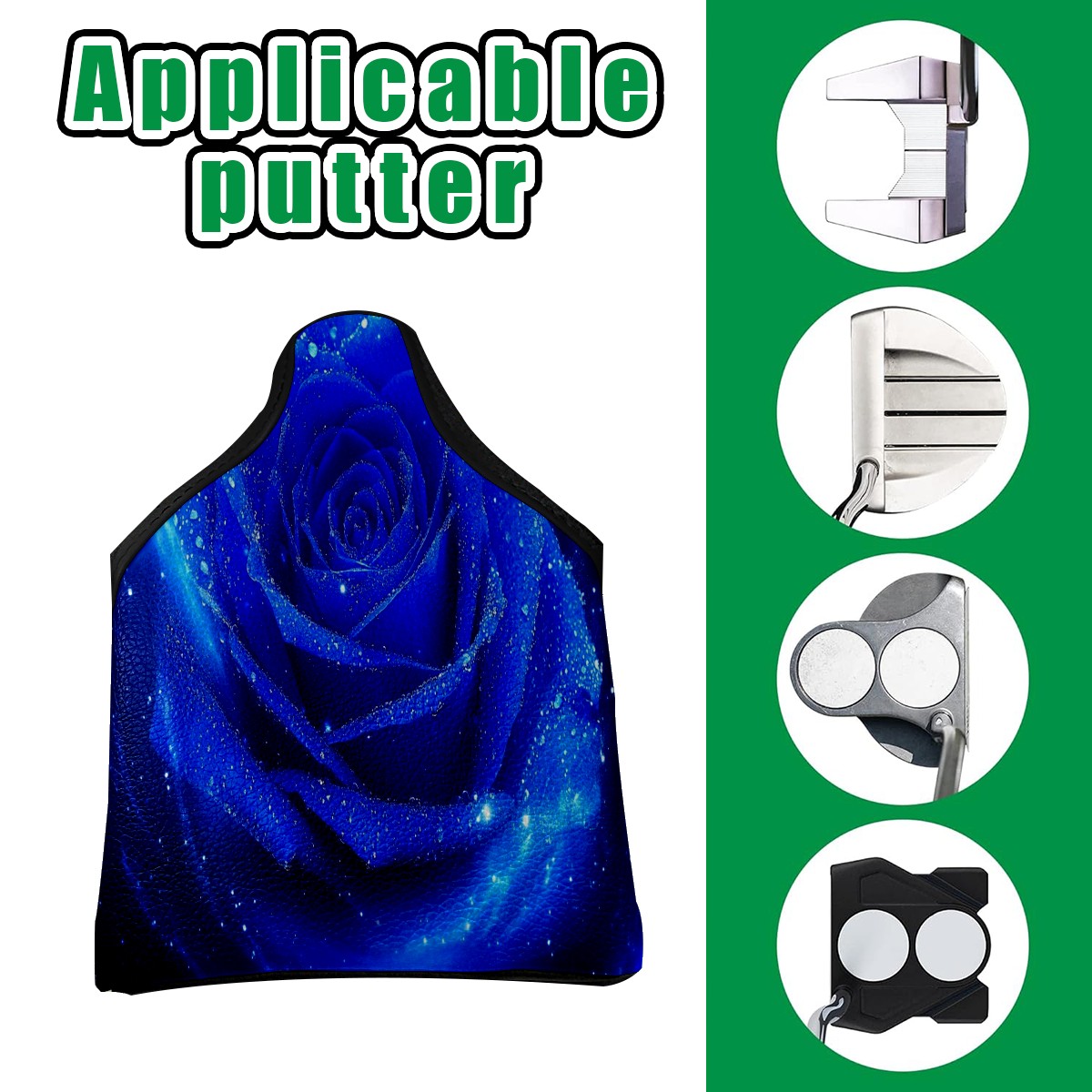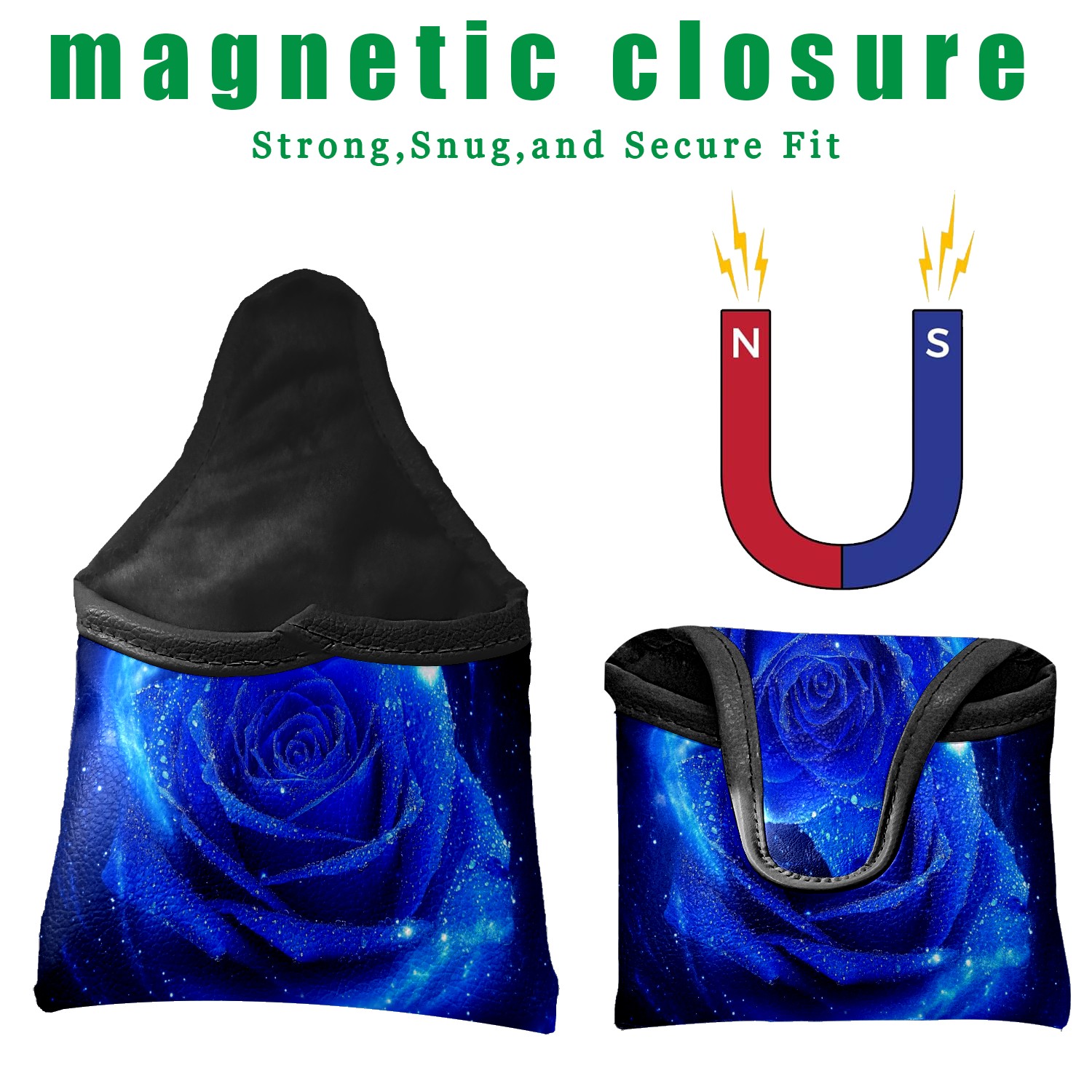 Mallet Putter Cover Magnetic Premium PU Leather Golf Putter Headcover with Plush Lining, Mallet Putter Headcover for Men Women Golf Club Covers (Rose Blue)