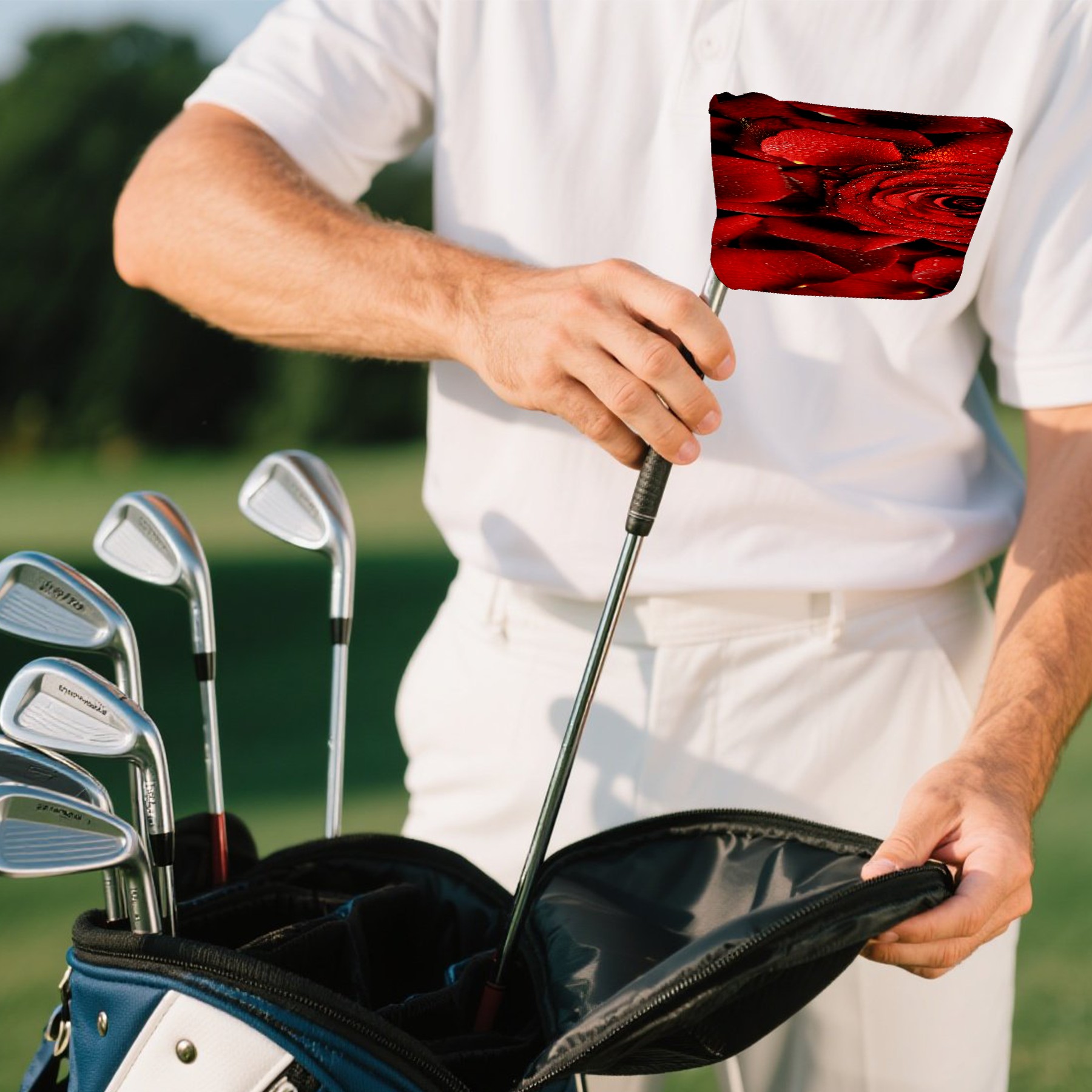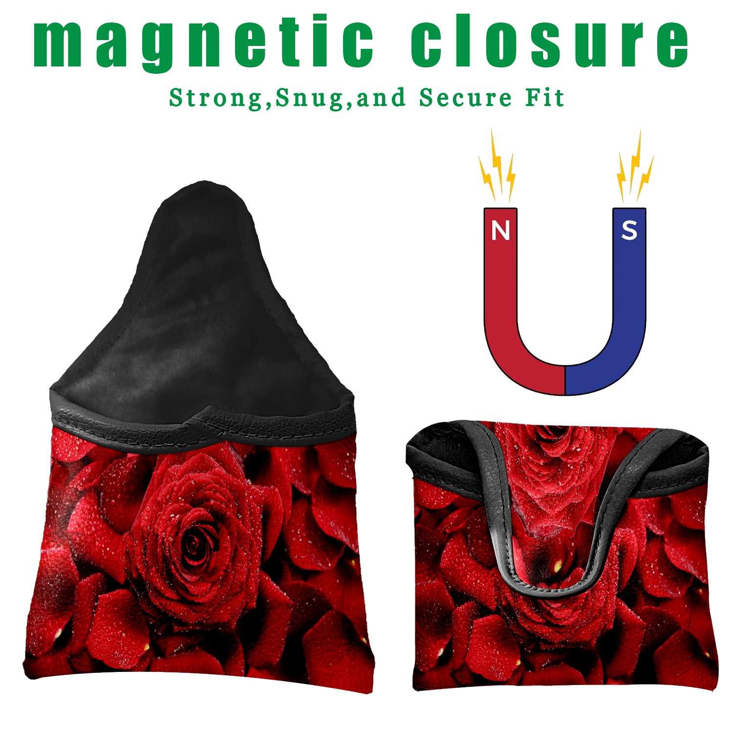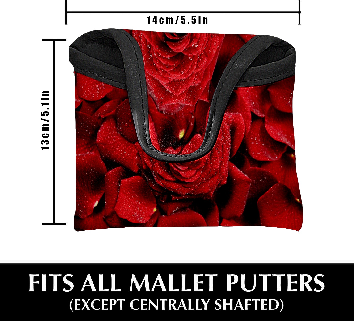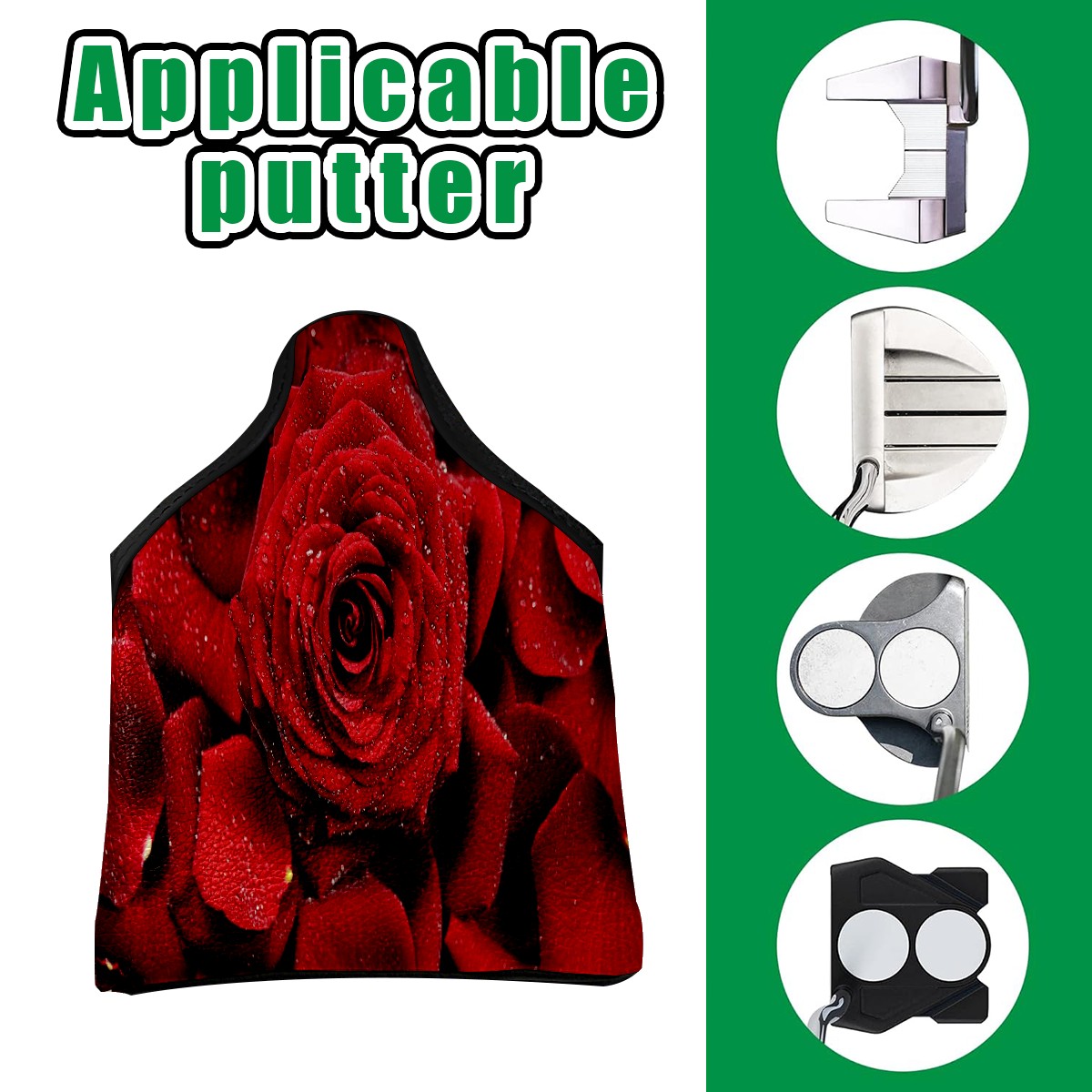 Mallet Putter Cover Magnetic Premium PU Leather Golf Putter Headcover with Plush Lining, Mallet Putter Headcover for Men Women Golf Club Covers (Red Rose Flower)