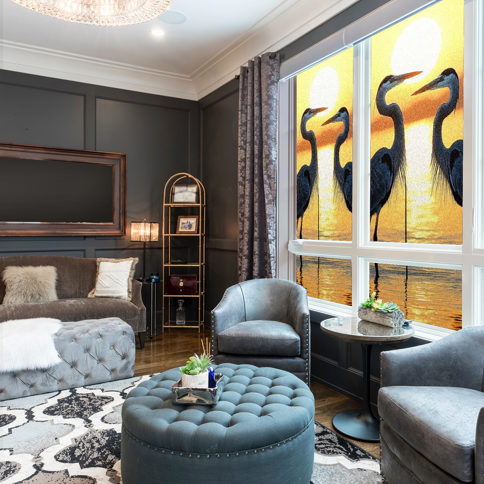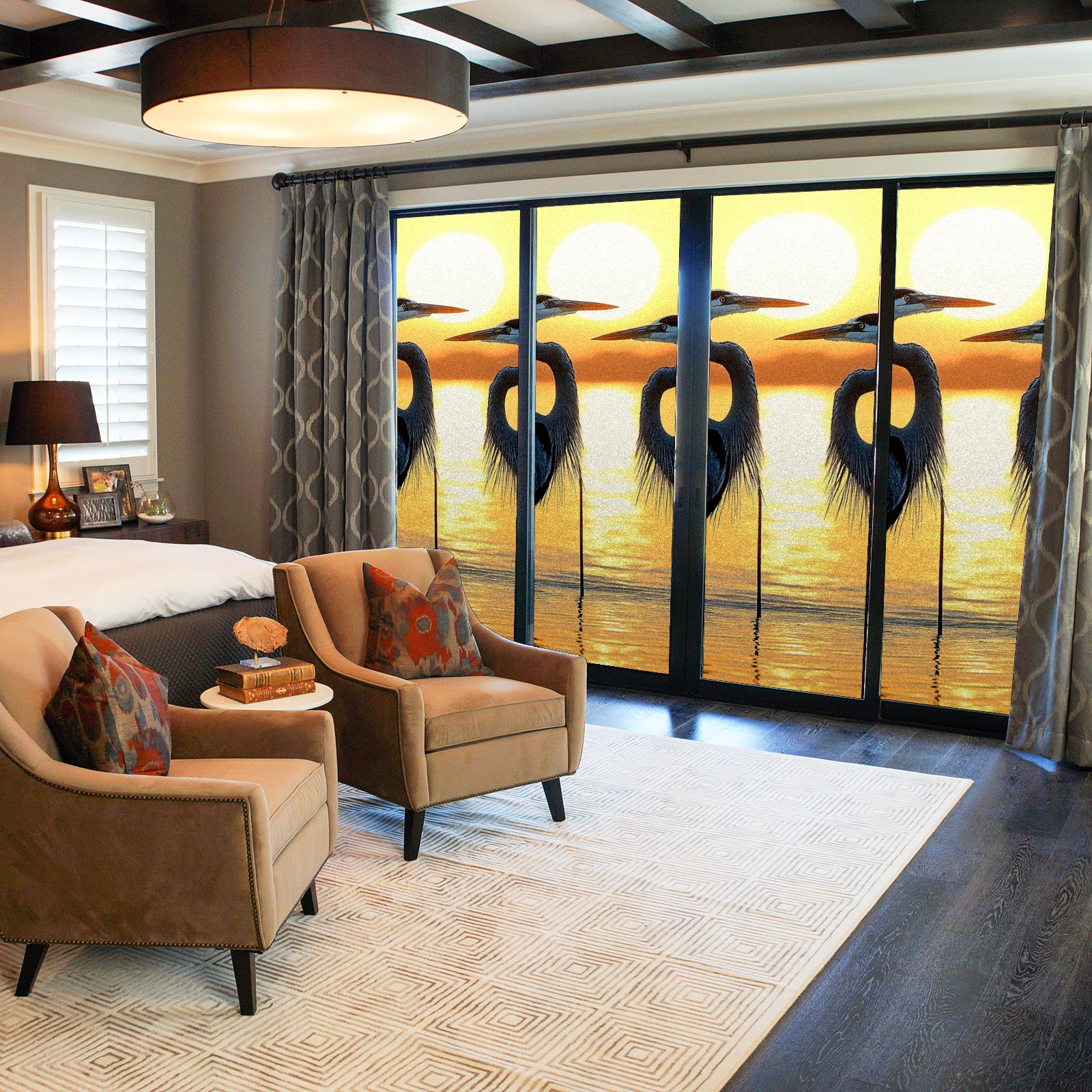 Window Privacy Film Decorative Window Decal Film Removable Static Cling Window Tint for Home Bedroom Sun Blocking Stickers 17.7 x 23.6 Inches Sunset