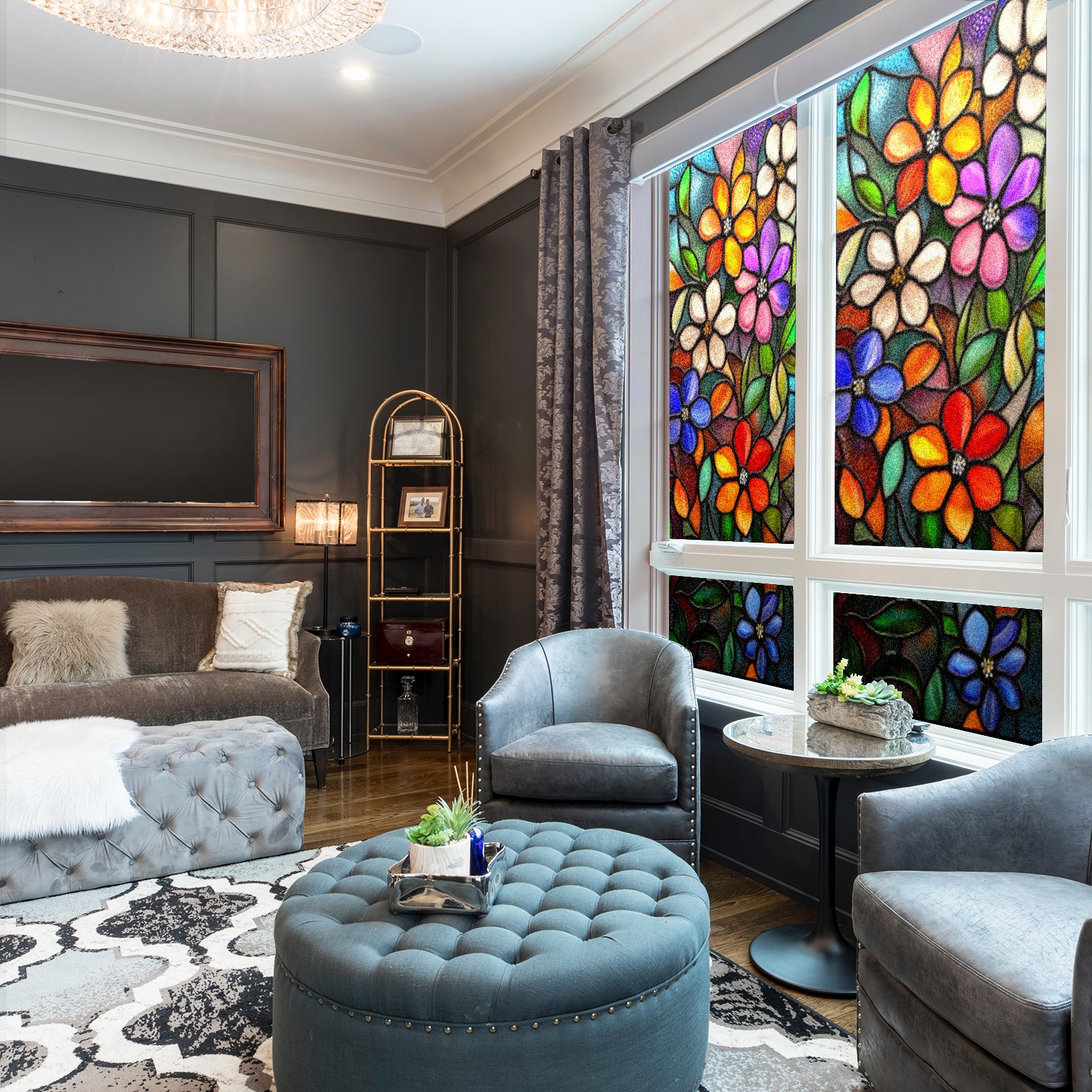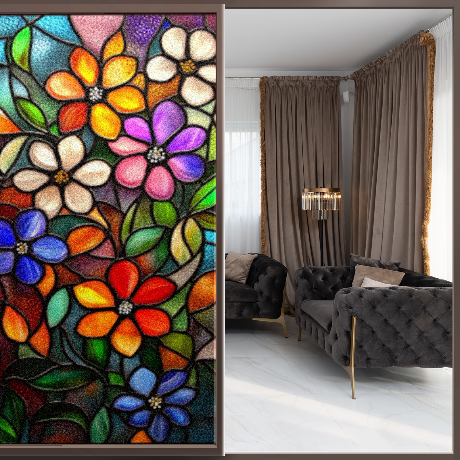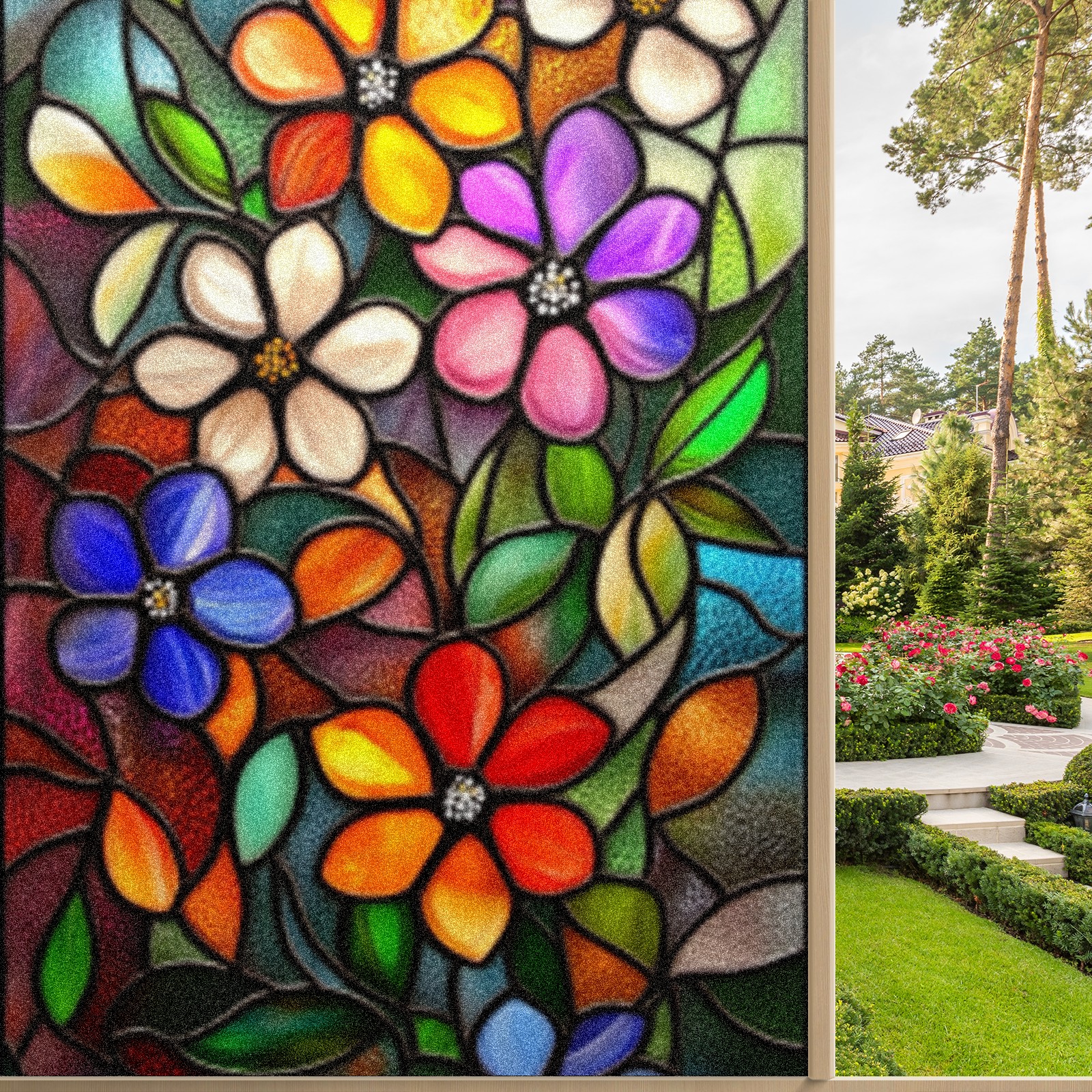 Window Privacy Film Decorative Window Decal Film Removable Static Cling Window Tint for Home Bedroom Sun Blocking Stickers 17.7 x 23.6 Inches Stained Glass